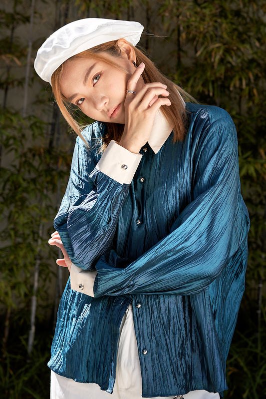 Sold outBlue Pleated Shirt