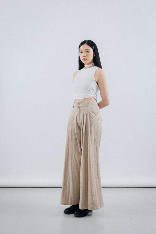 Khaki wide leg pants with belts
