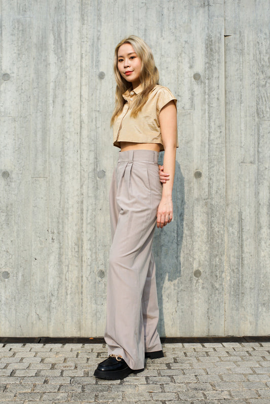 Light grey High waisted belted wide leg trousers