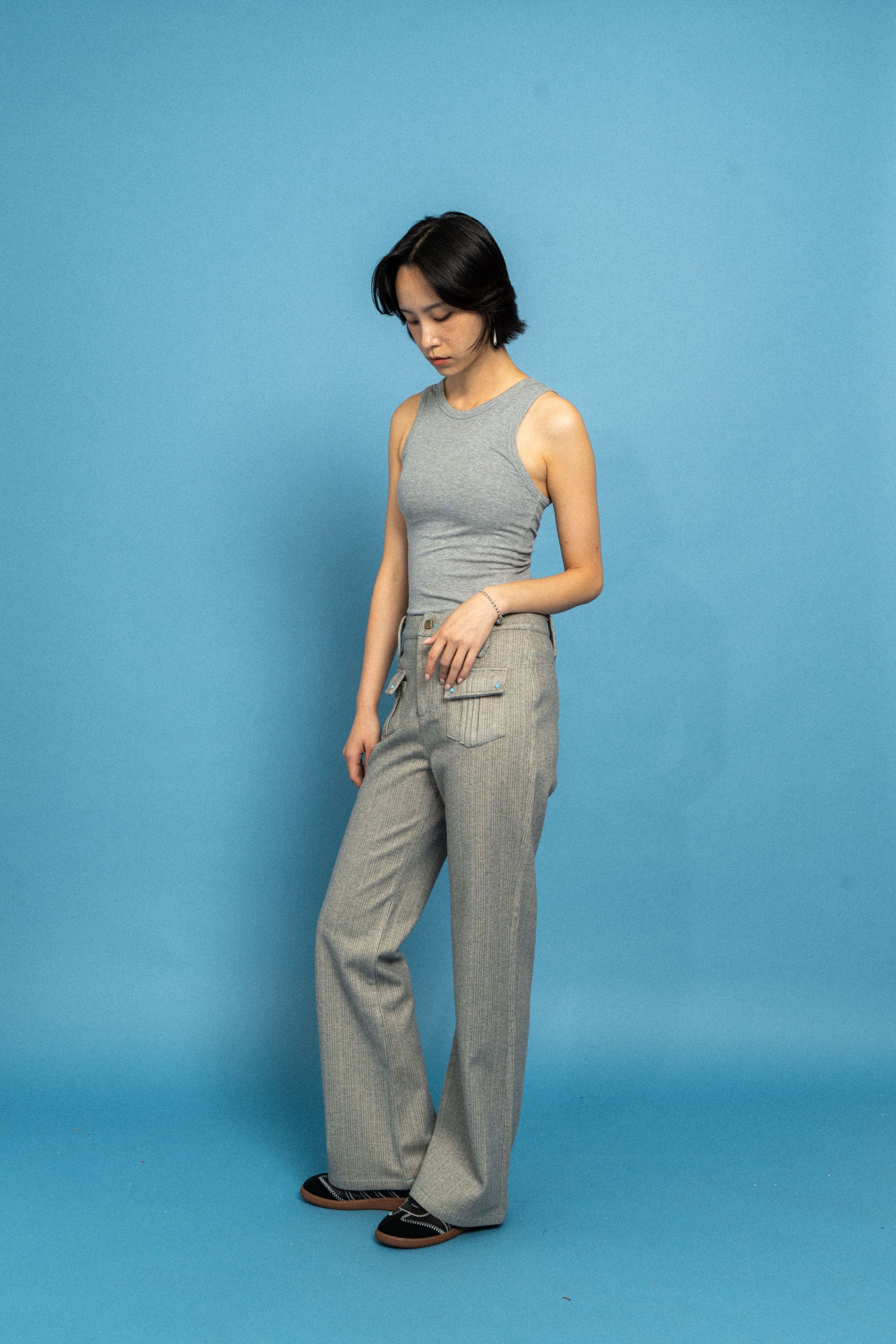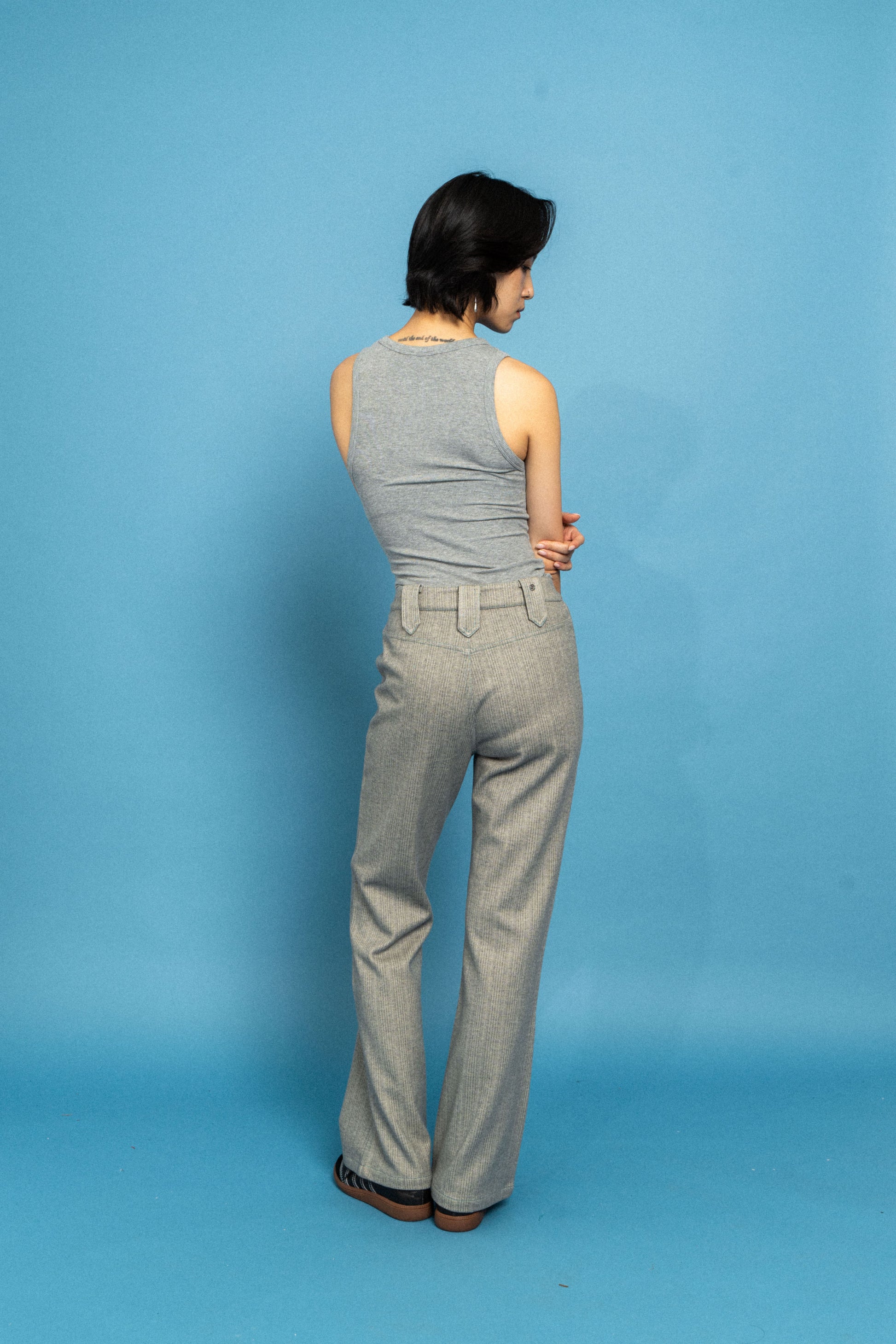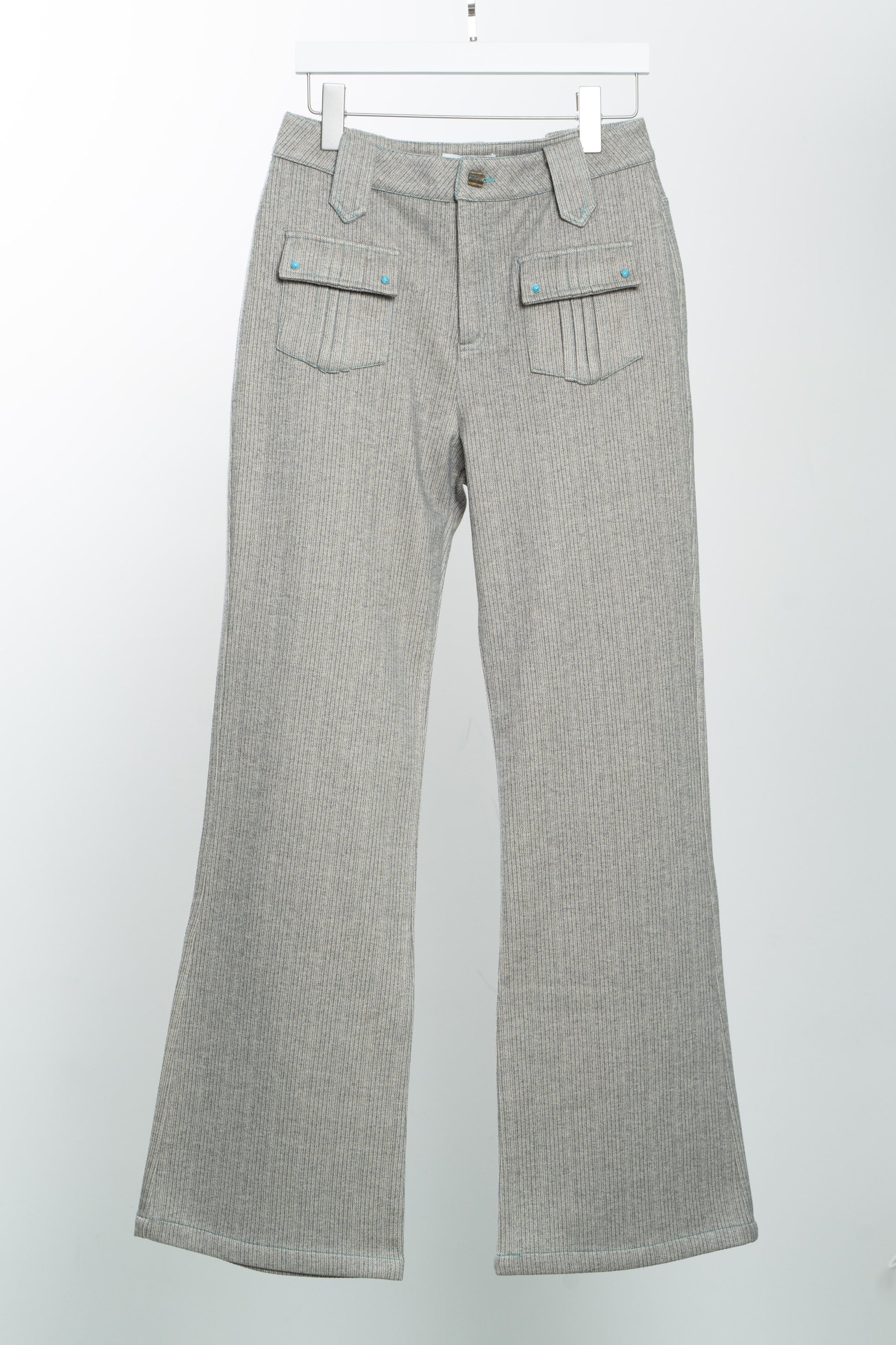 Loose-Cut Flared Trousers: The wide-cut flares help to conceal thicker legs, providing a balanced and elegant look.