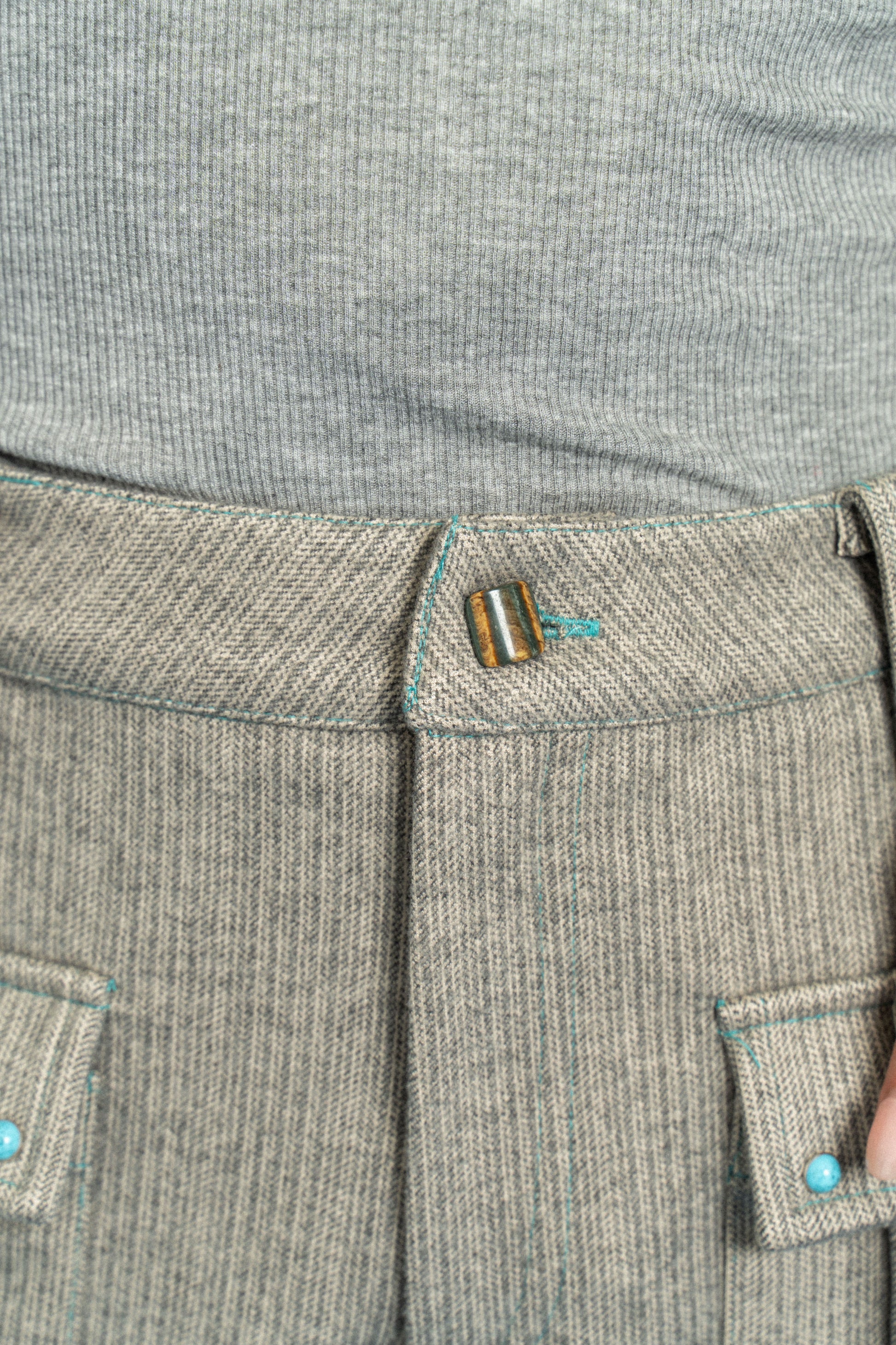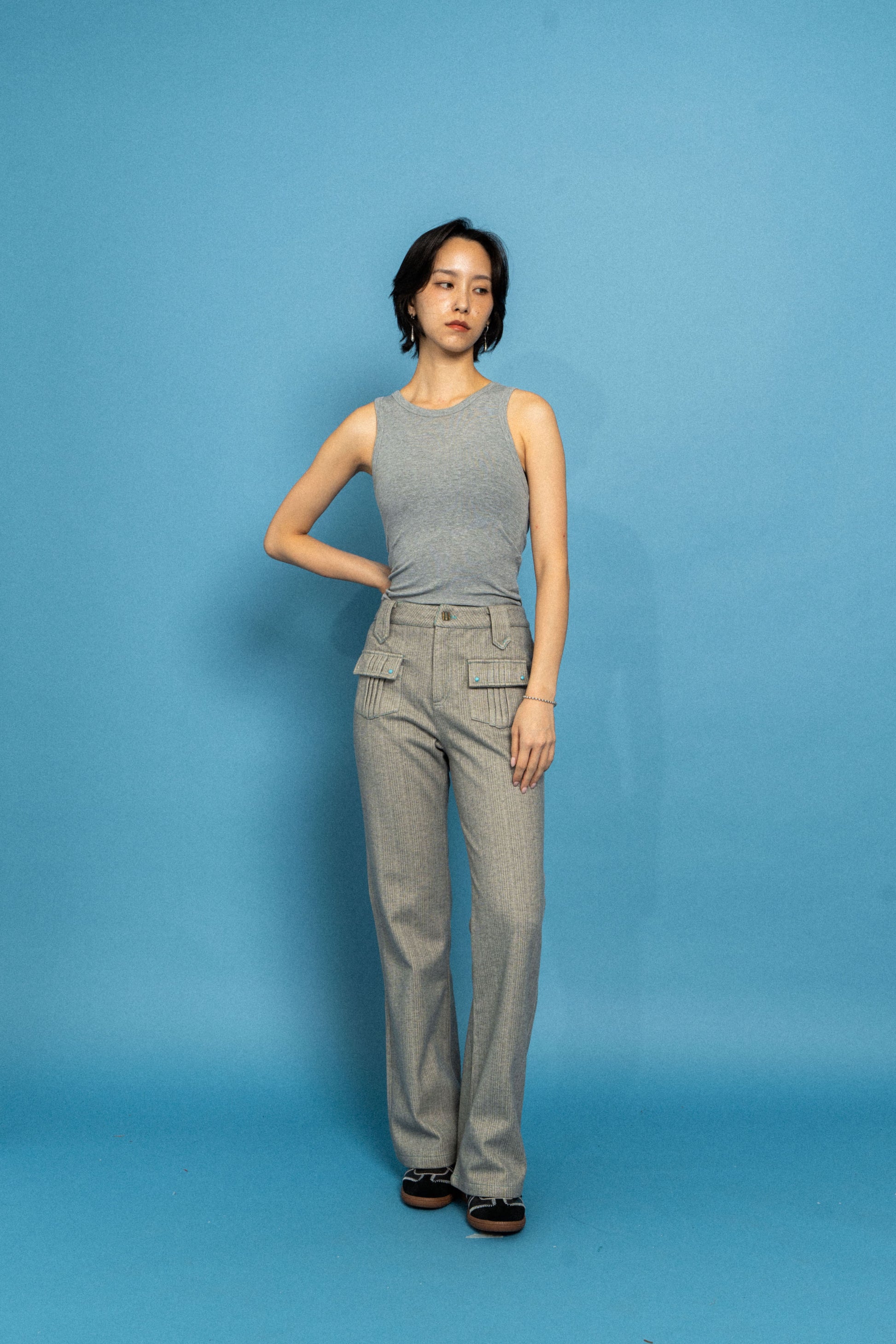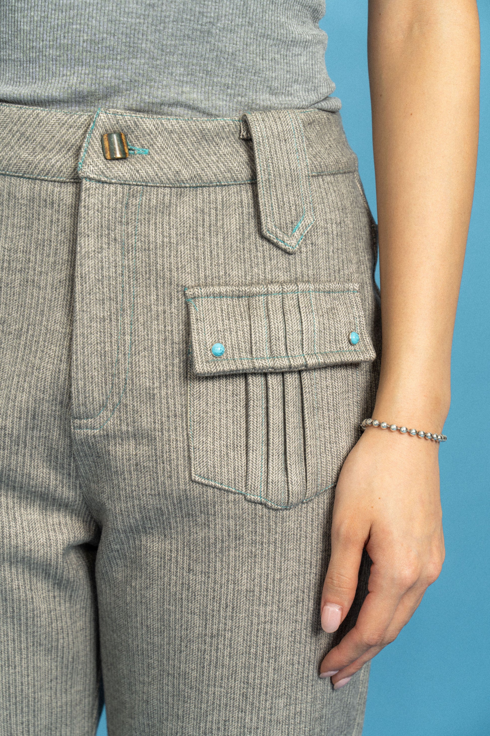 Loose-Cut Flared Trousers: The wide-cut flares help to conceal thicker legs, providing a balanced and elegant look.