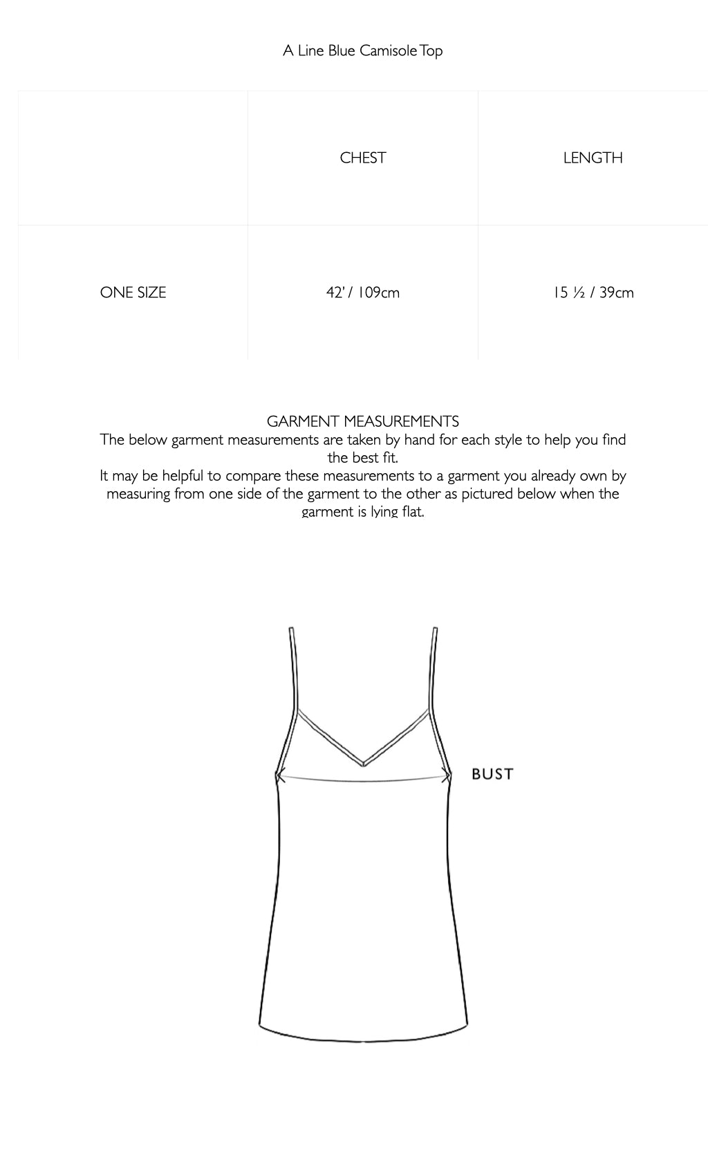 A Line camisole made from 100% polyester fabric. The properties of polyester give the garment a breathable, lightweight and comfortable feel.