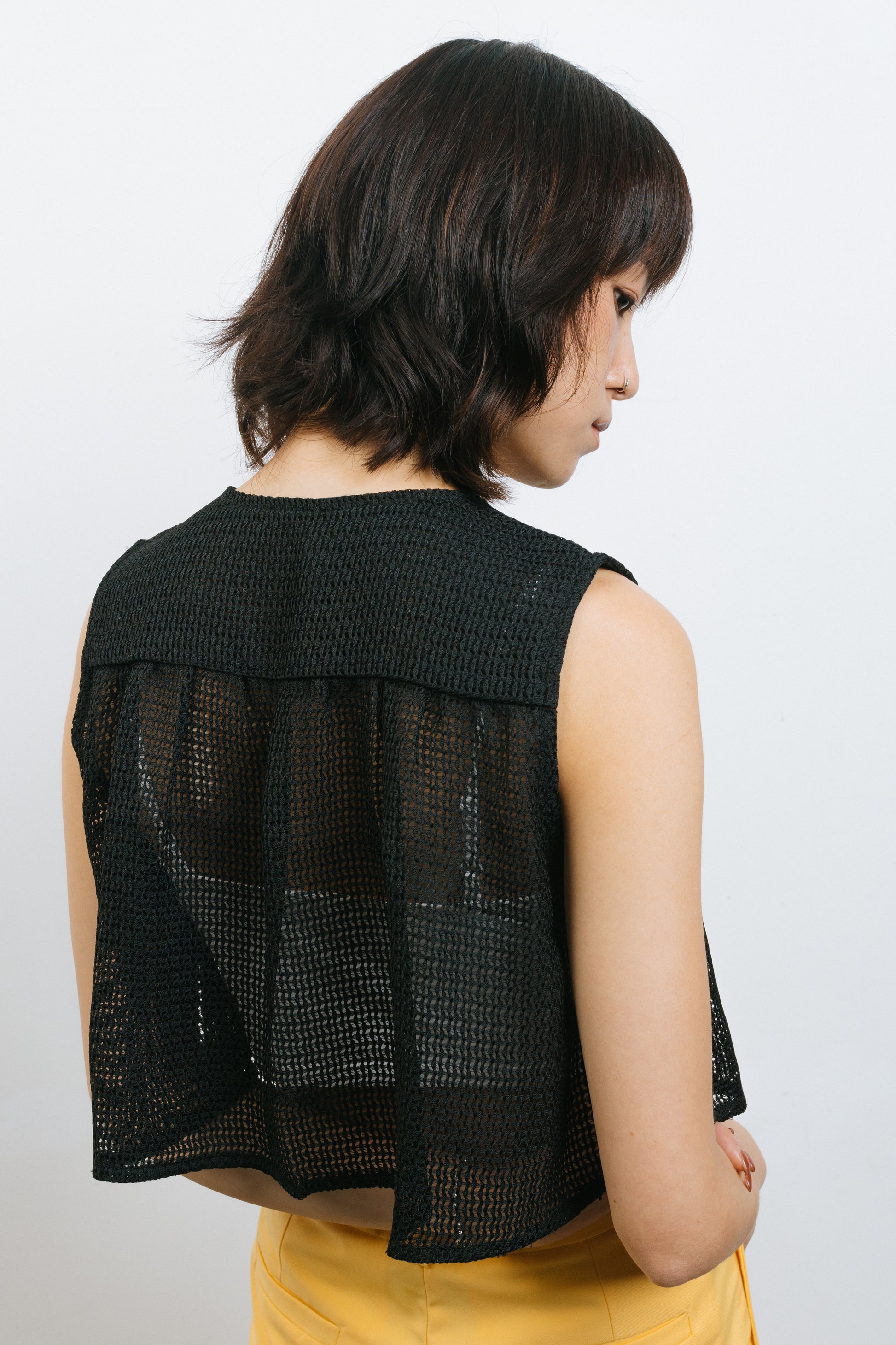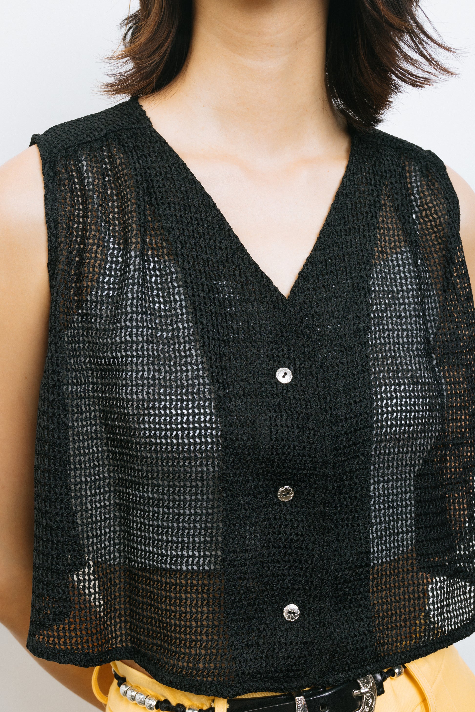Black crochet vest coat