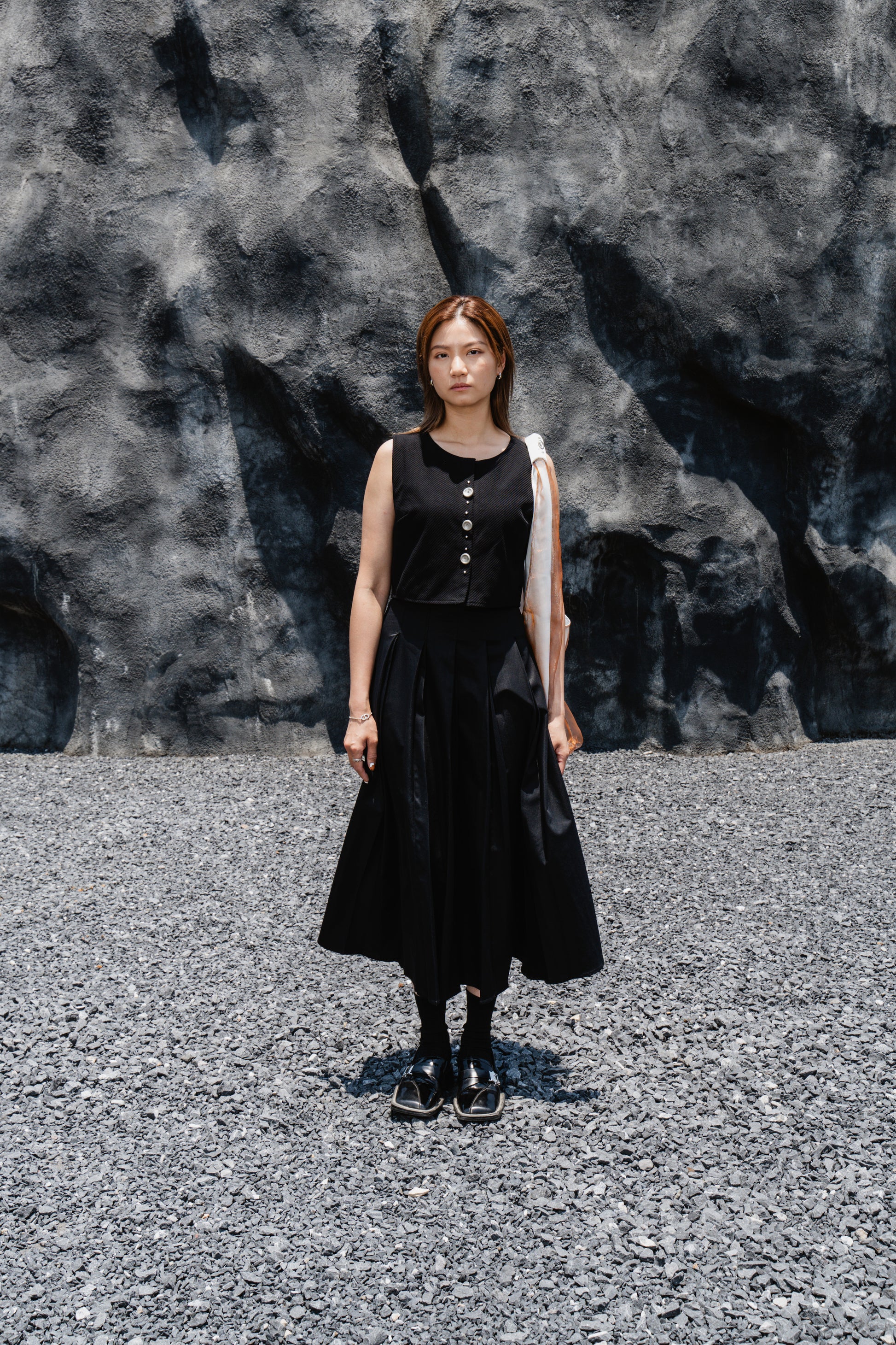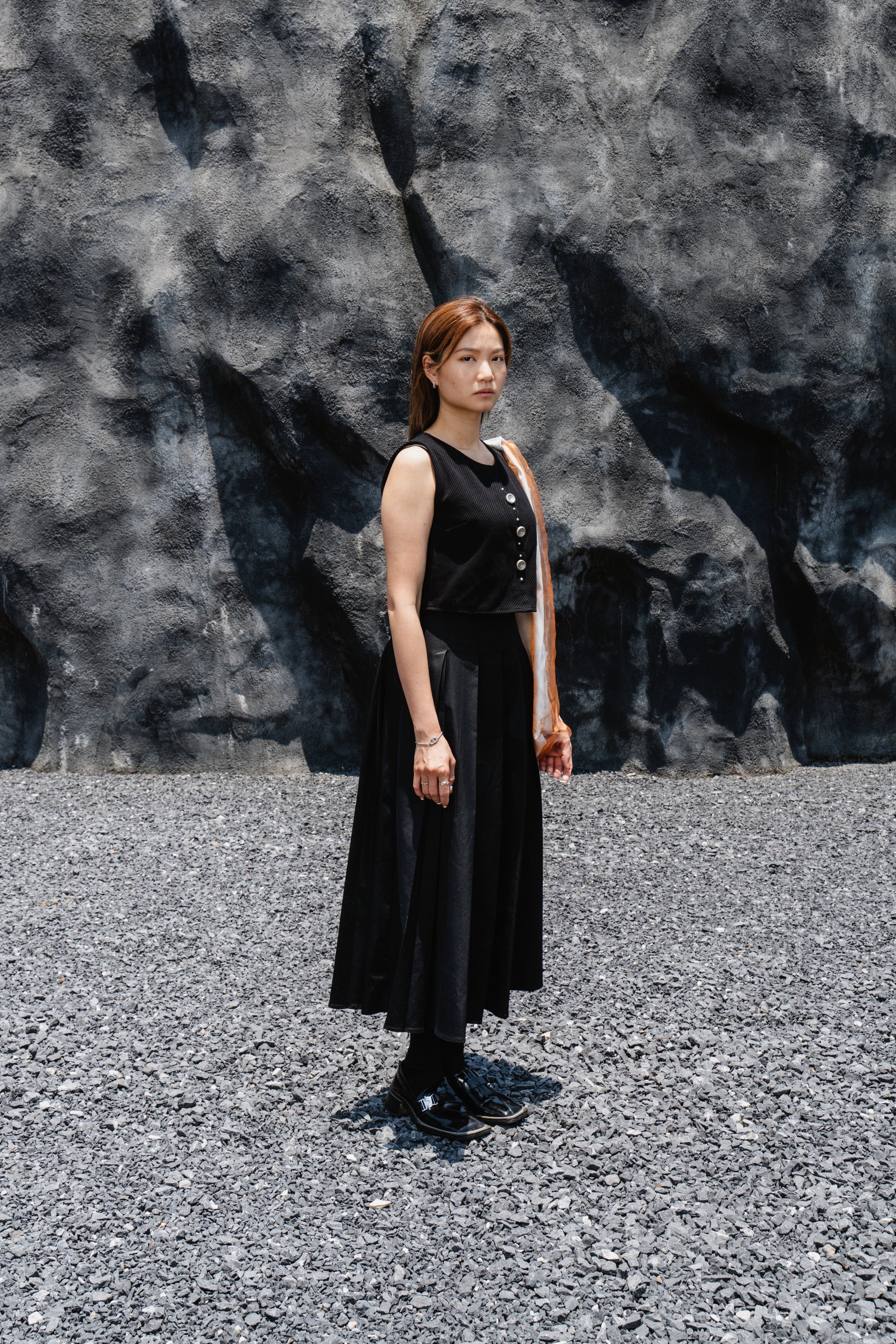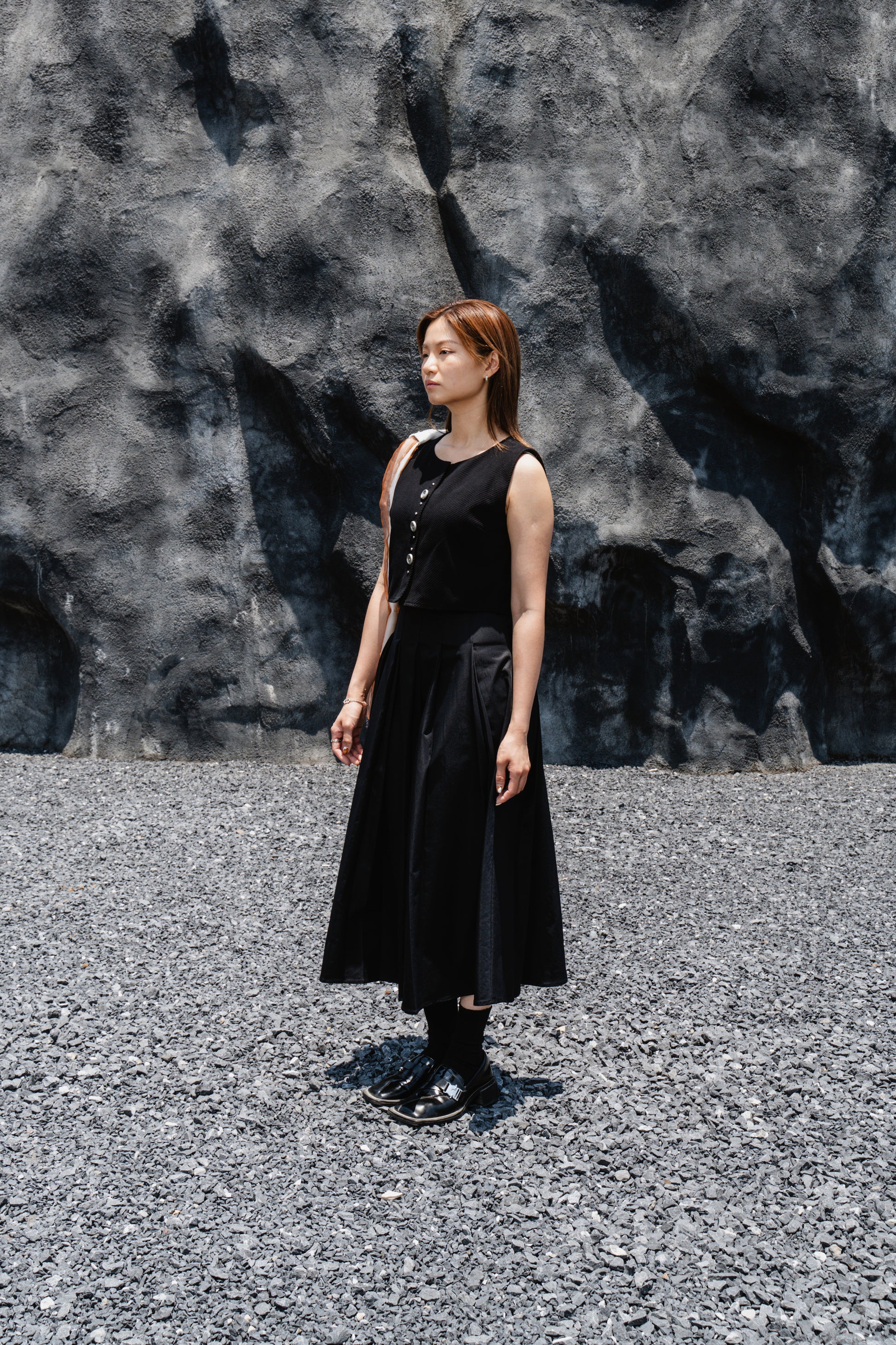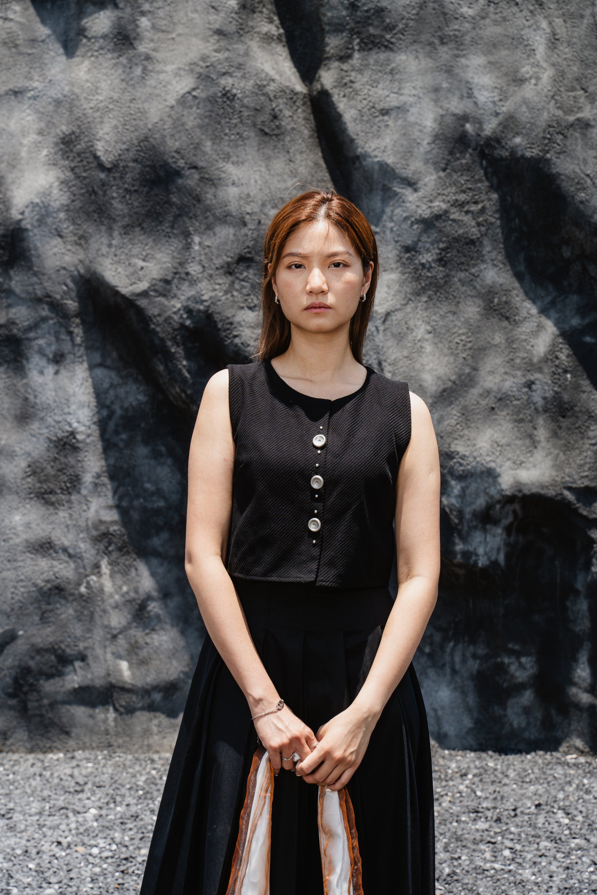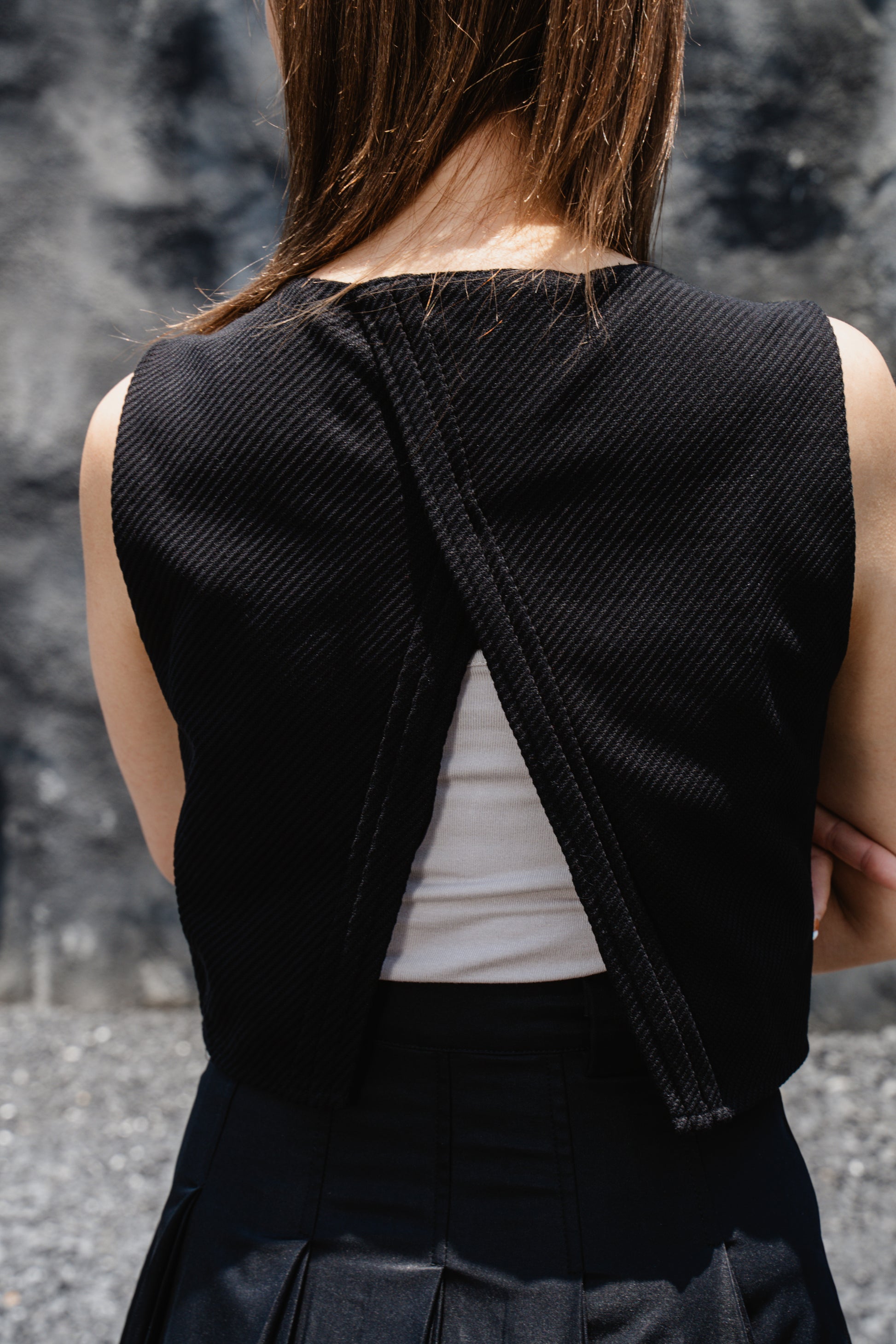 Black Striped Back-Slit Vest
