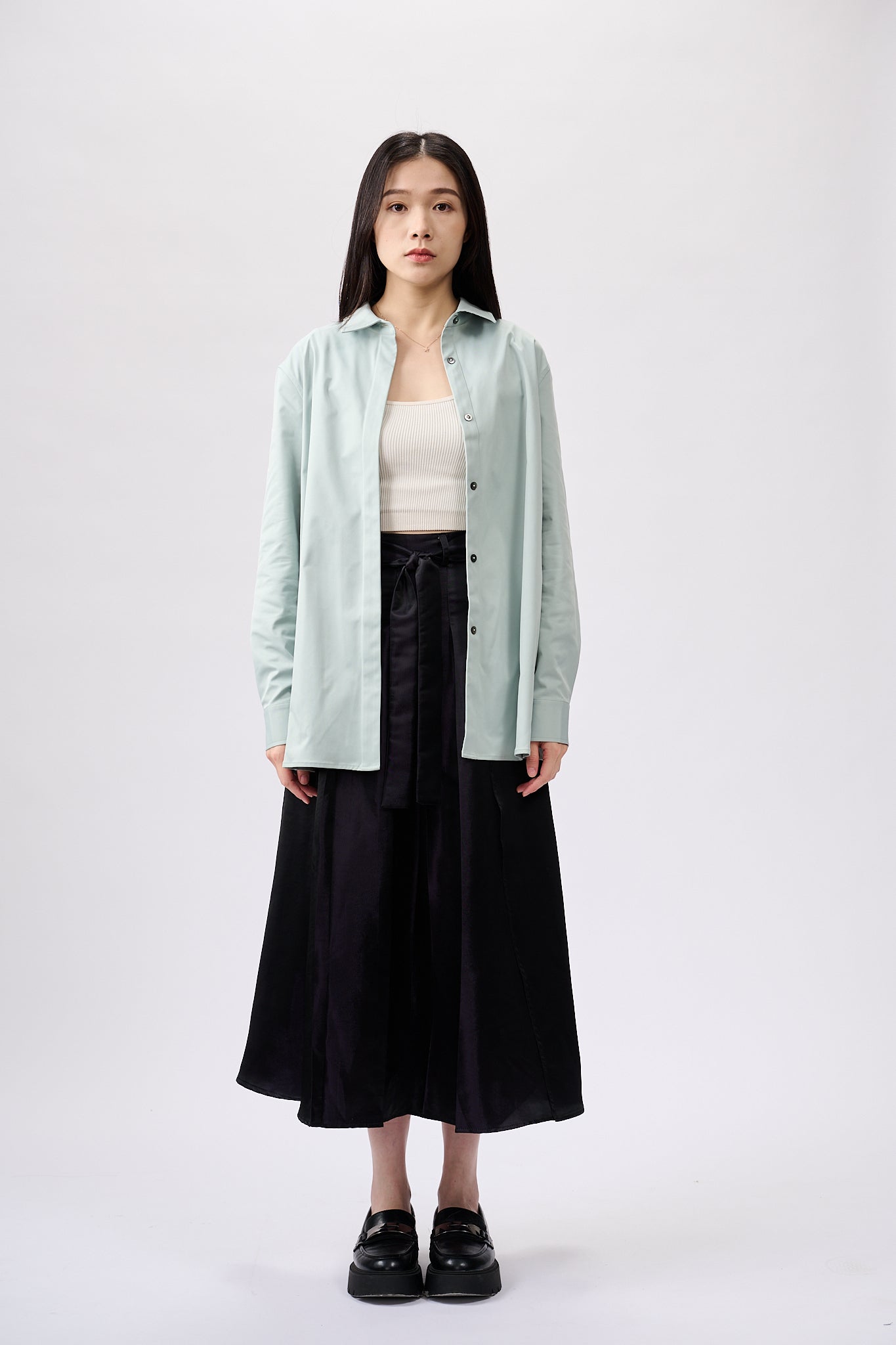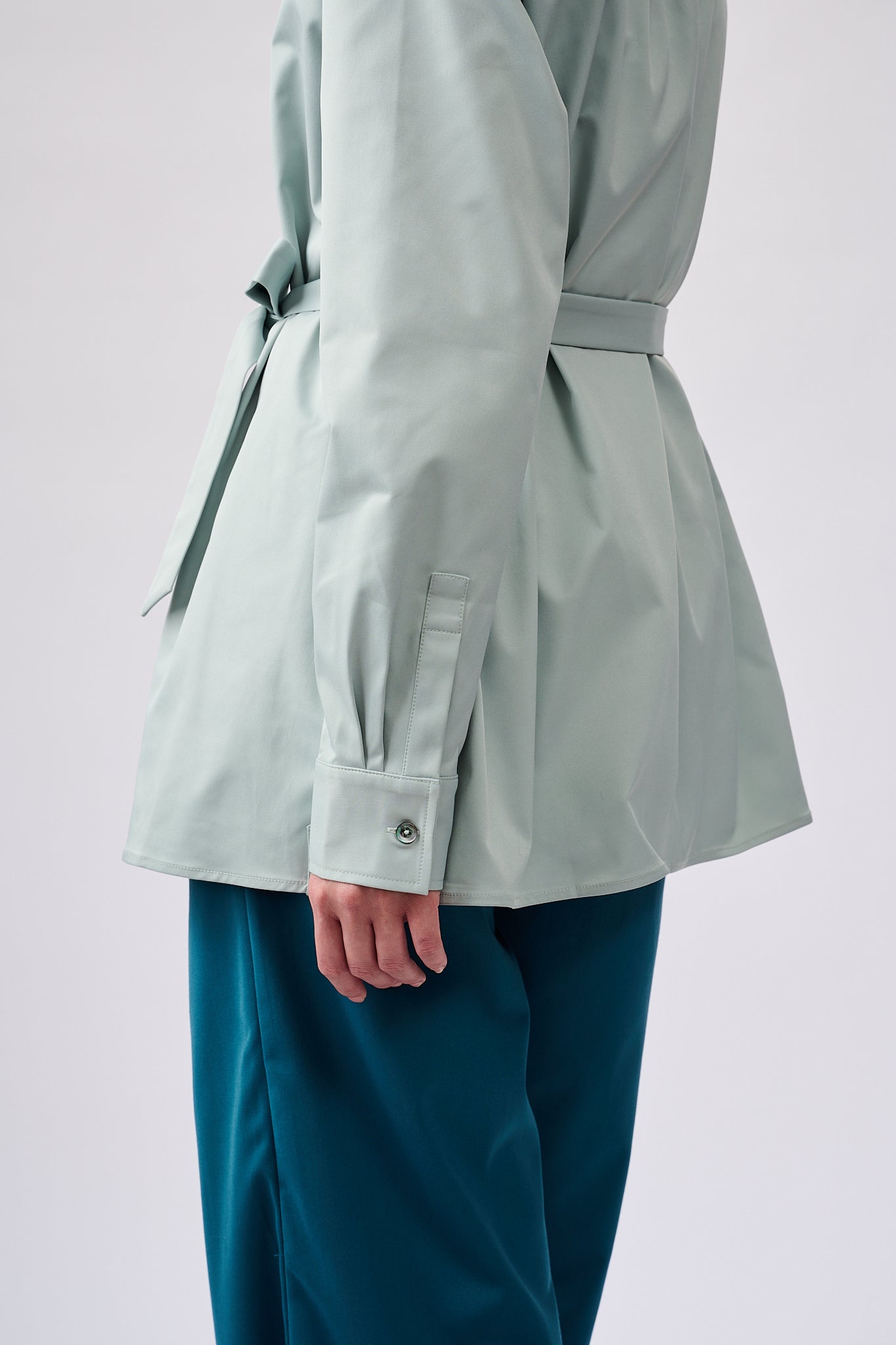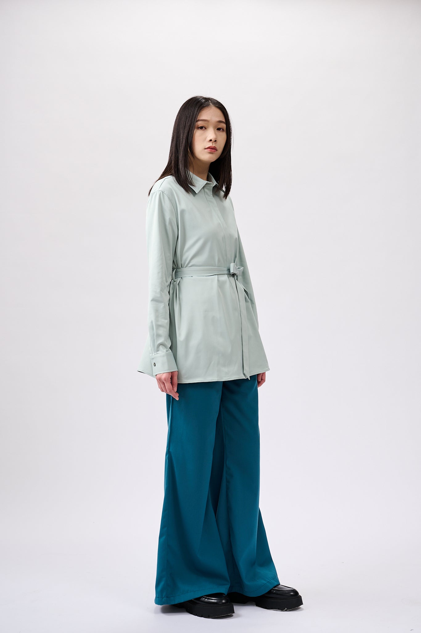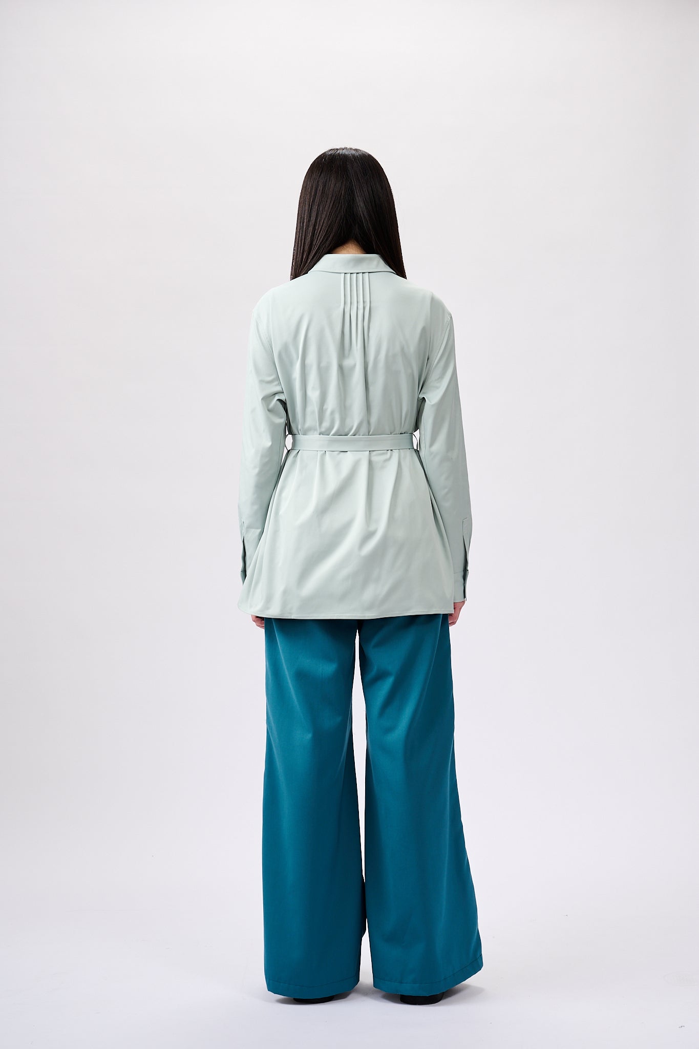 This Blue Belted shirt is designed to flatter any figure with its straight silhouette and belt, while ensuring all-day comfort with its lightweight fabric. Perfect for everyday wear, its delicate pleats create a subtle and sophisticated look.