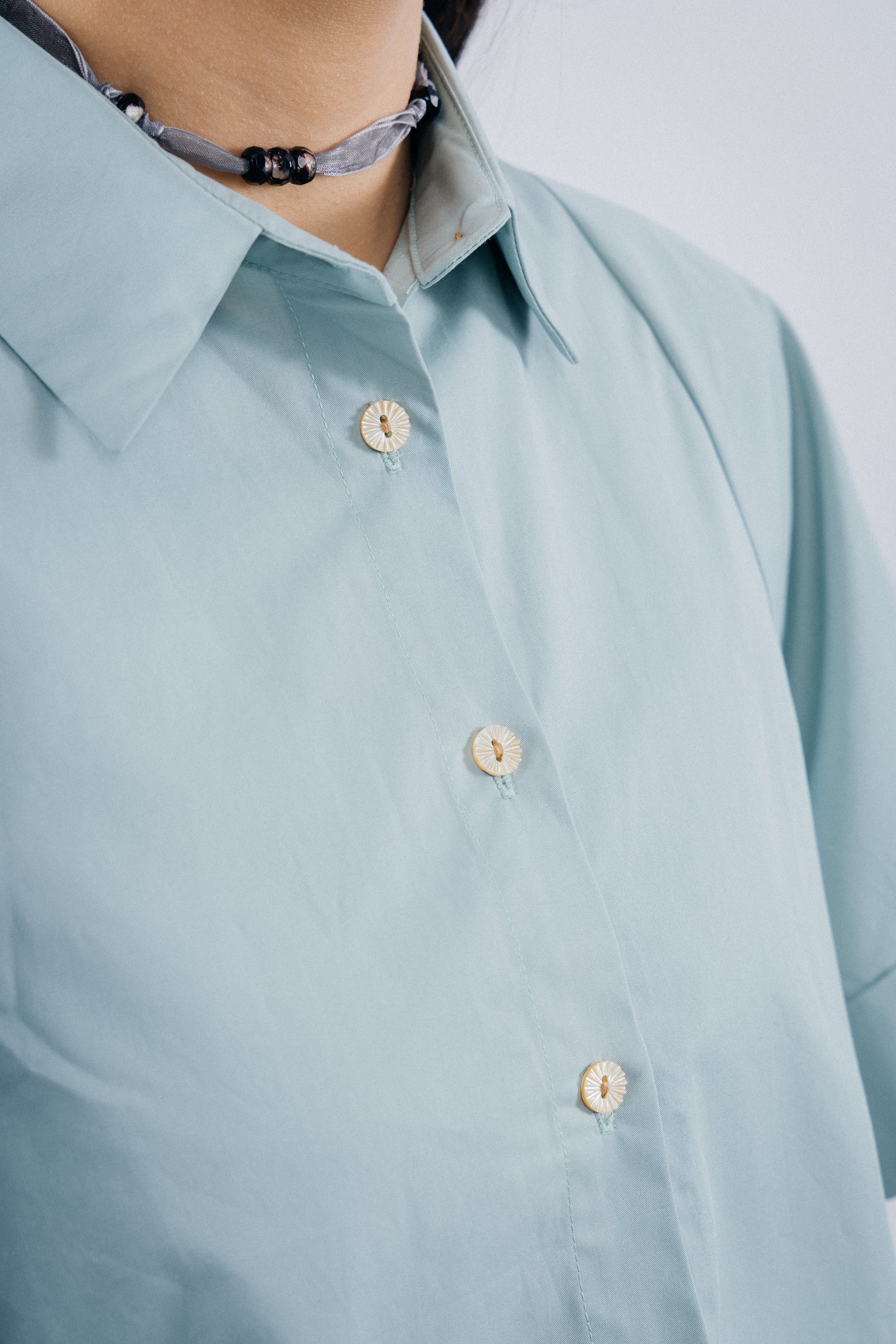 -The shell buttons serve as exquisite adornments, further highlighting the detailed craftsmanship of the garment