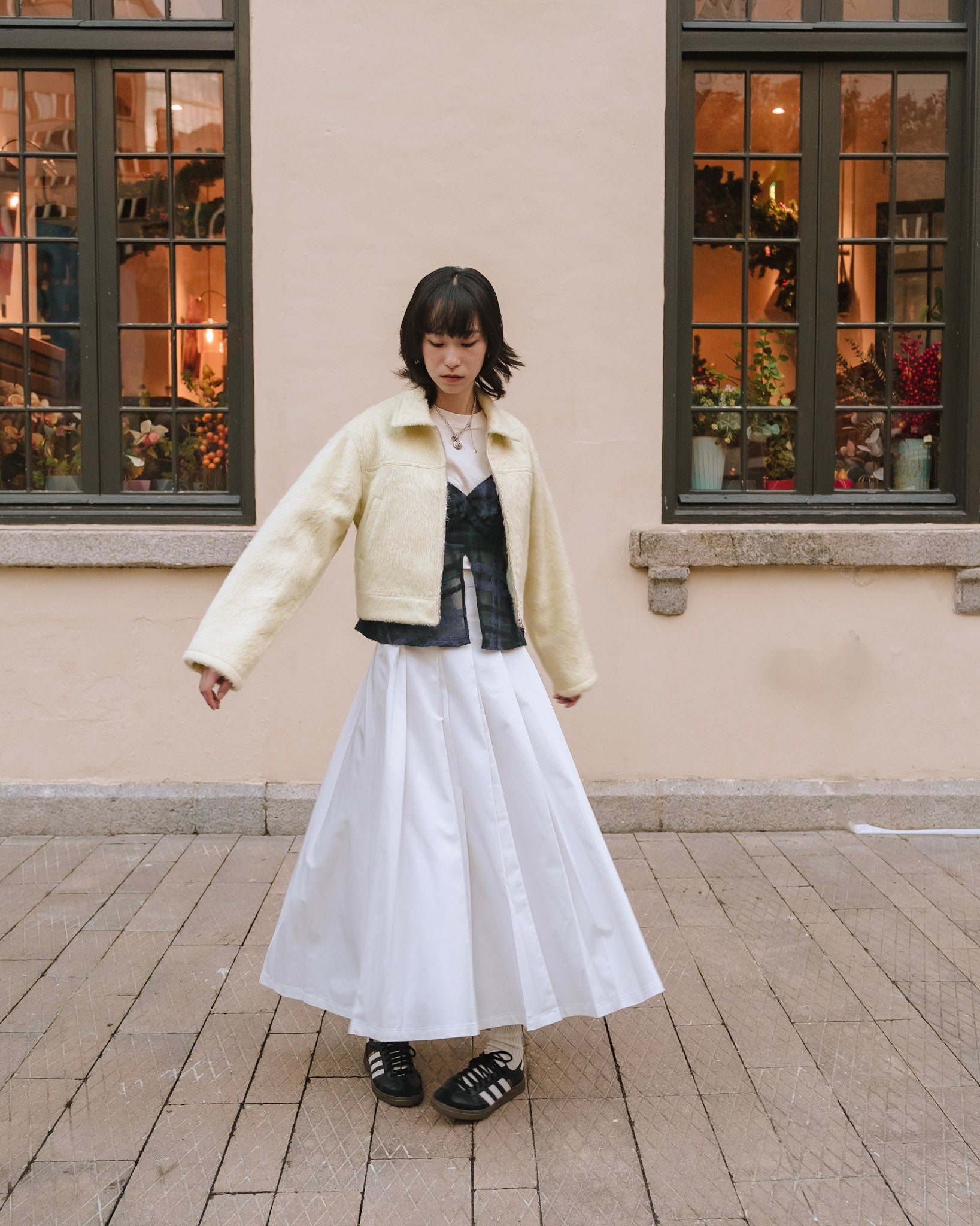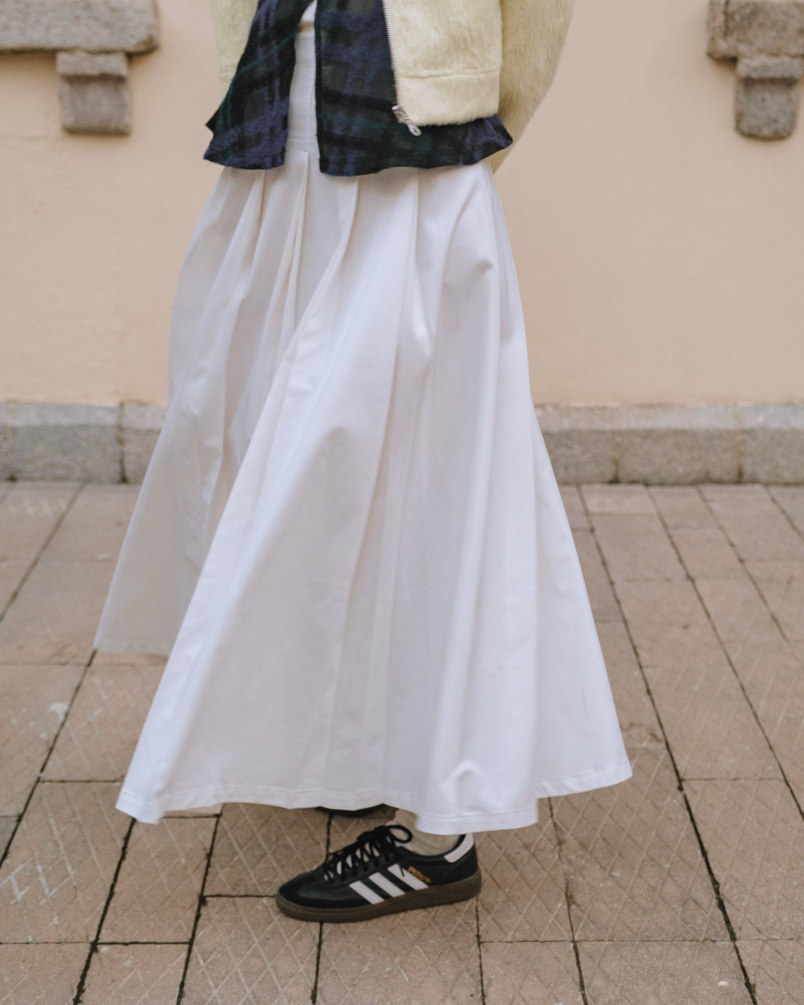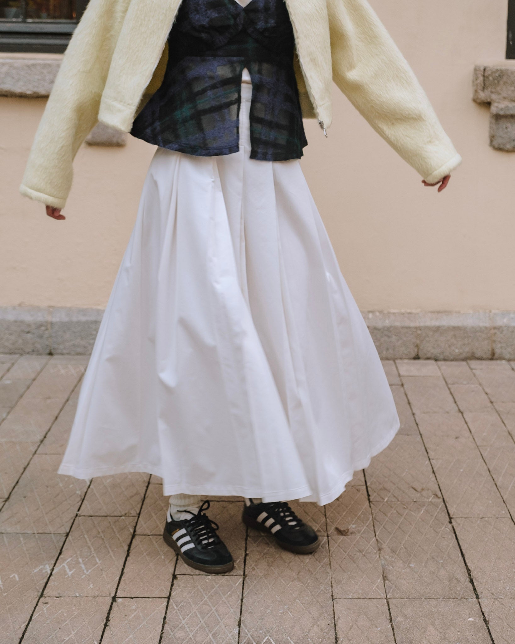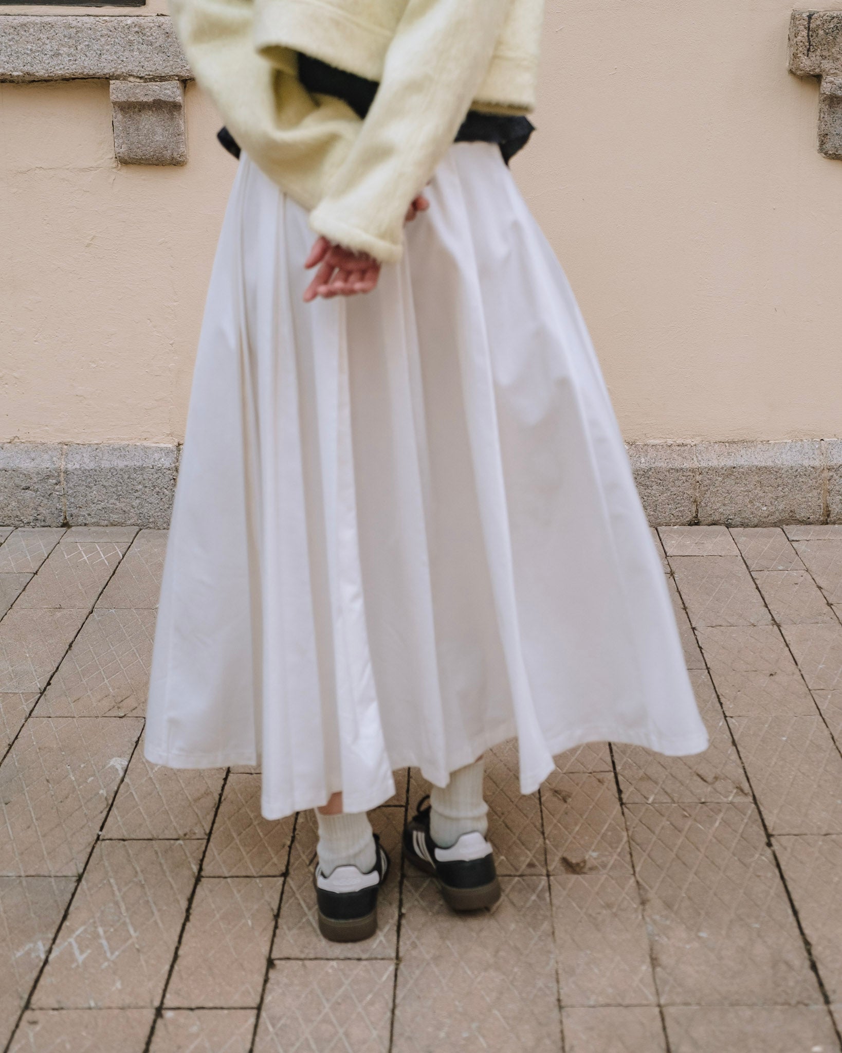 Cotton Double Pleated Skirt