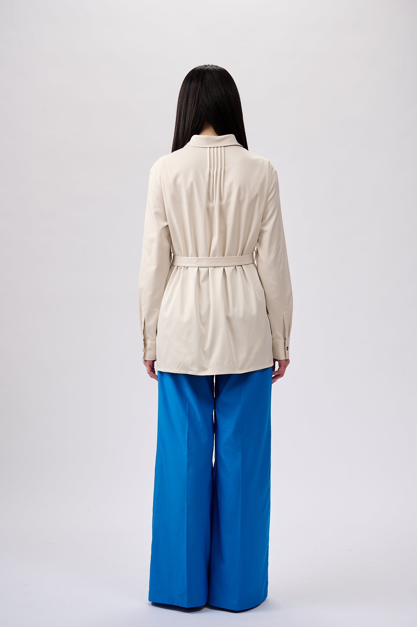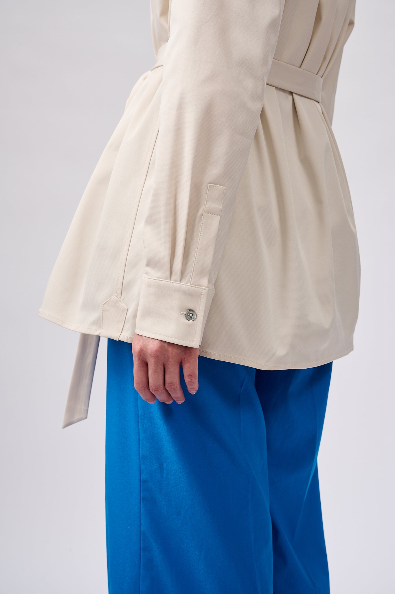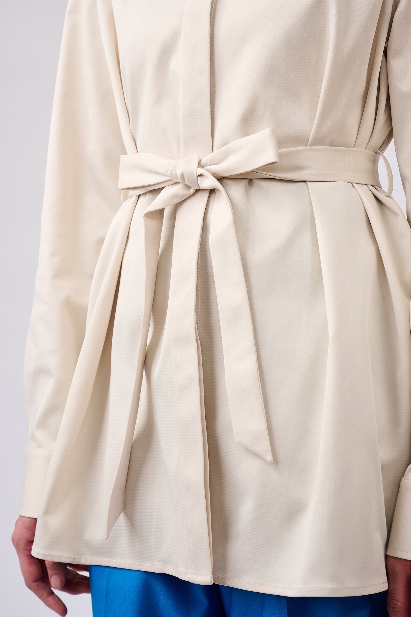 This Cream Belted shirt is designed to flatter any figure with its straight silhouette and belt, while ensuring all-day comfort with its lightweight fabric. Perfect for everyday wear, its delicate pleats create a subtle and sophisticated look.