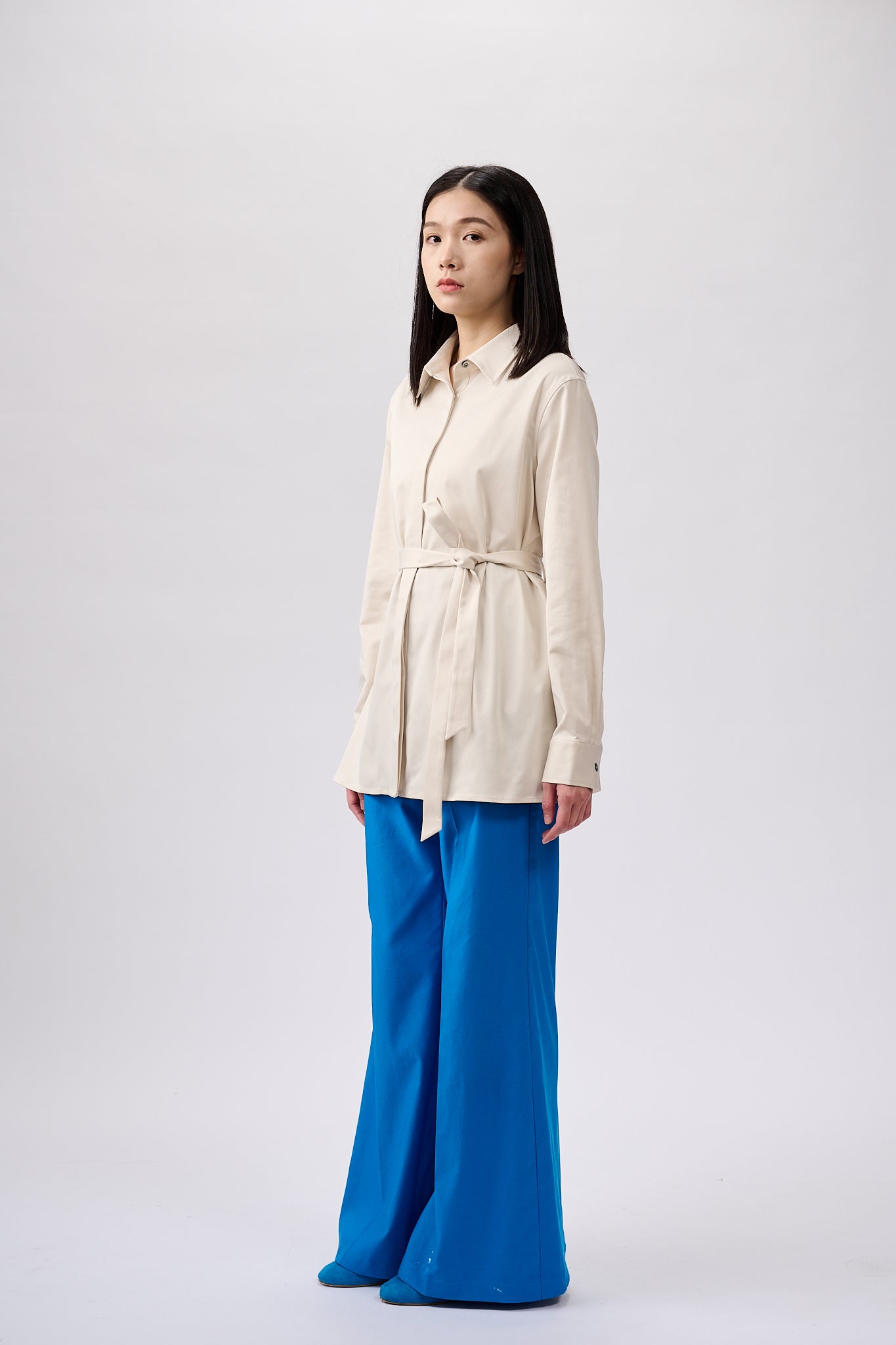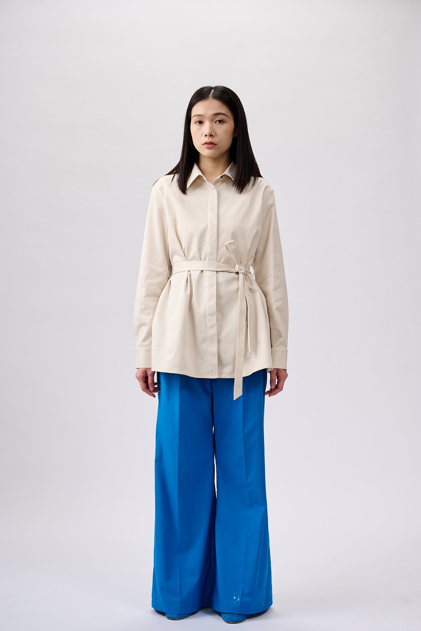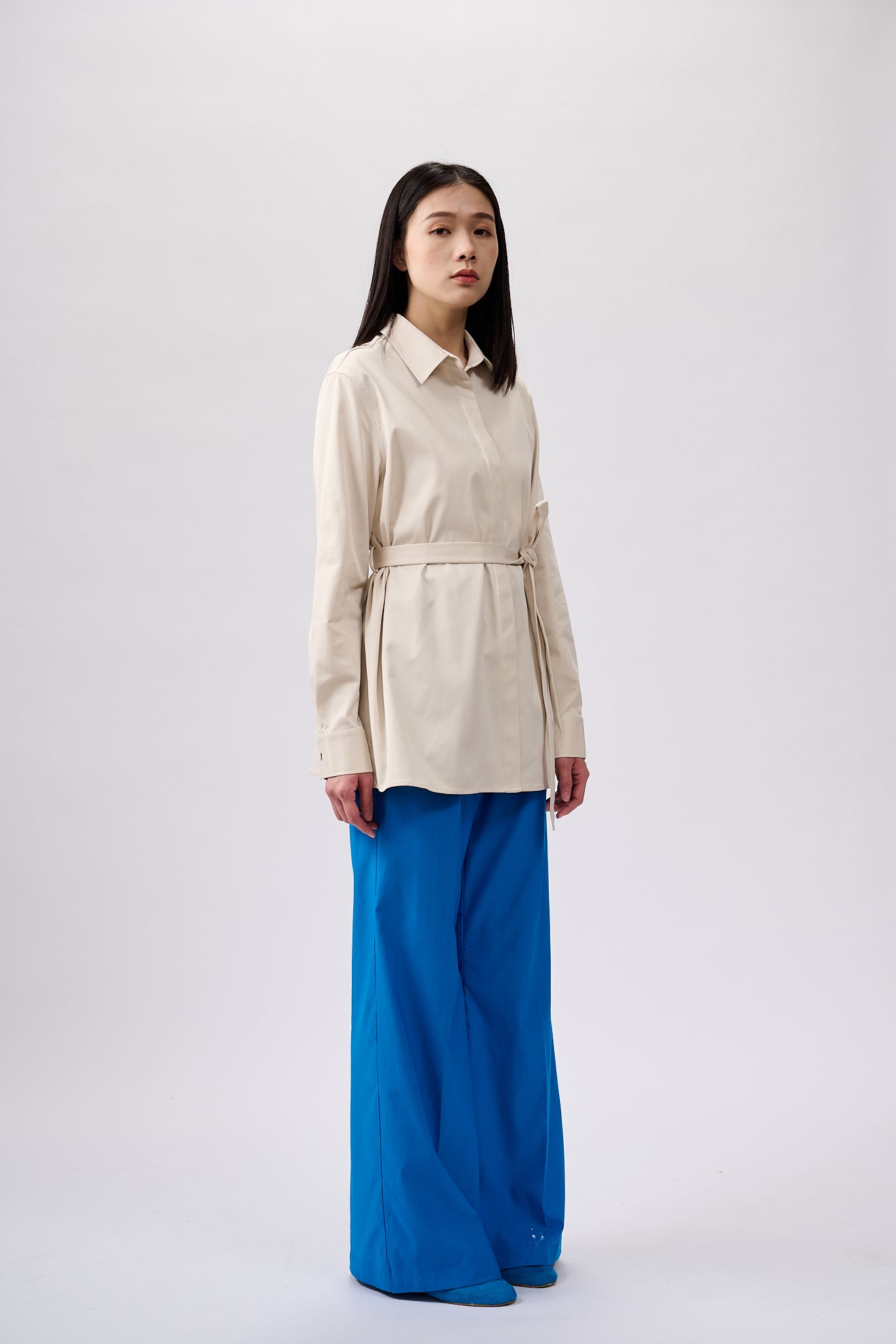 This Cream Belted shirt is designed to flatter any figure with its straight silhouette and belt, while ensuring all-day comfort with its lightweight fabric. Perfect for everyday wear, its delicate pleats create a subtle and sophisticated look.