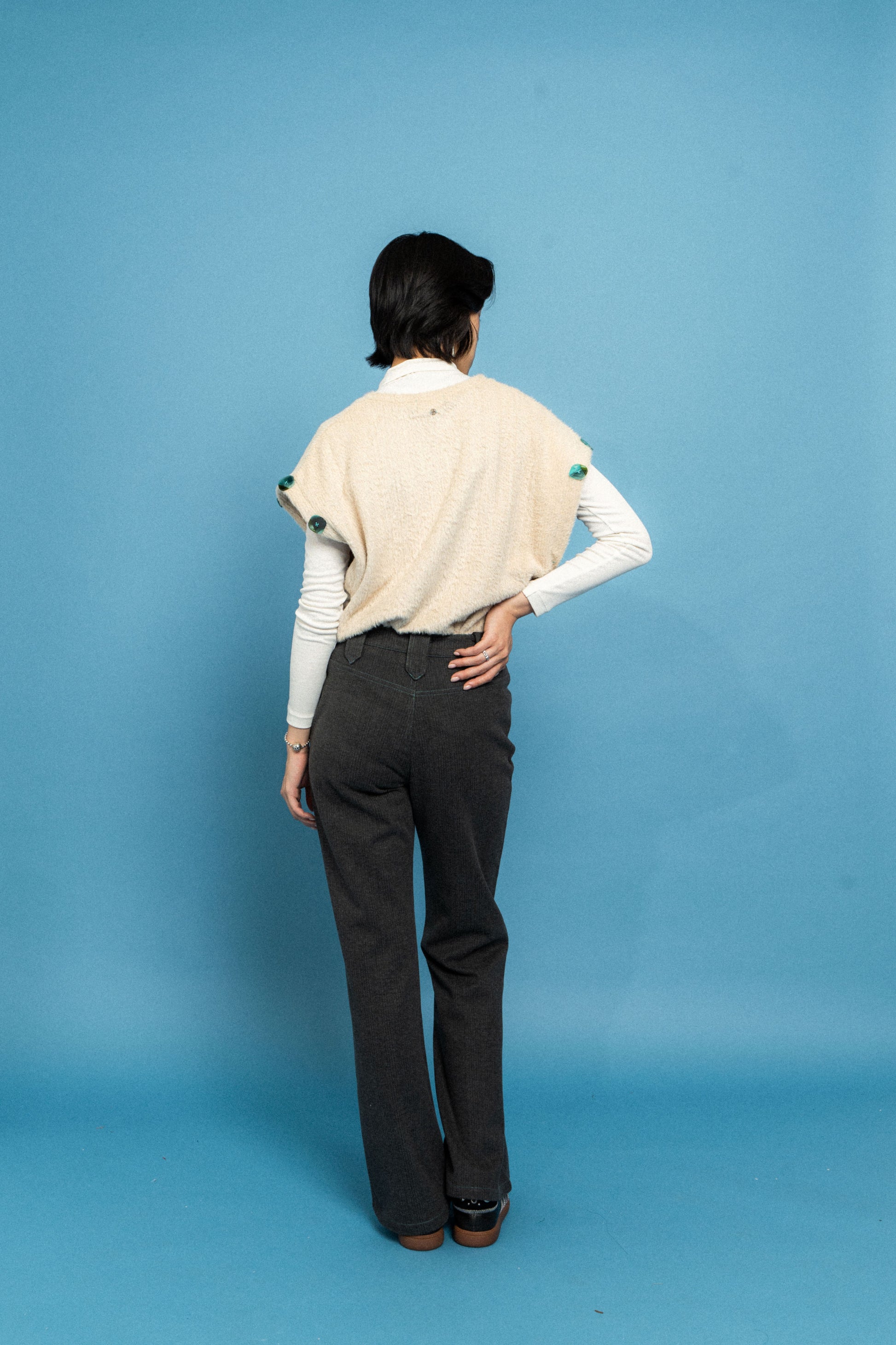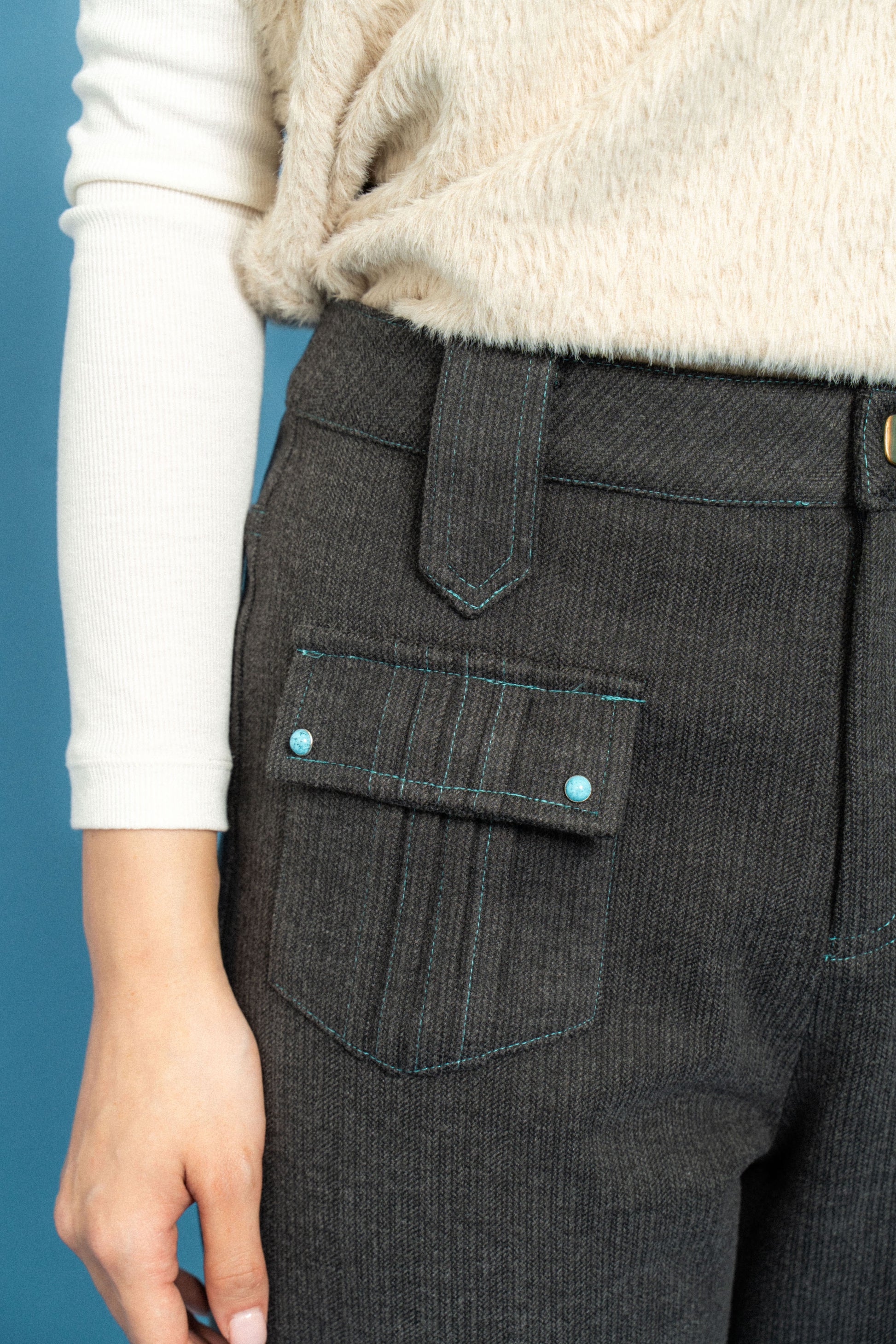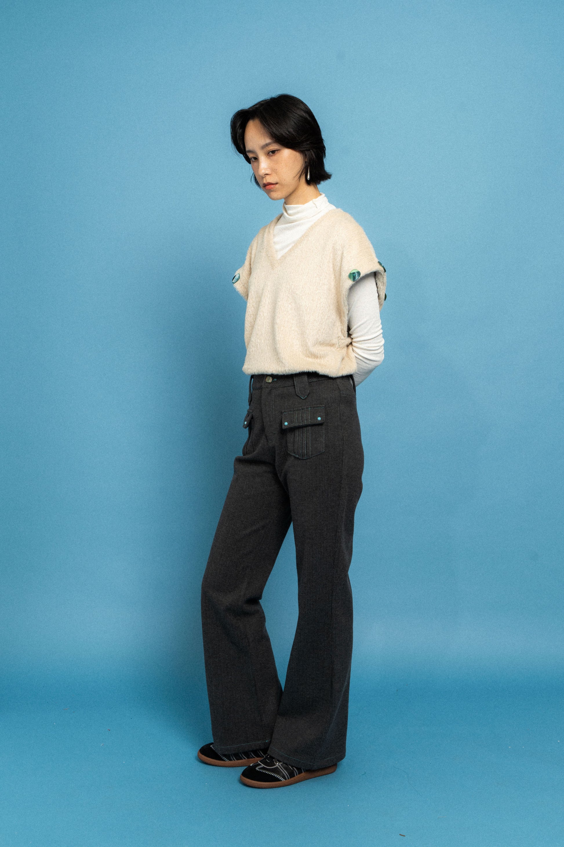 Dark Grey 70's bootcut trousers mix and match suggestion