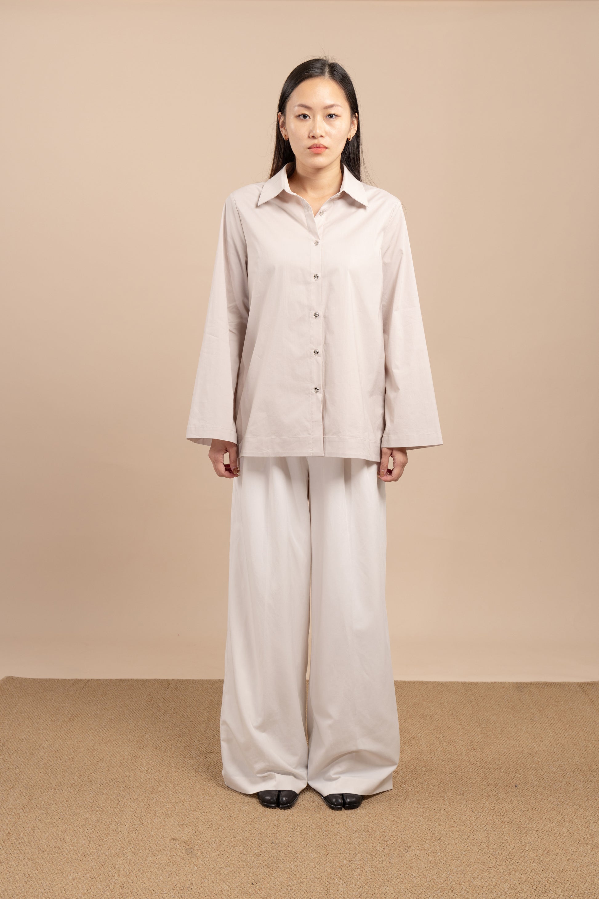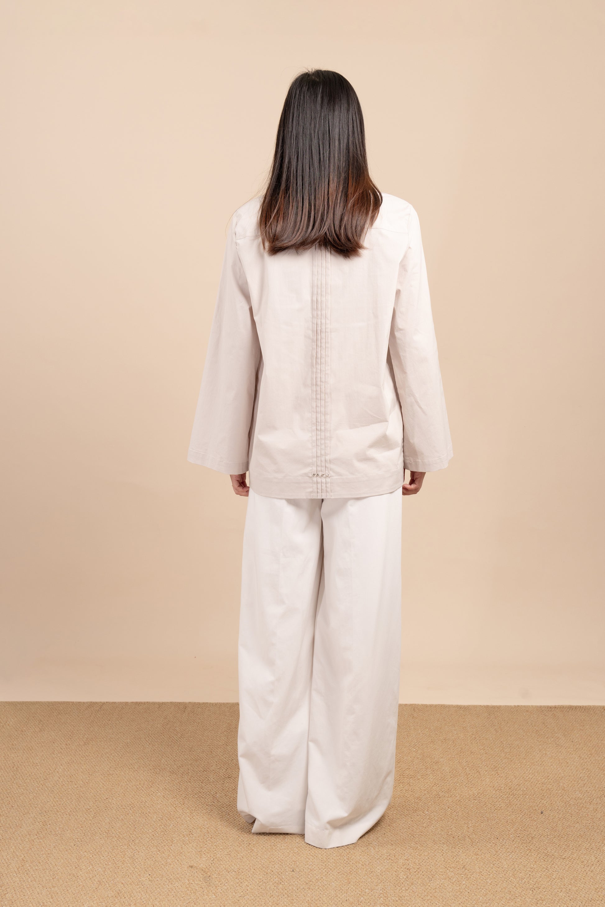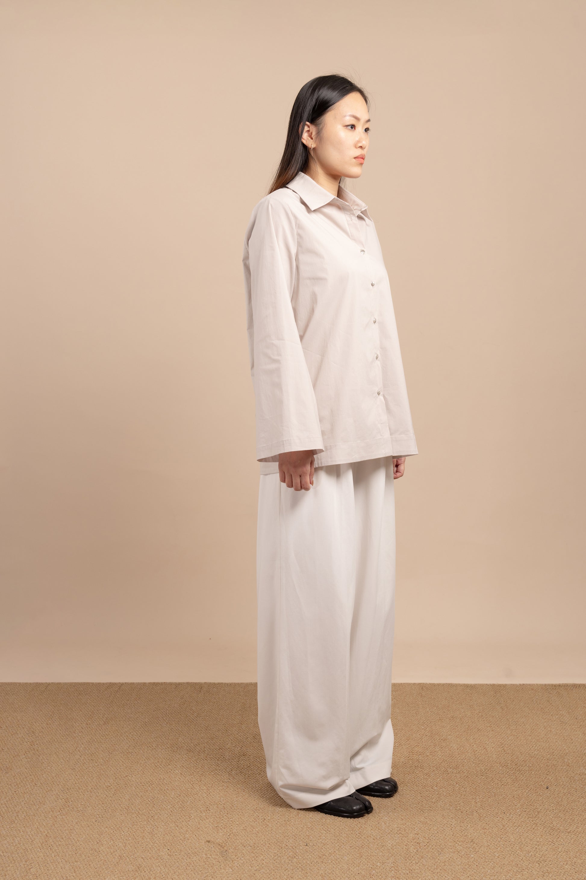 The unique widened sleeve cuffs are crafted with diagonal cuts, creating a natural drape and flow.