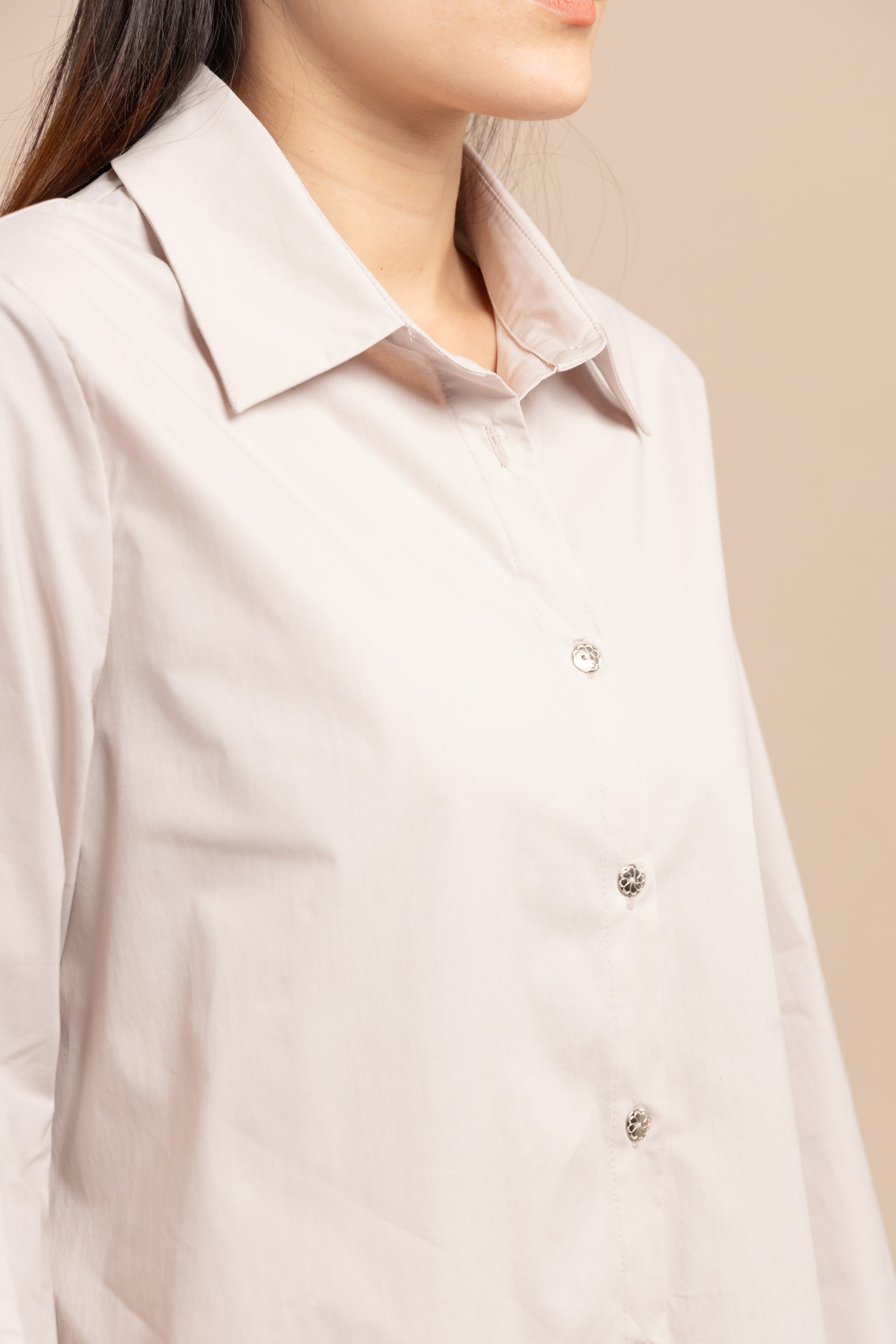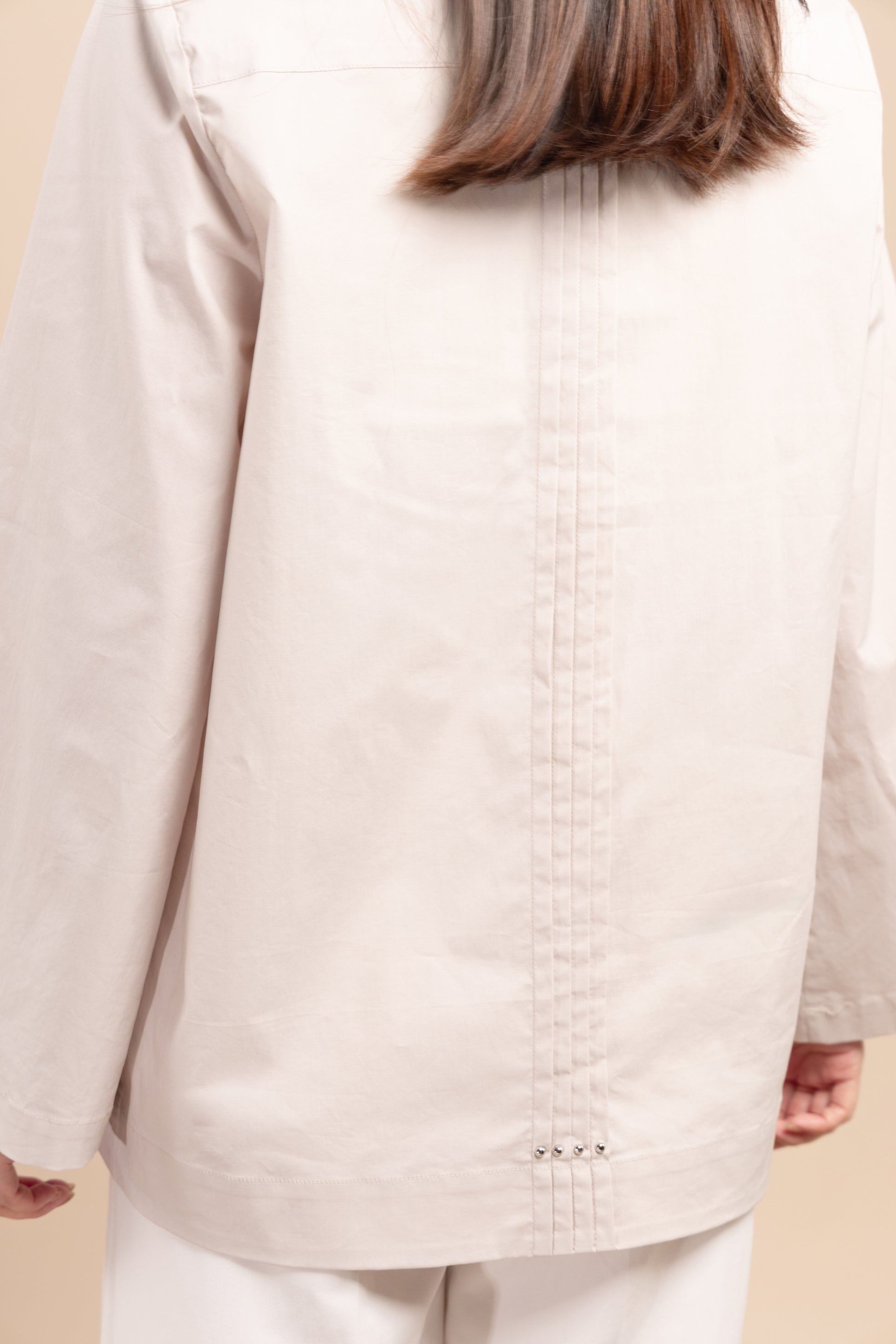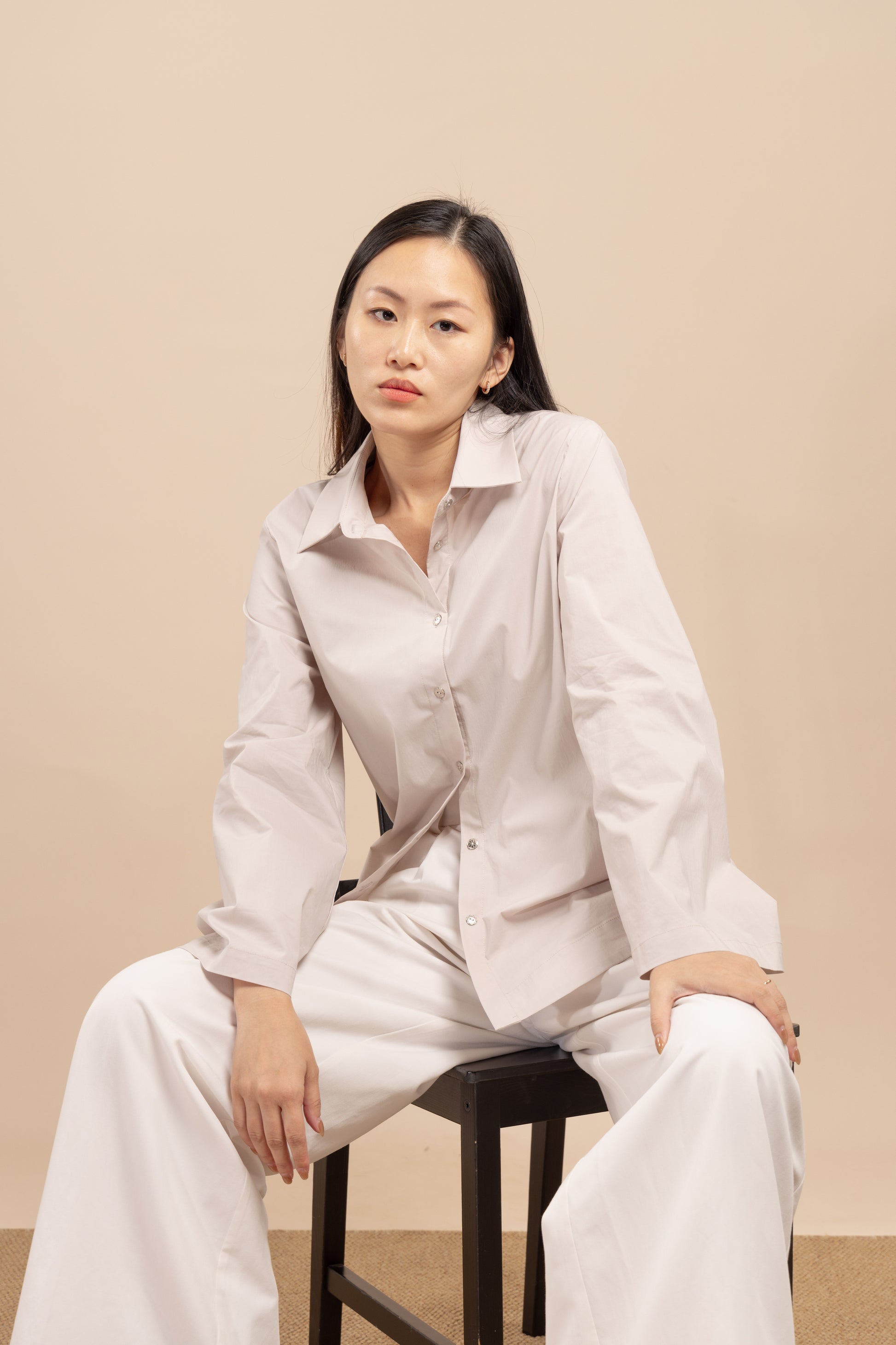 The unique widened sleeve cuffs are crafted with diagonal cuts, creating a natural drape and flow.