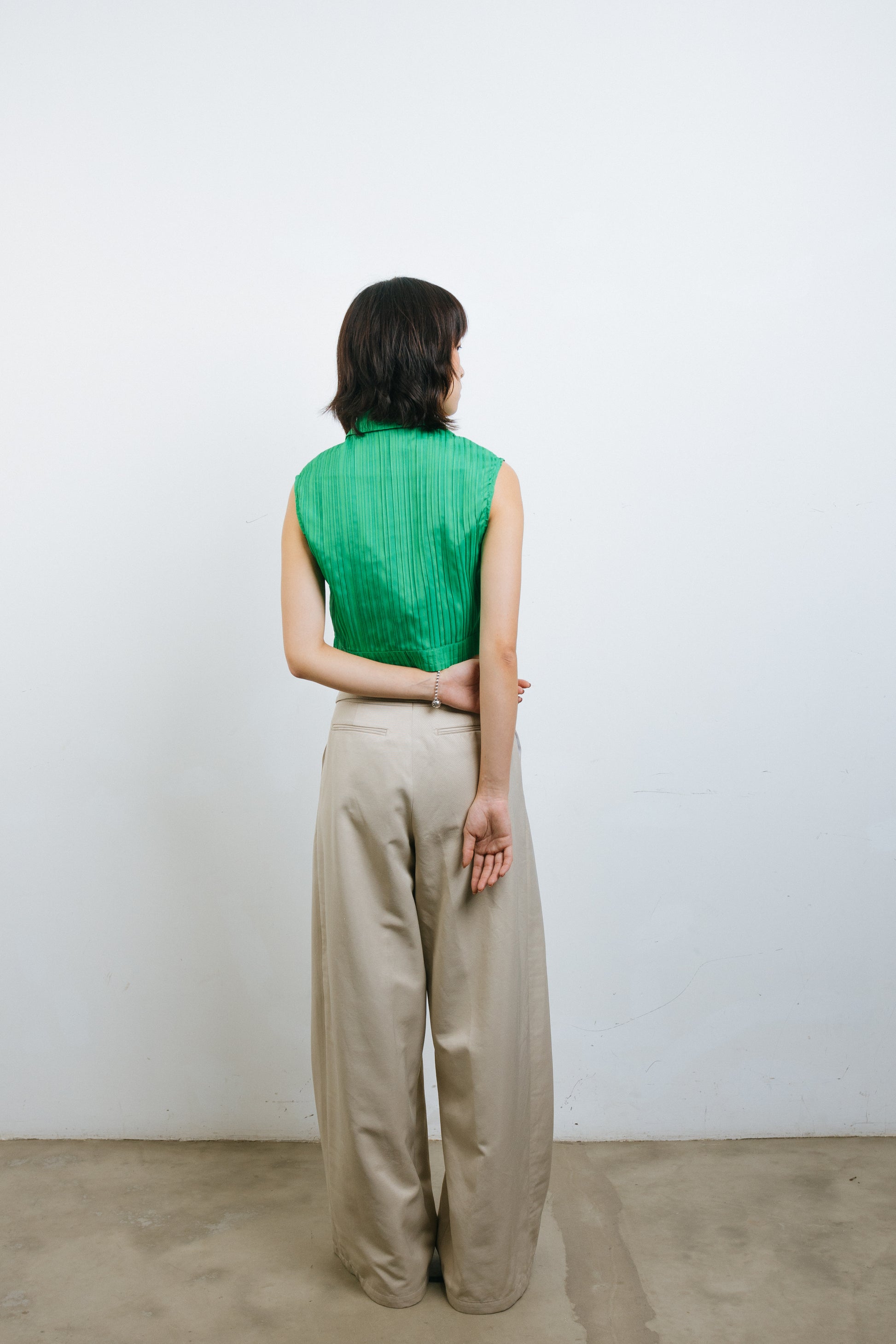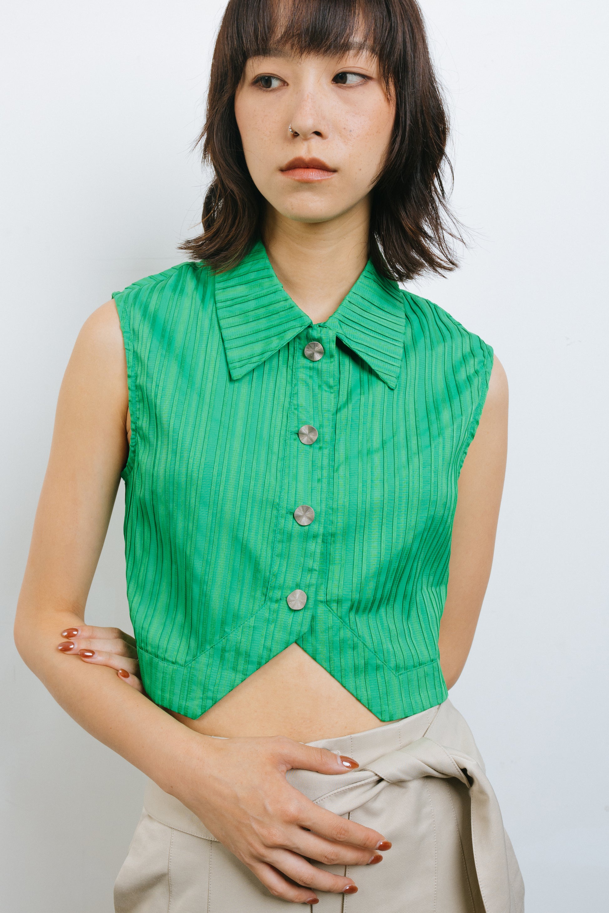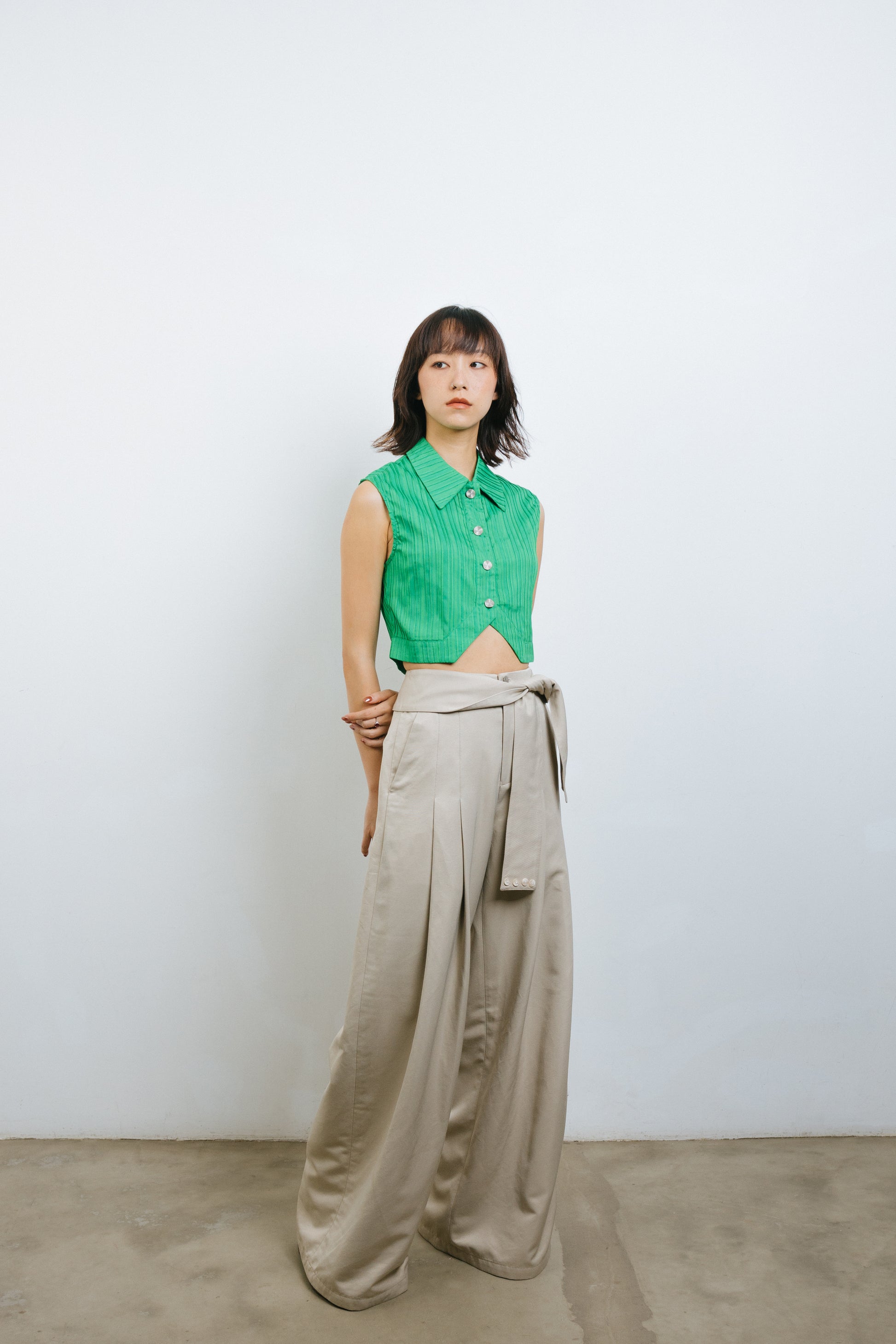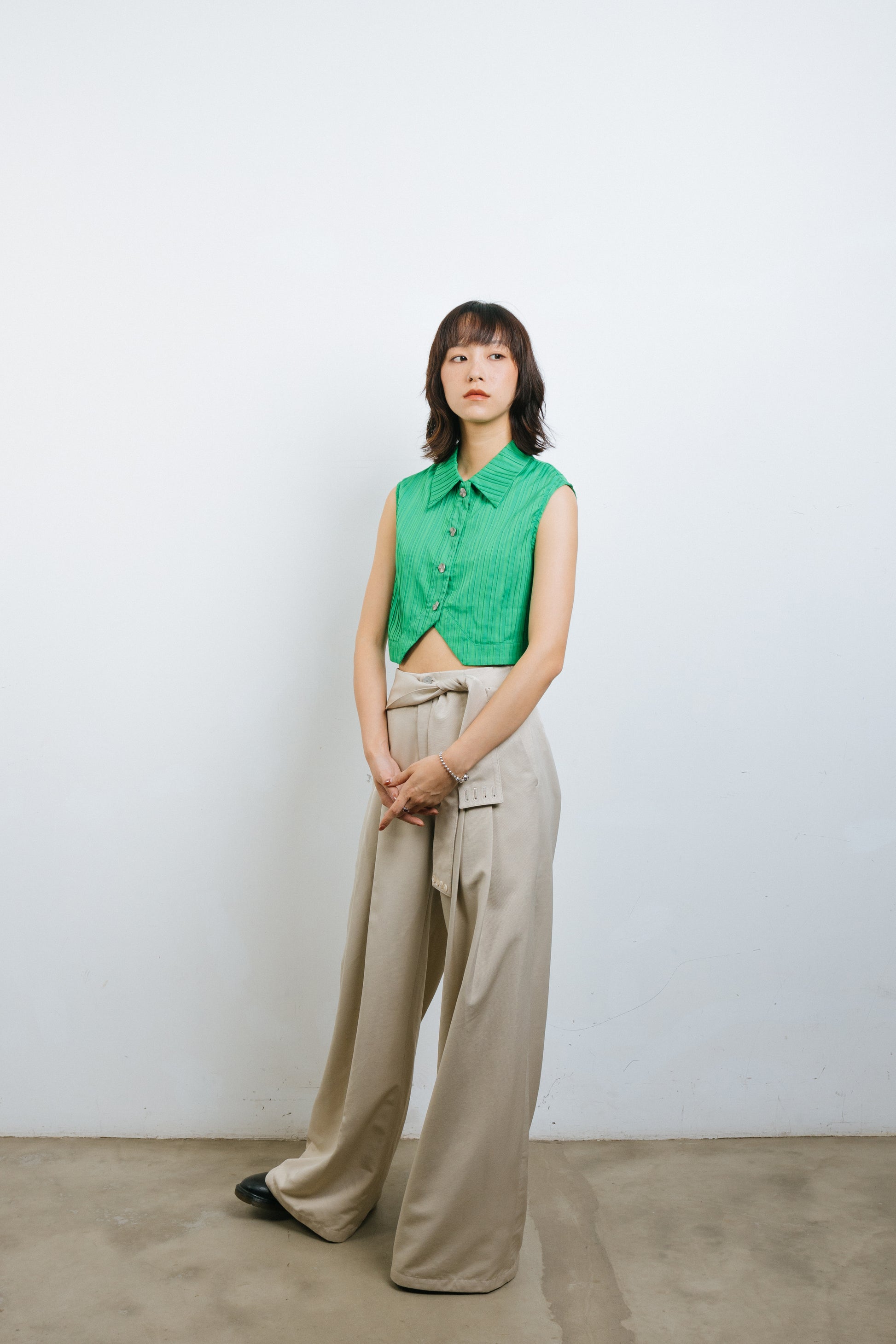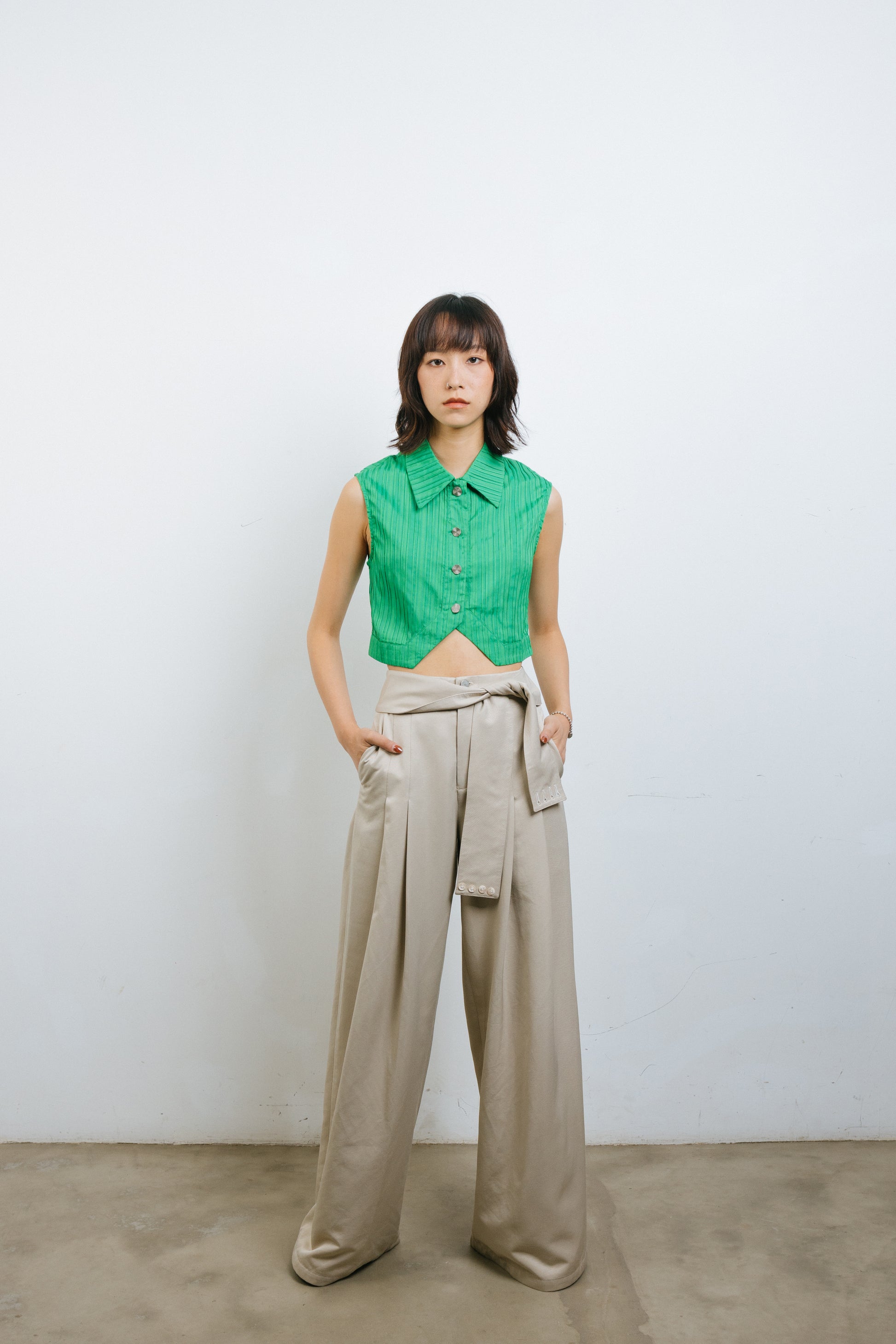 cotton vest the tailoring is closely coordinated with the body's curves, presenting a fitted silhouette for formal wear. The hexagonal design, paired with clean silver buttons, is simple and stylish. The fabric surface has subtle stripes and textures, showing varying shades of color. The overall style emphasizes details and tailoring, highlighting precise craftsmanship and a well-fitted design. It can be paired with various casual pants and trousers for everyday wear.