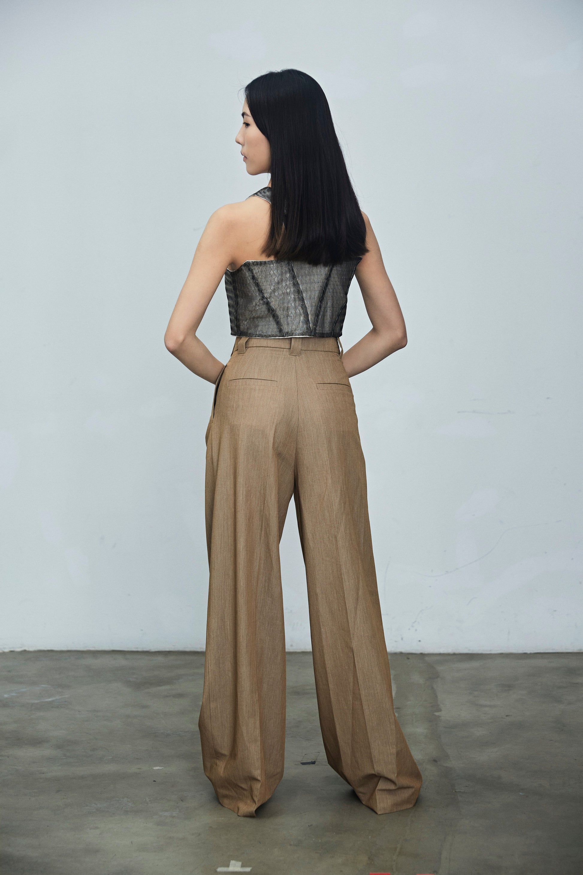 Featuring a high waist design, the fabric is light and thin, giving a heavy sagging feeling but also a feeling of comfort and silky.The waist position of the trousers is higher than the waist position of normal trousers