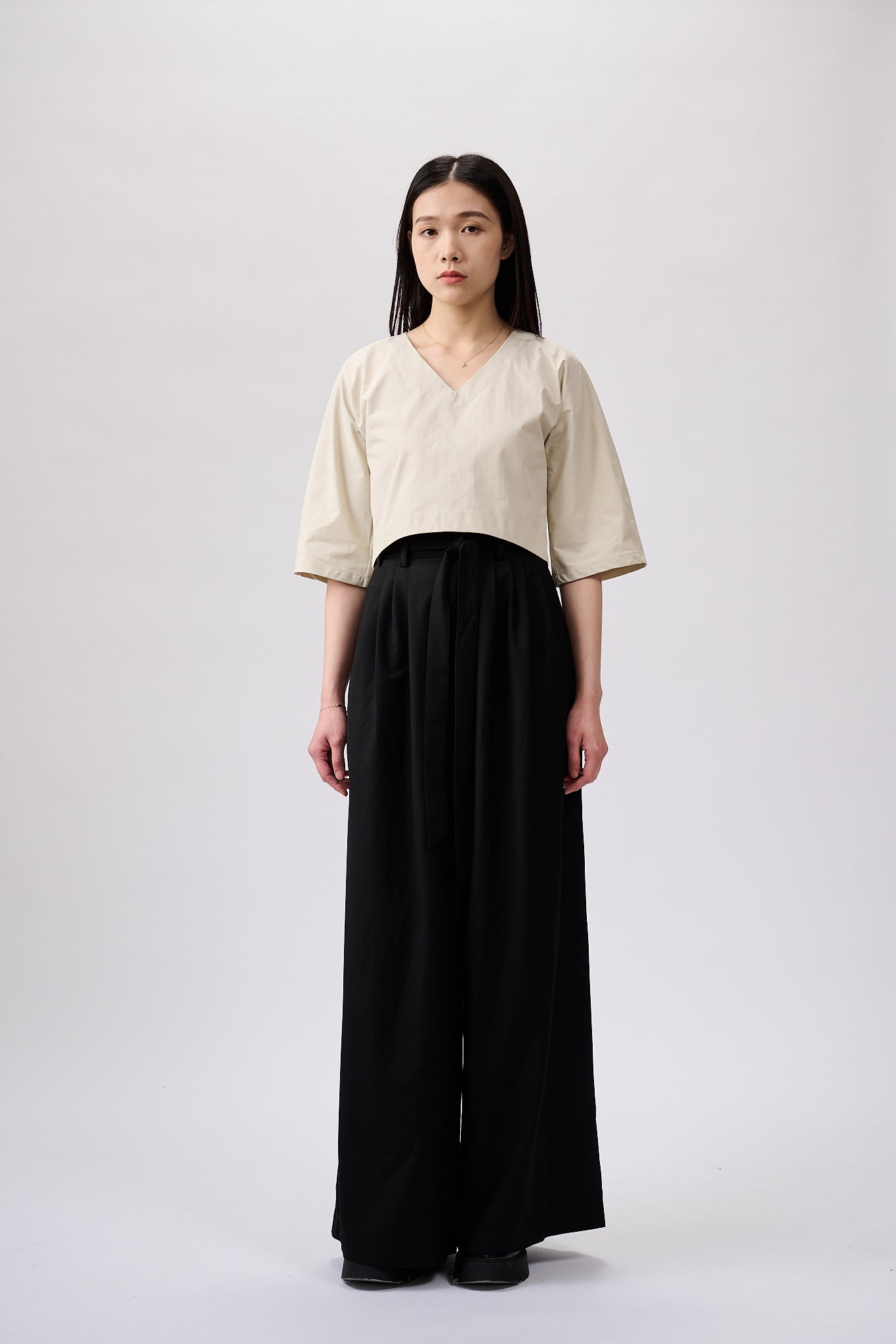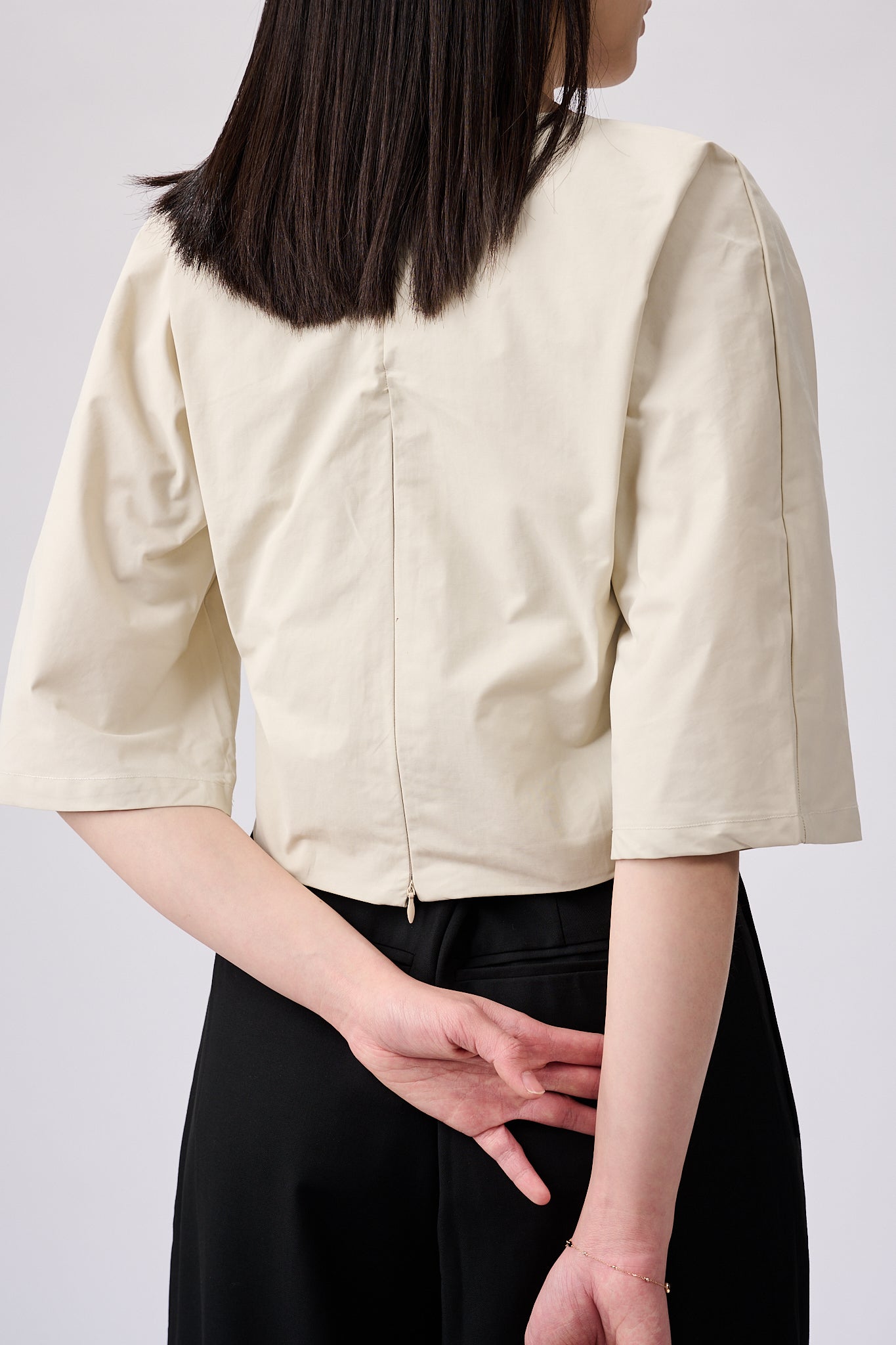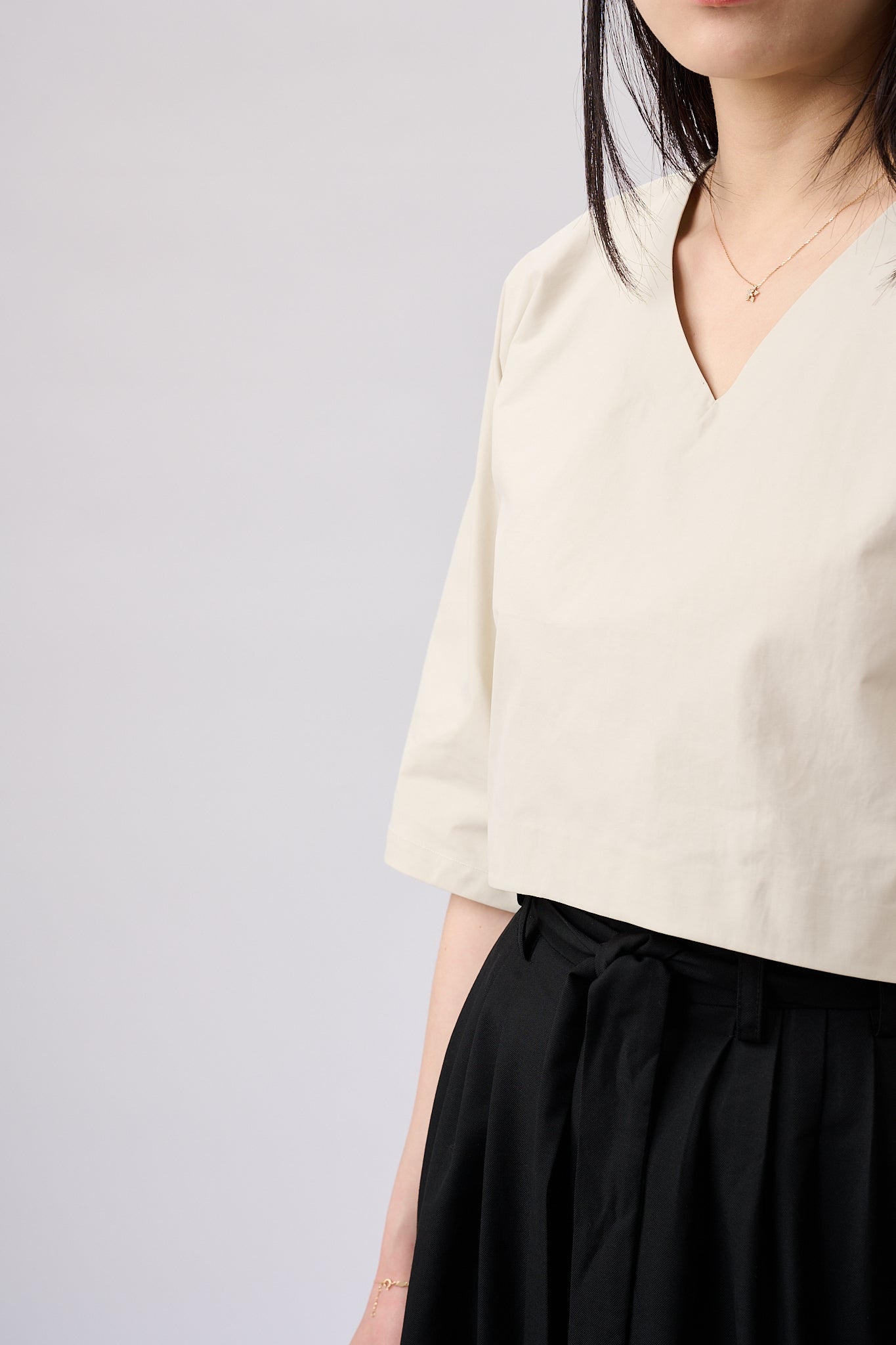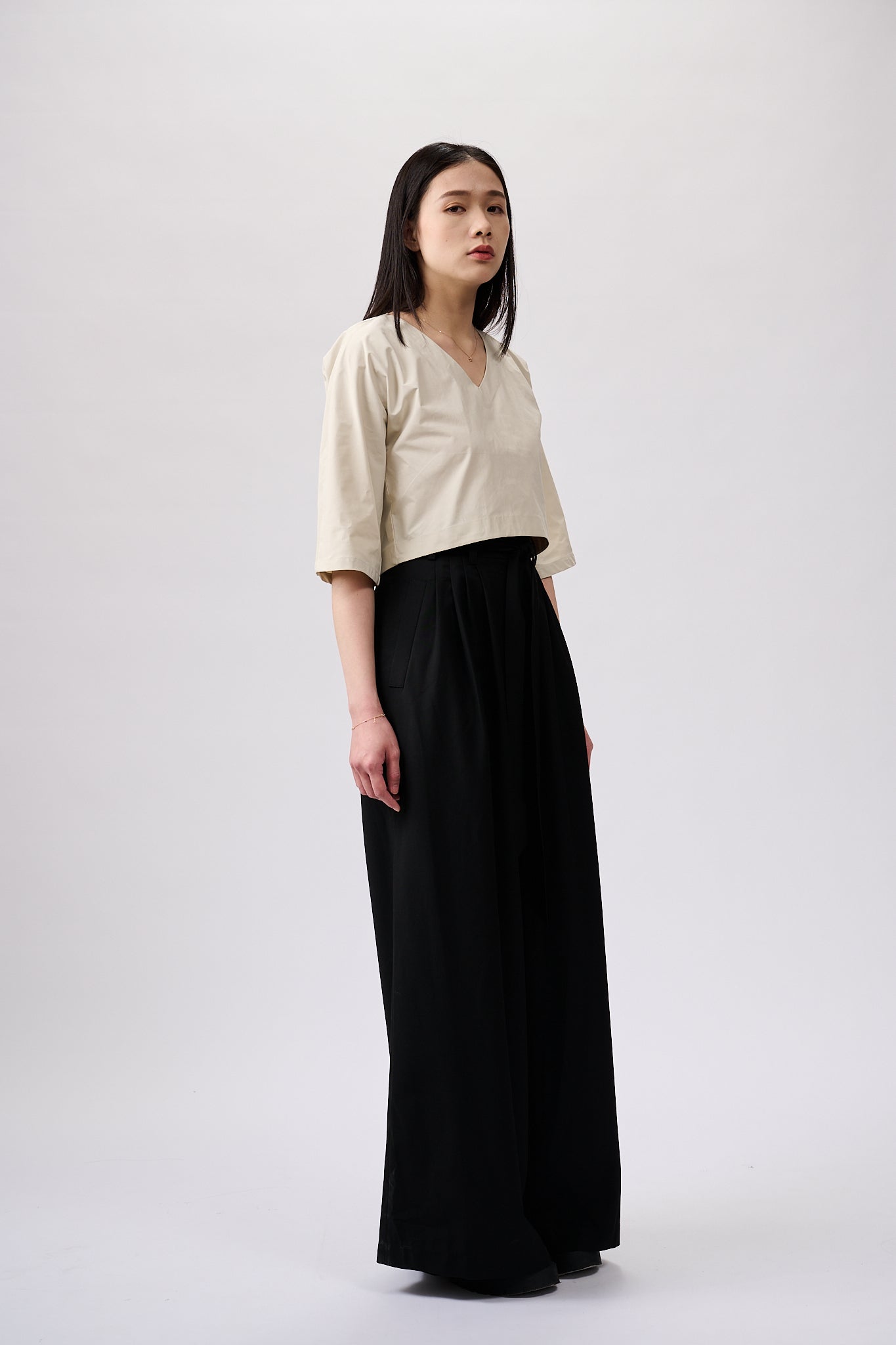 This stylish Ivory White cropped top features a curved waist design for a modern look. Perfect for pairing with high-waisted trousers or skirts, this classic piece will give your wardrobe a classical yet contemporary edge.