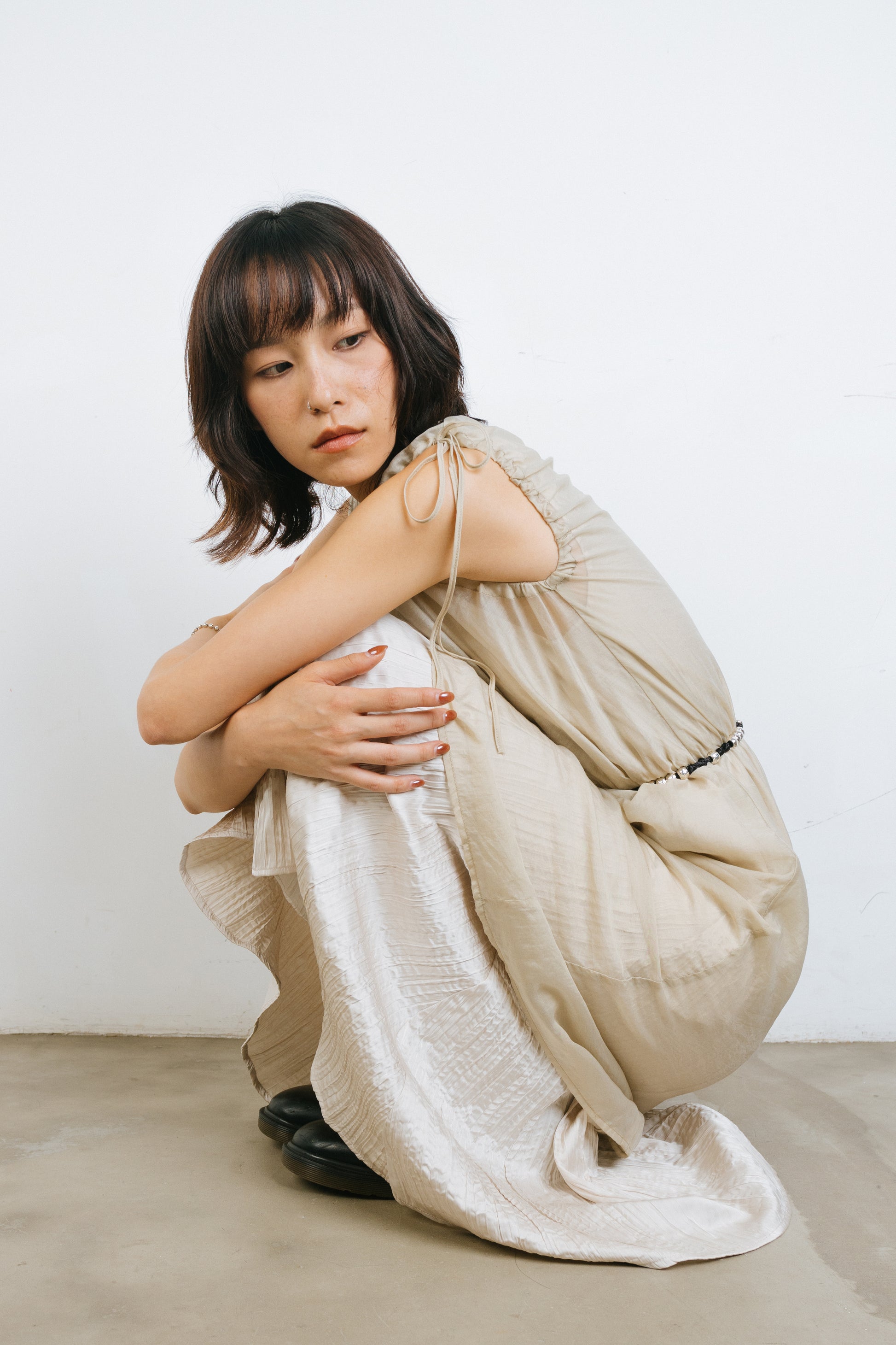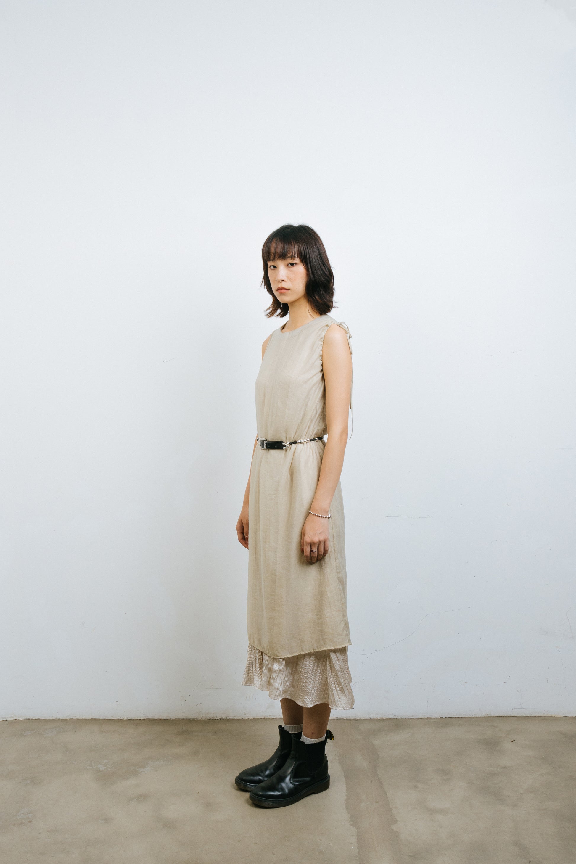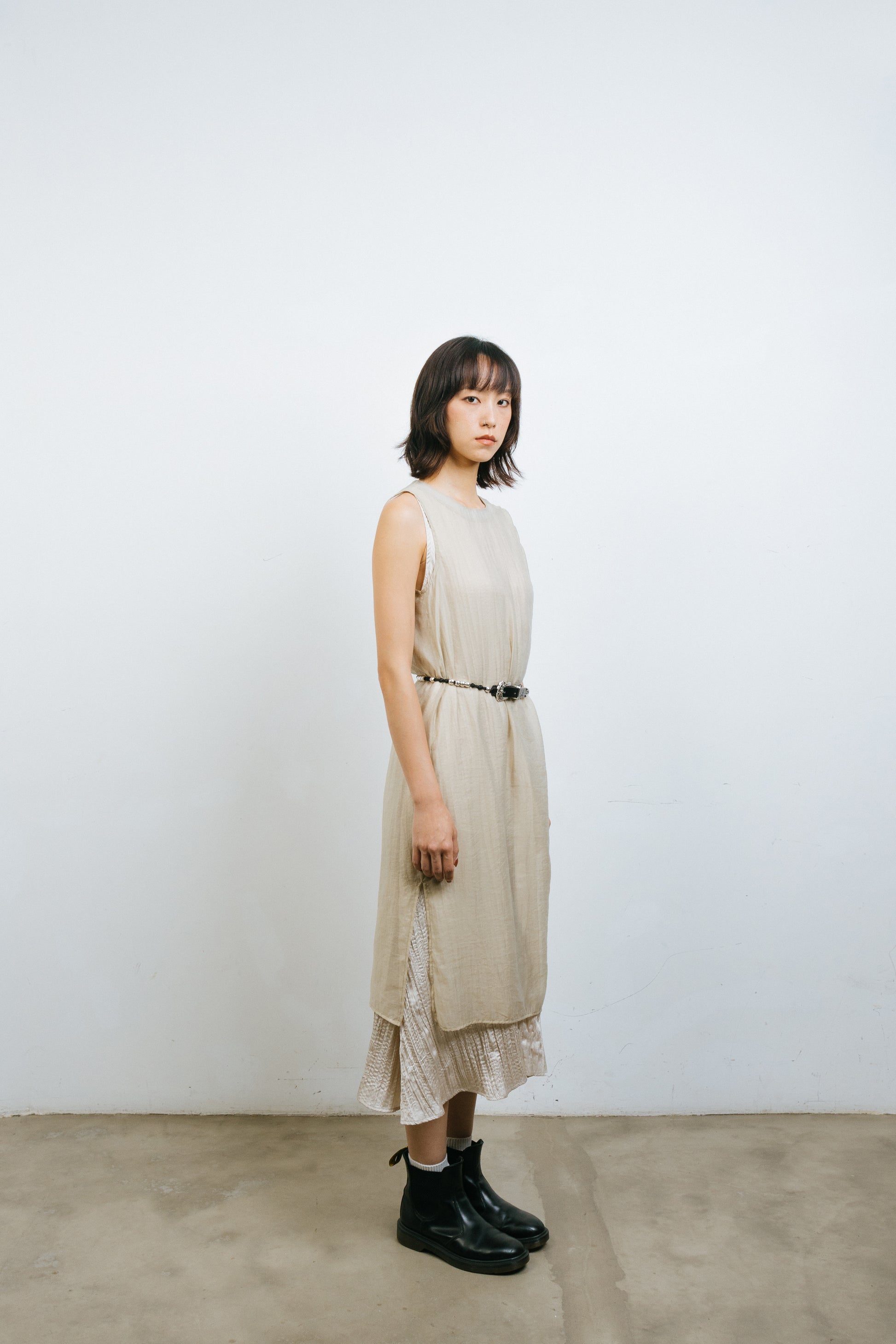 This Translucent Drawstring Sundress is made of a blend of 75% Tussah silk and 25% Nylon, which gives it a soft and comfortable texture that is perfect for wearing in hot summer weather. The single-sided drawstring design and outer lining perspective design allow you to show off a sexy side while also adding a touch of fashion to the overall design. The loose cut and round neckline make this dress suitable for a variety of body types, while the high slit design on the skirt makes it more convenient to walk. The knee-length and ability to be paired with skirts or pants make this Translucent Drawstring Sundress not only suitable for wearing on its own, but also easy to match with other clothing. With its attention to detail and versatility, this dress will make you radiate confidence and beauty in any occasion.