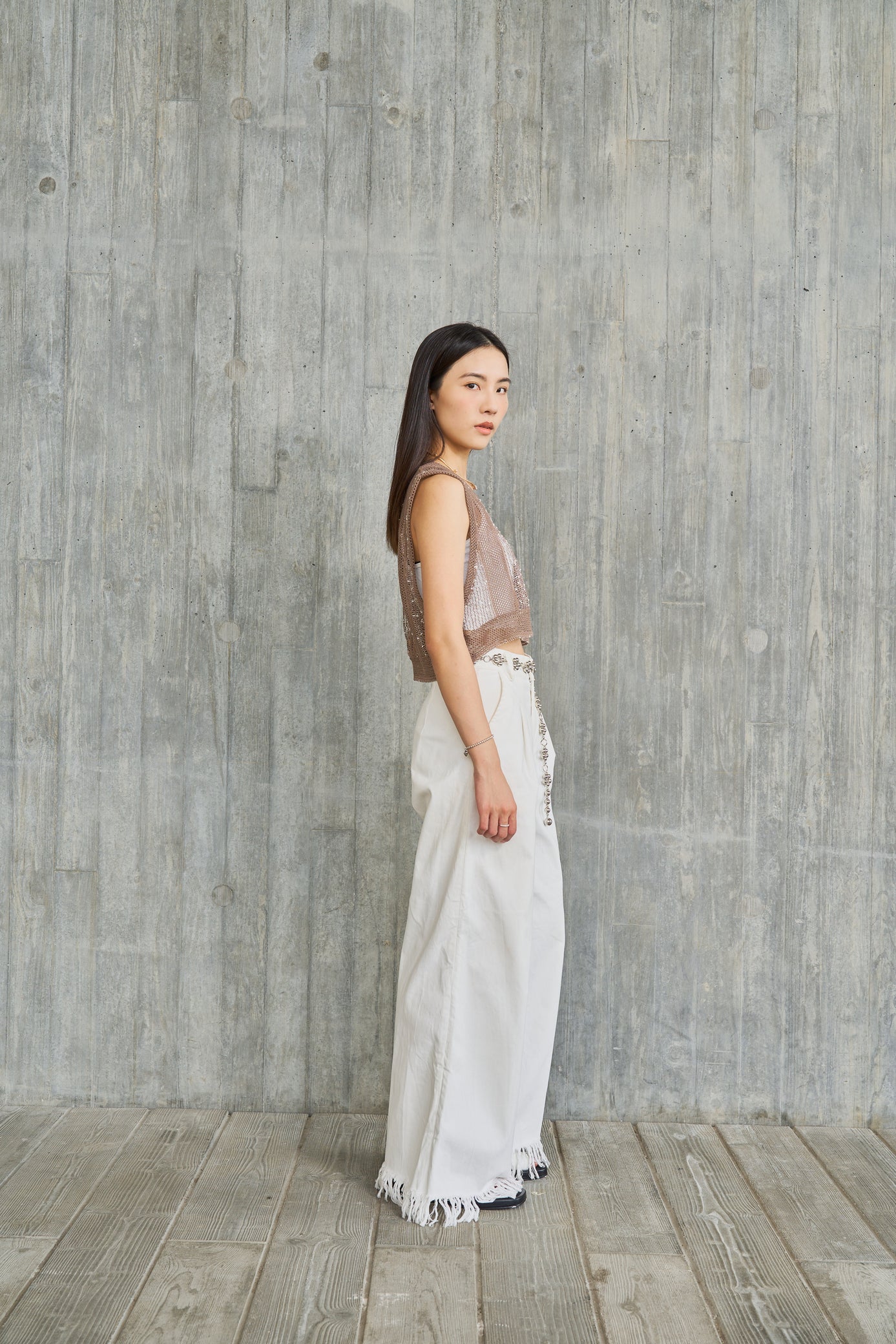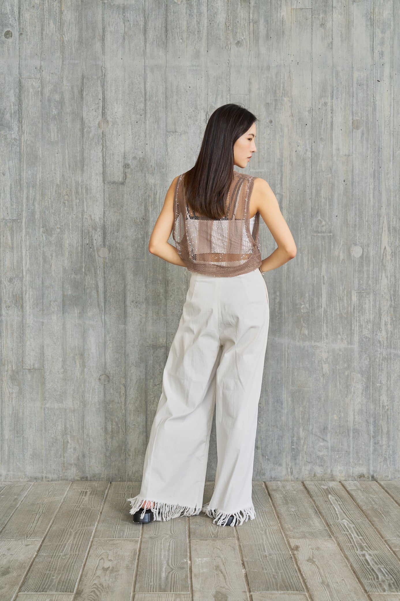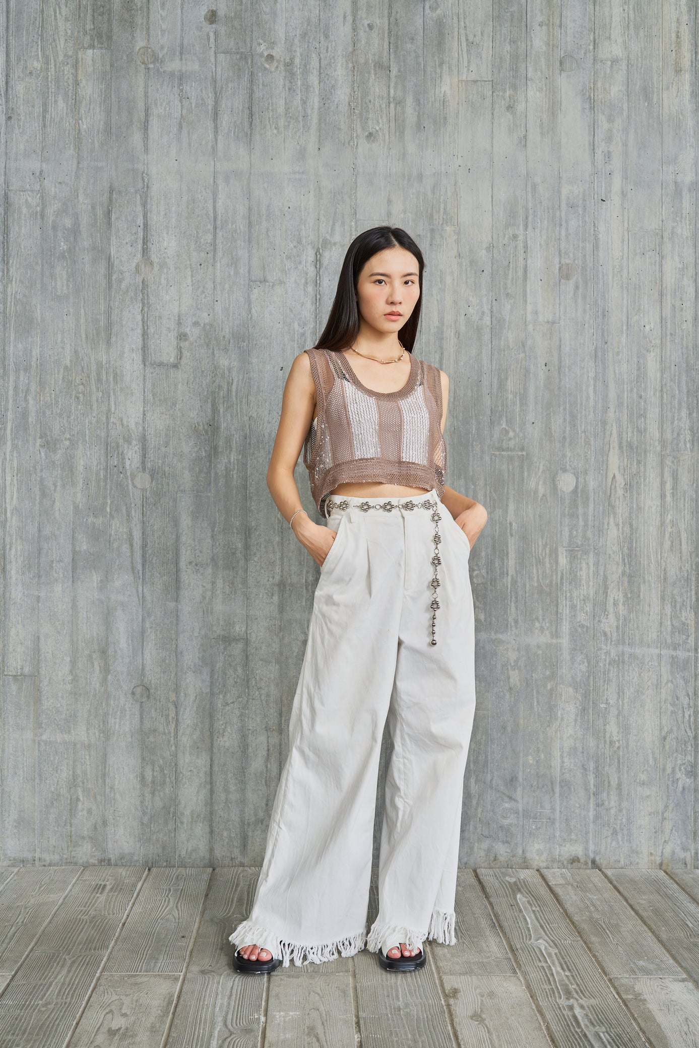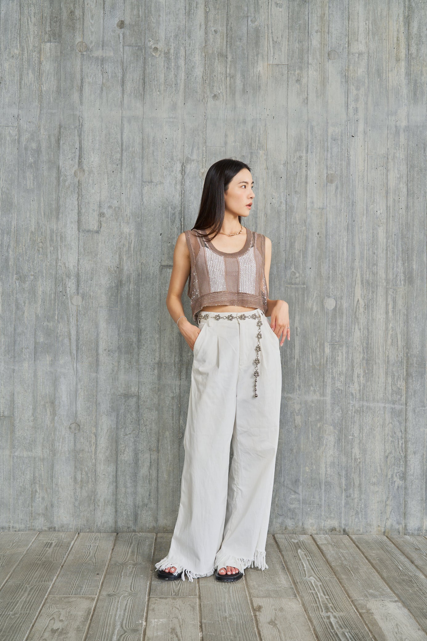 This vest is a must-have item for the summer season. It features a mesh see-through design made from different weaving techniques that provide a soft and comfortable feel. It can be worn on its own or layered with other clothing for different styles.
