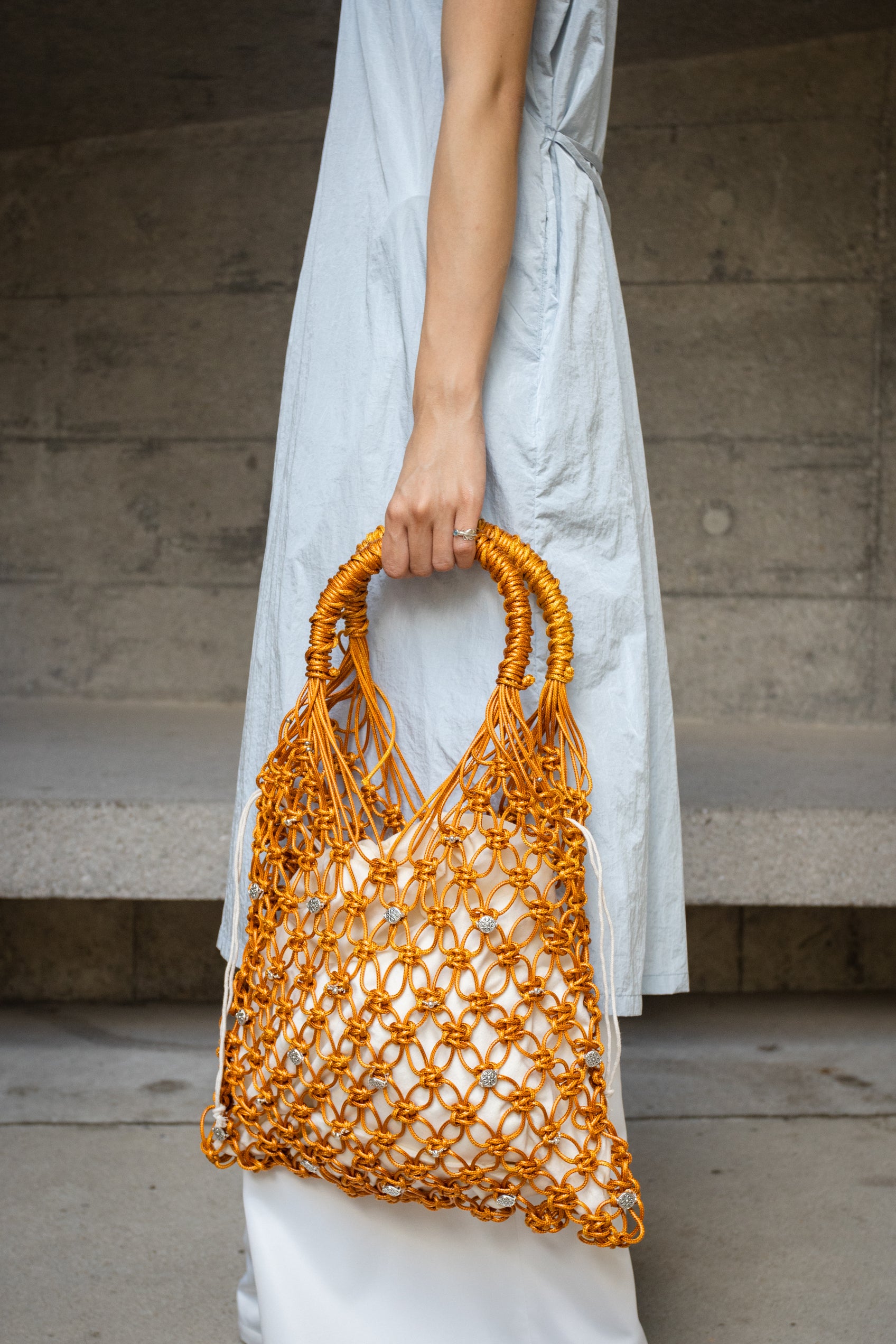 Two-sided design with one side incorporating silverware and the other side featuring a simple weave pattern."