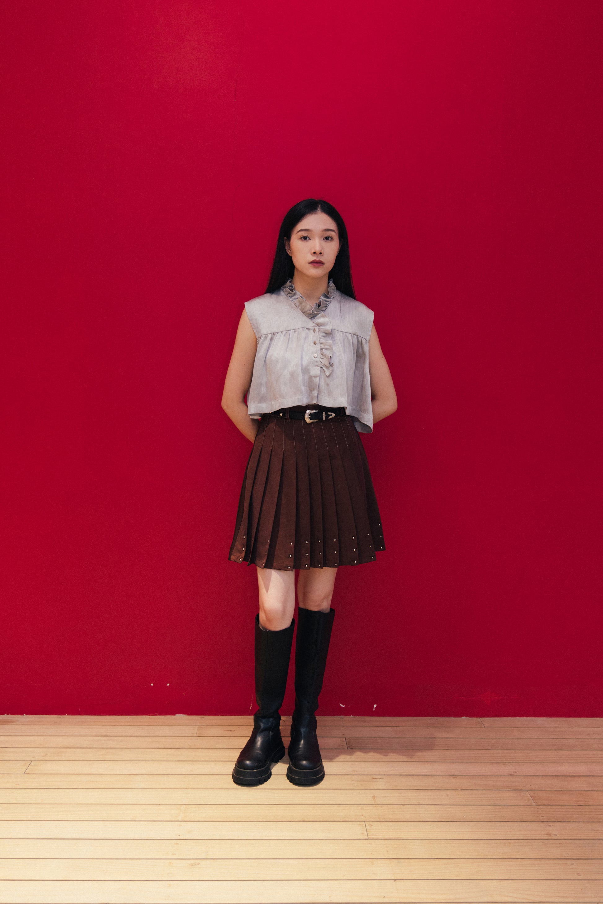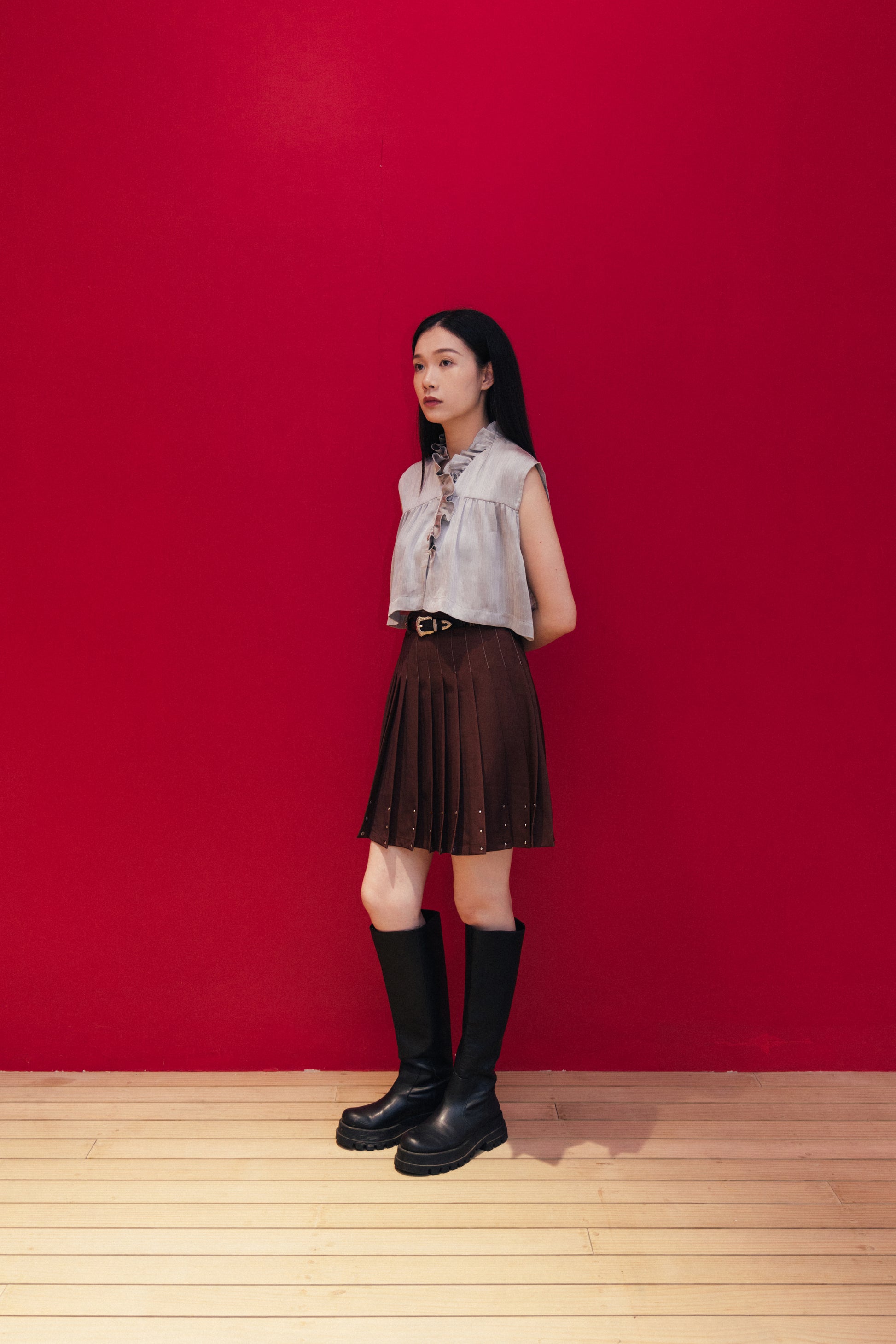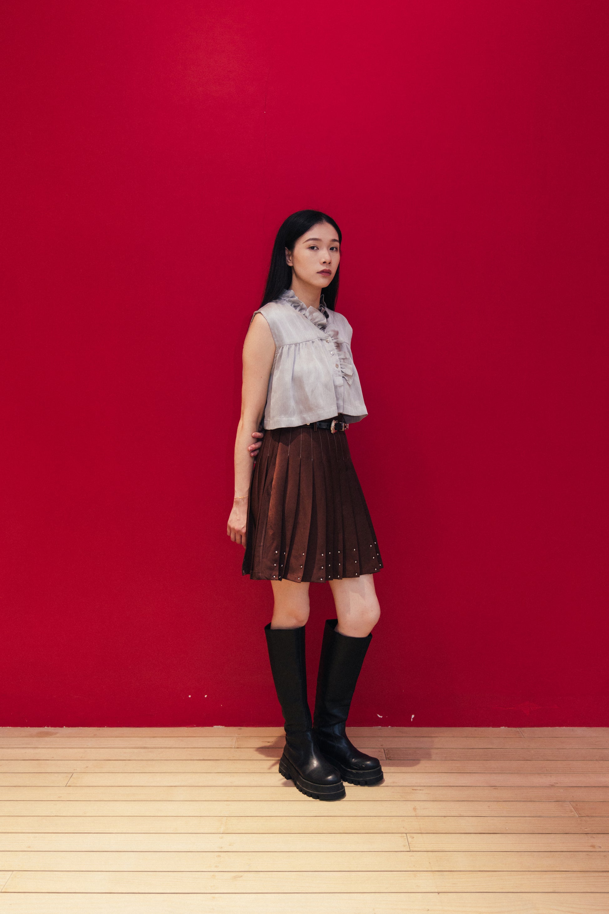 Pleated A-line skirt