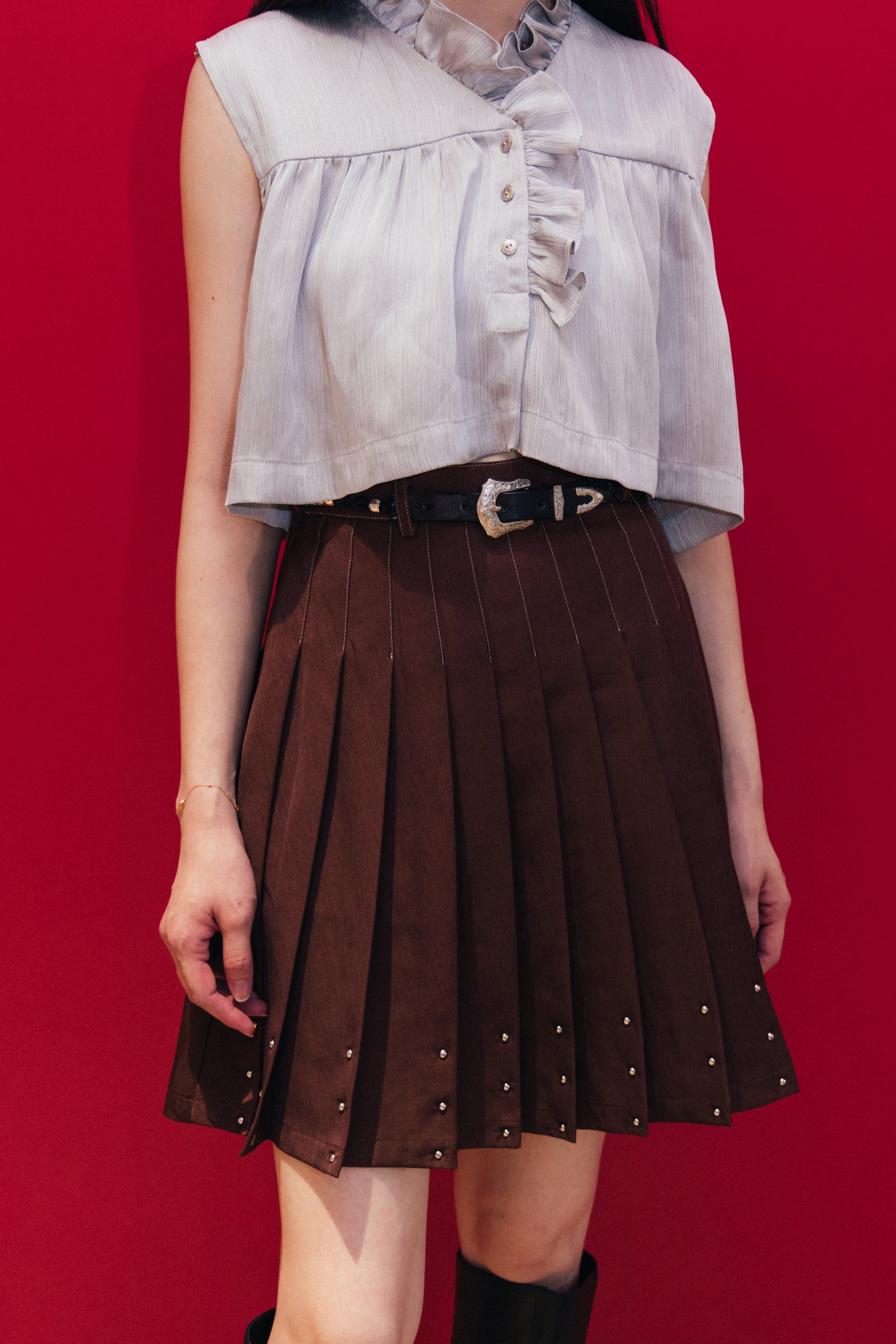 PLEATED-A LINE SKIRT