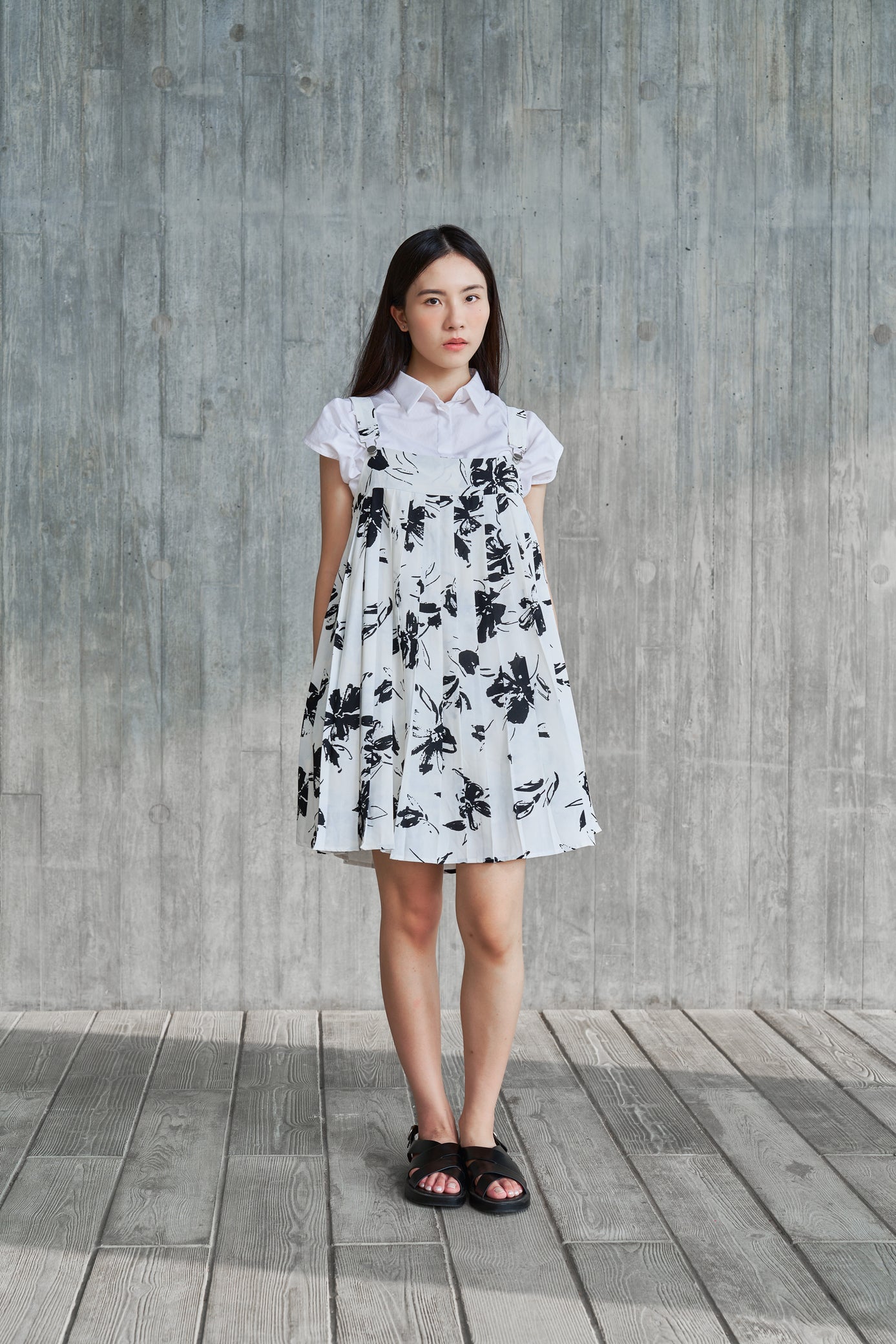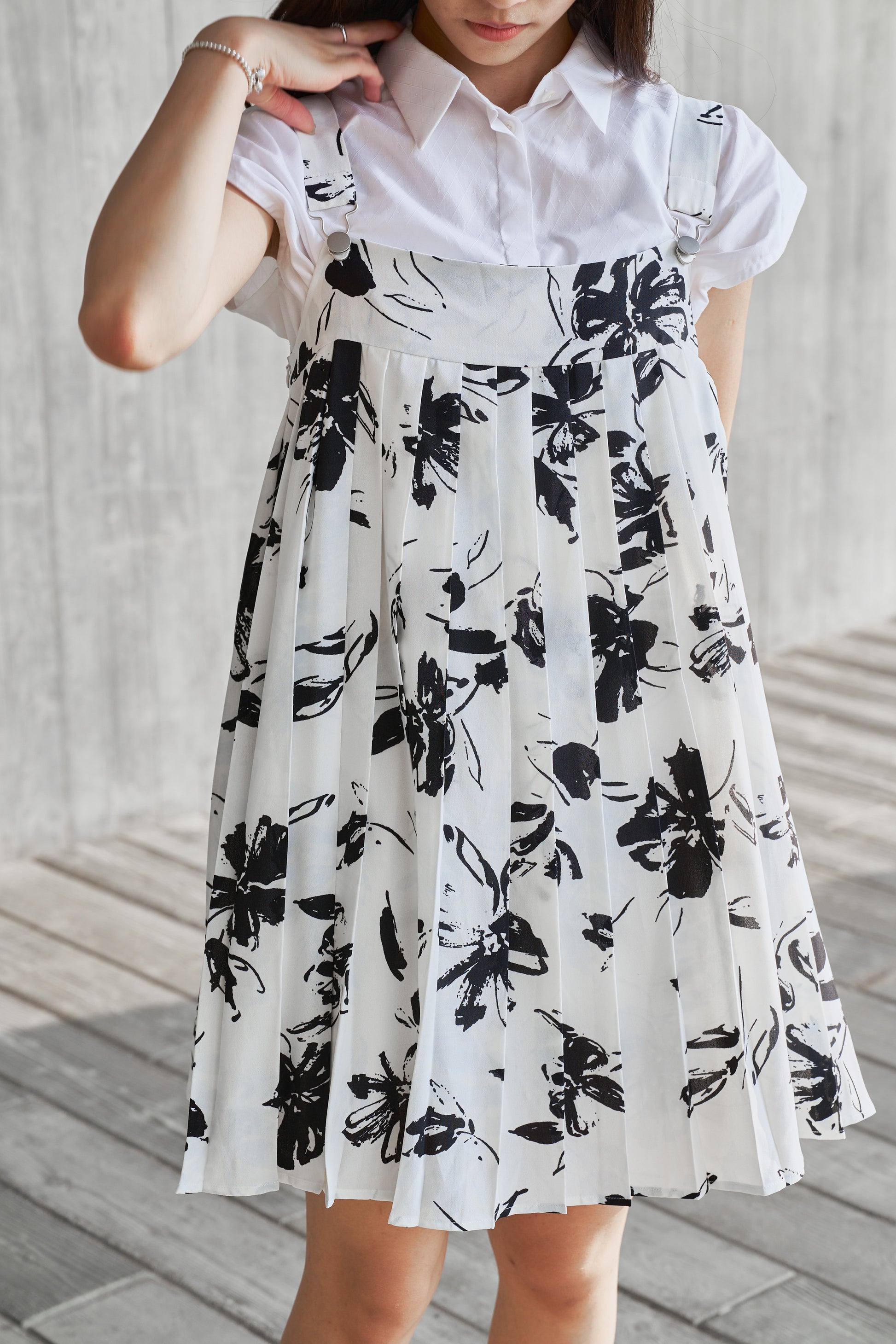 Pleated Overalls dress