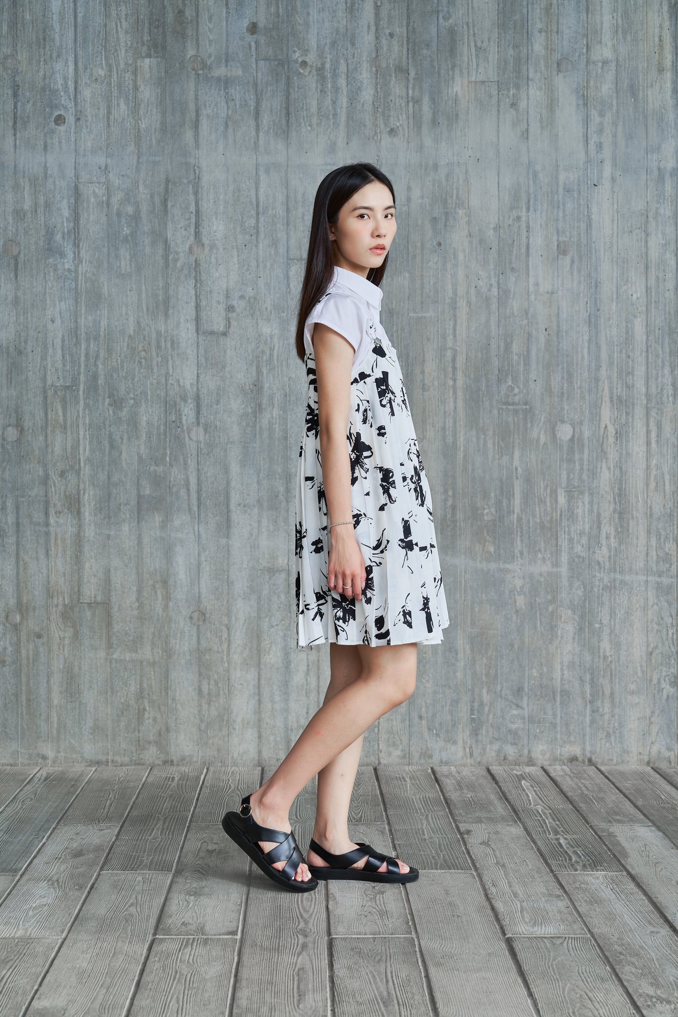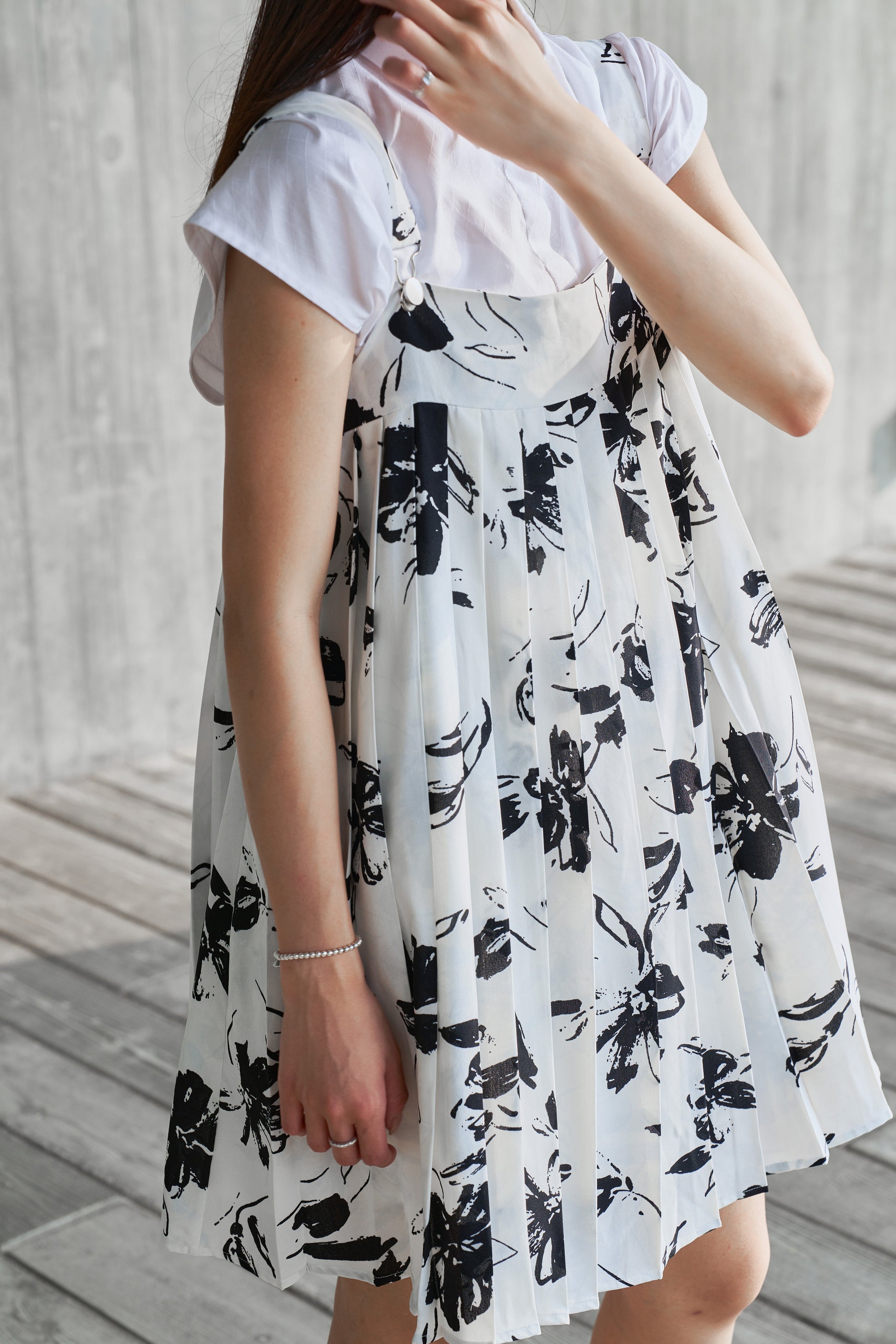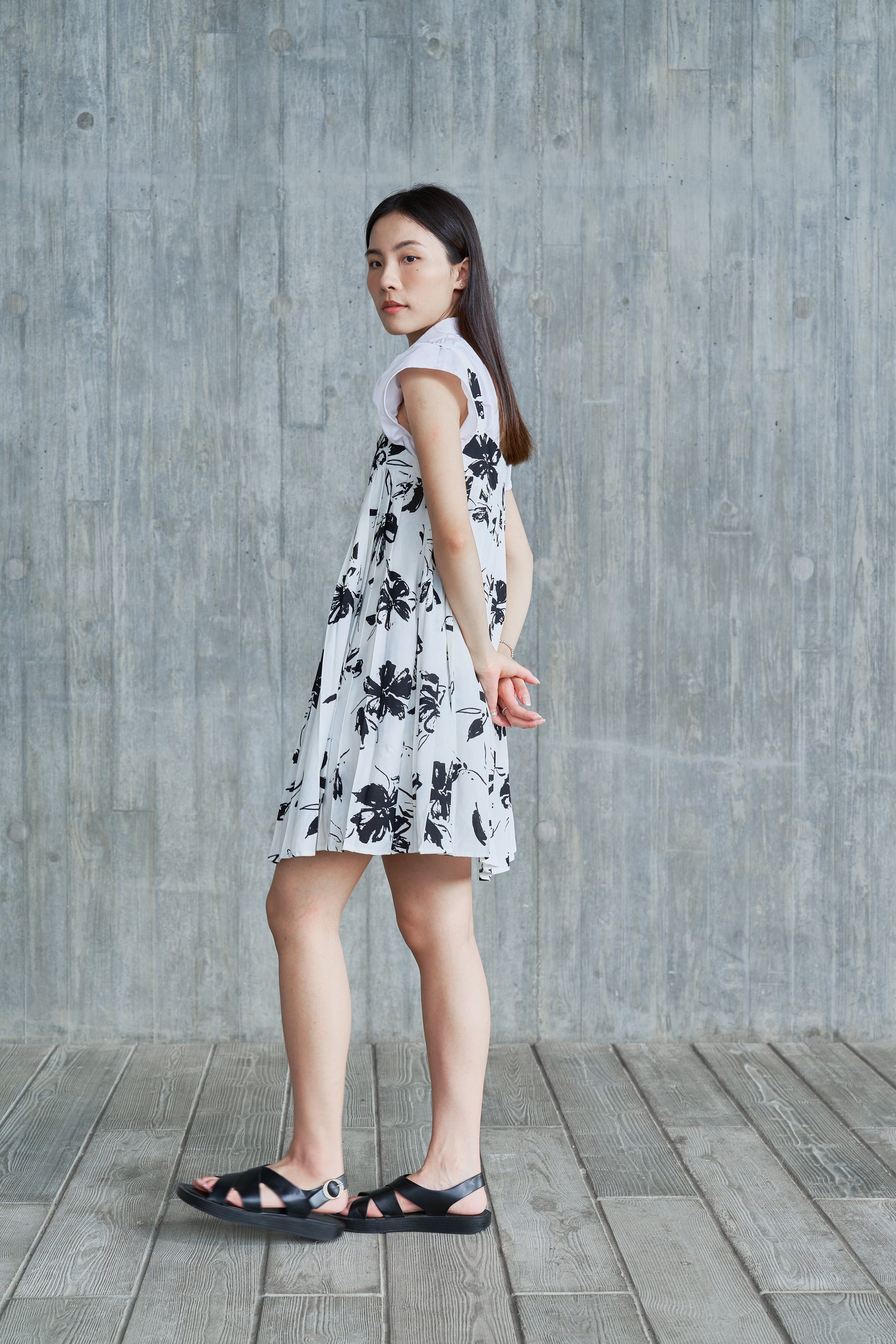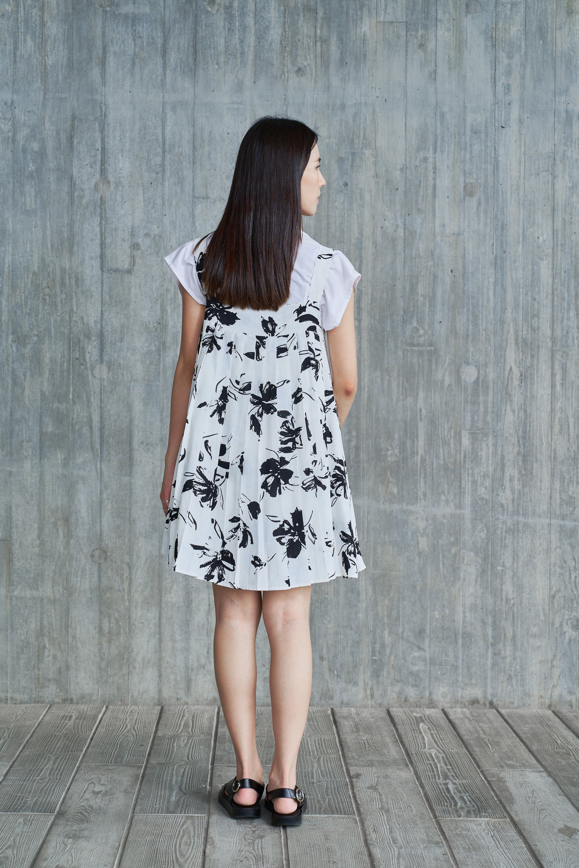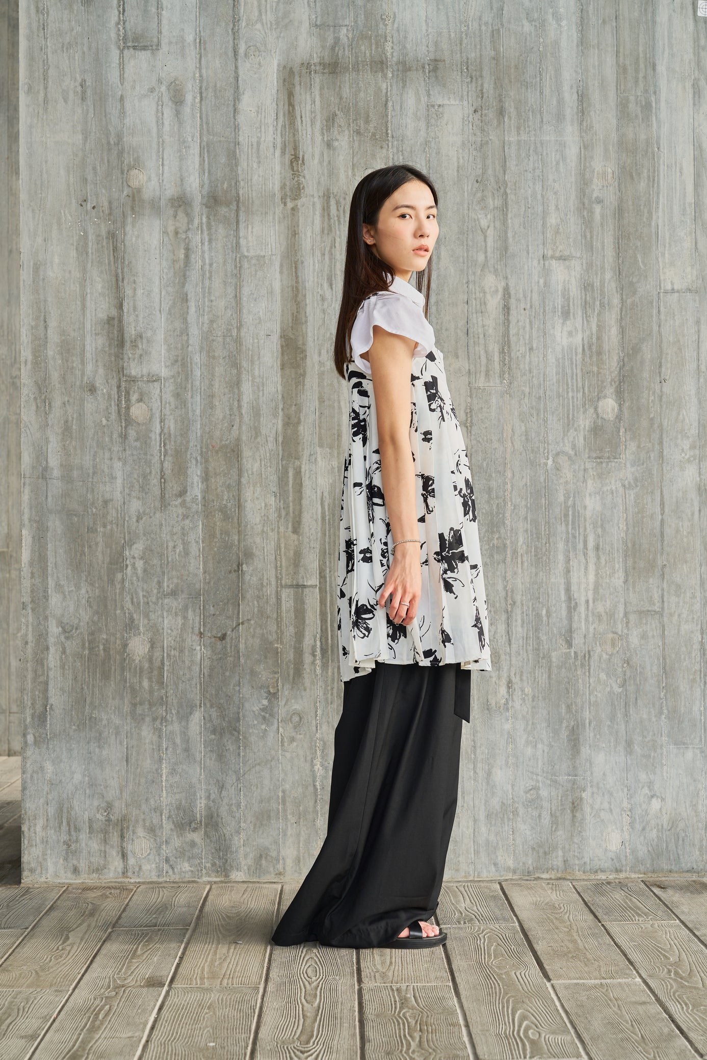 The pleats of the dress add layers and make the wearer appear more slender and fashionable. The patterned fabric adds a summery feel to the overall look and makes people feel fresh and comfortable.