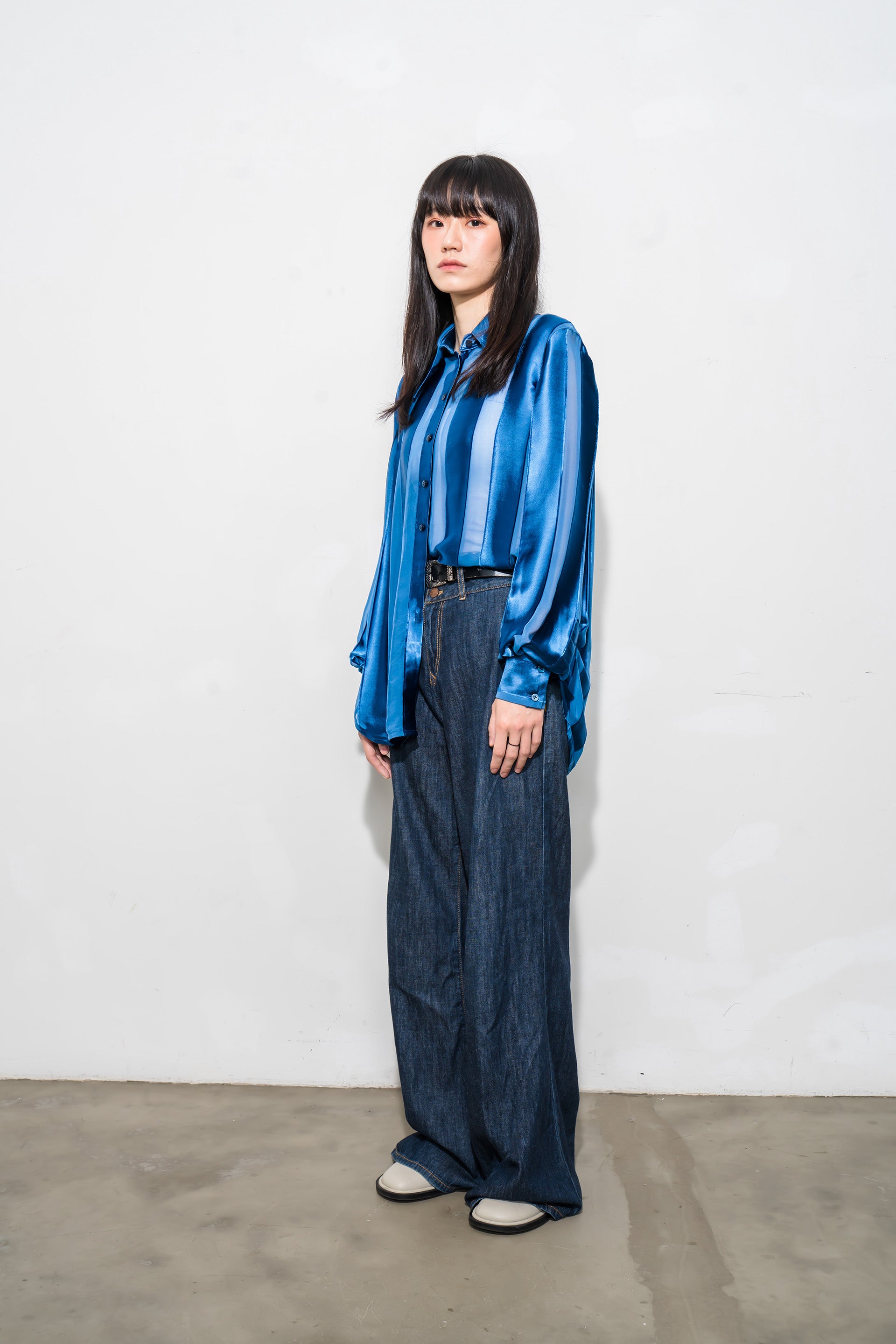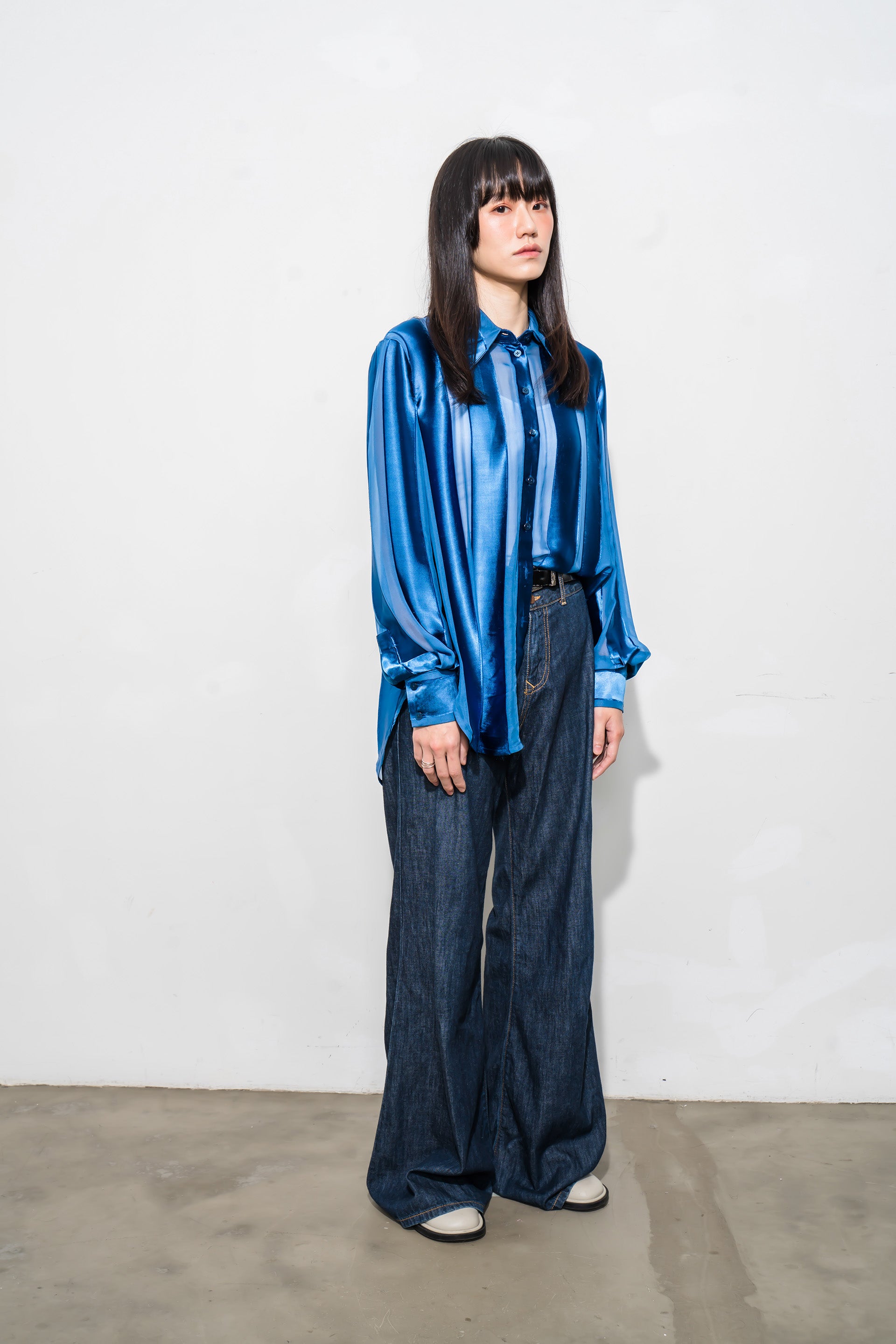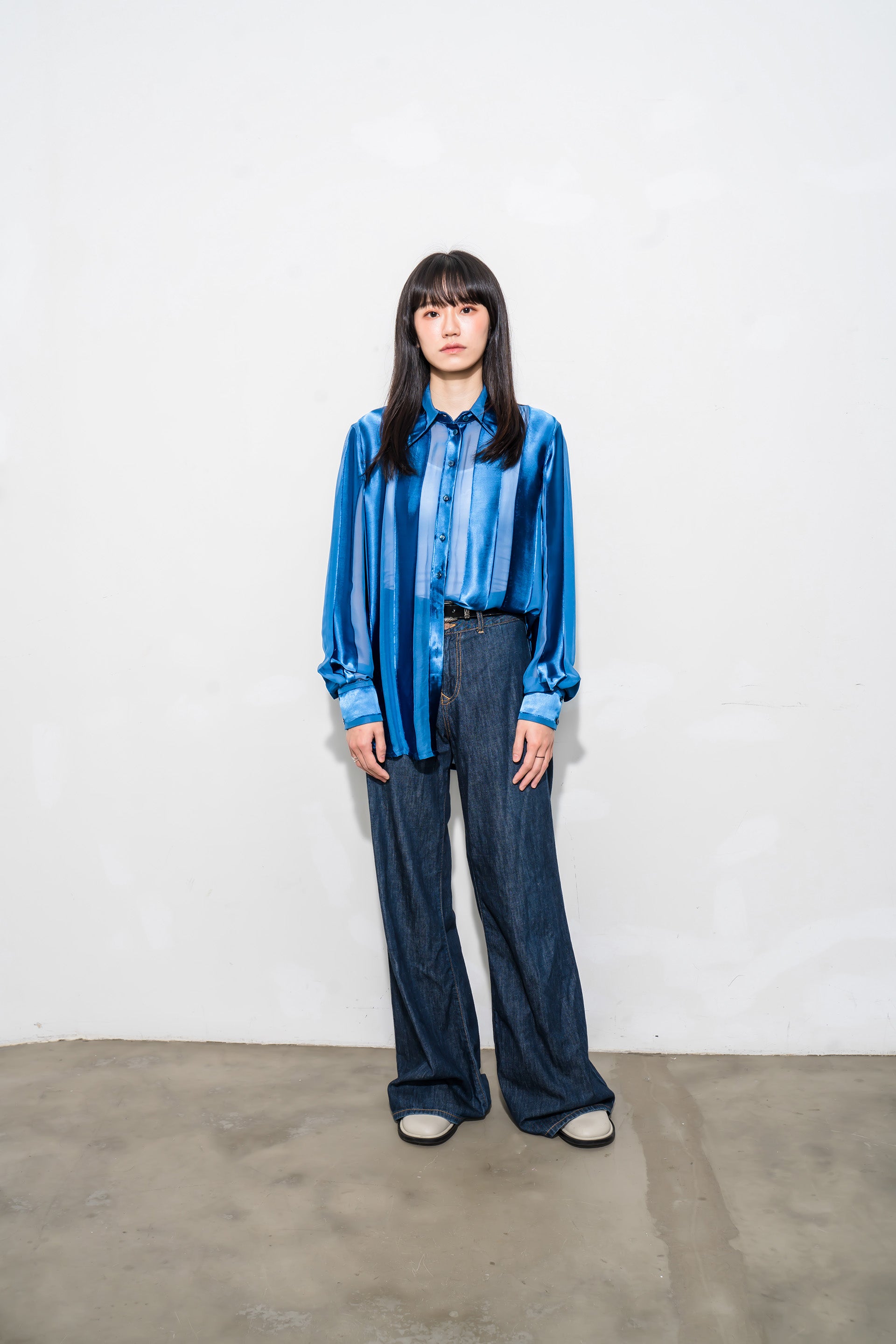See-through stripes Long-Sleeved shirt