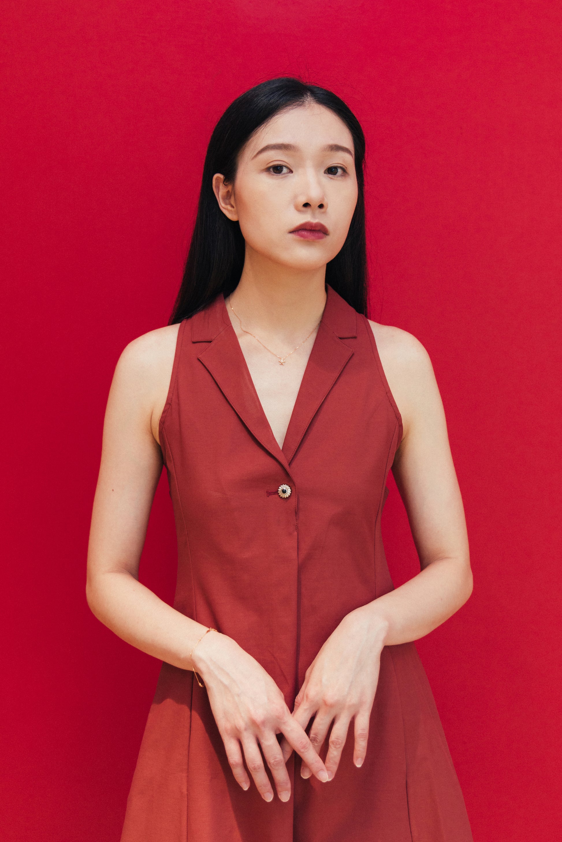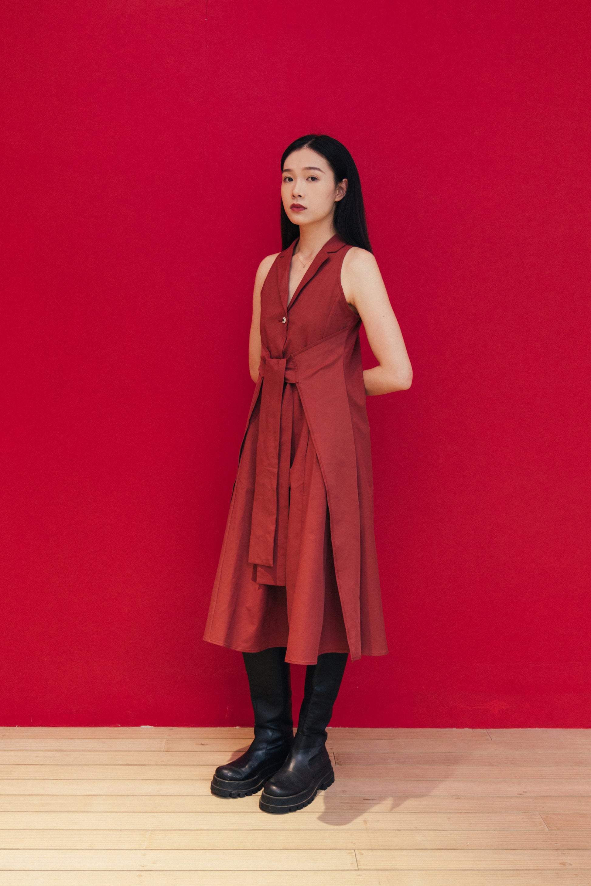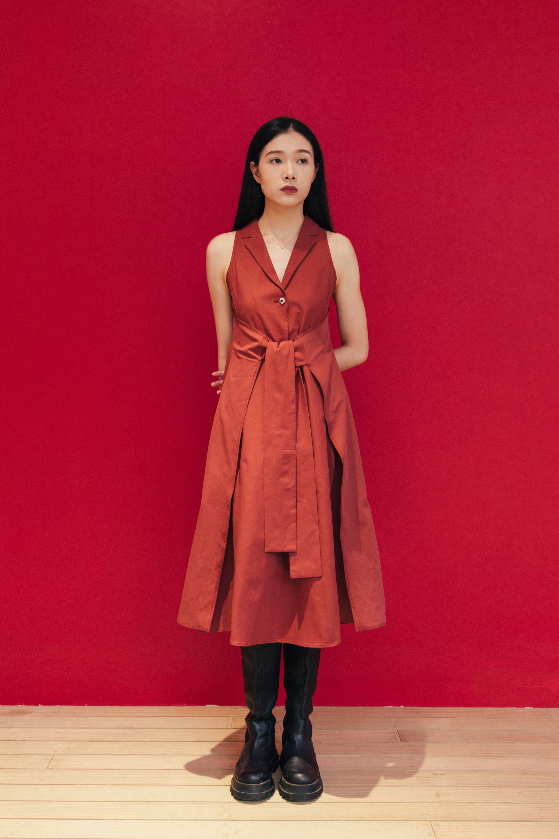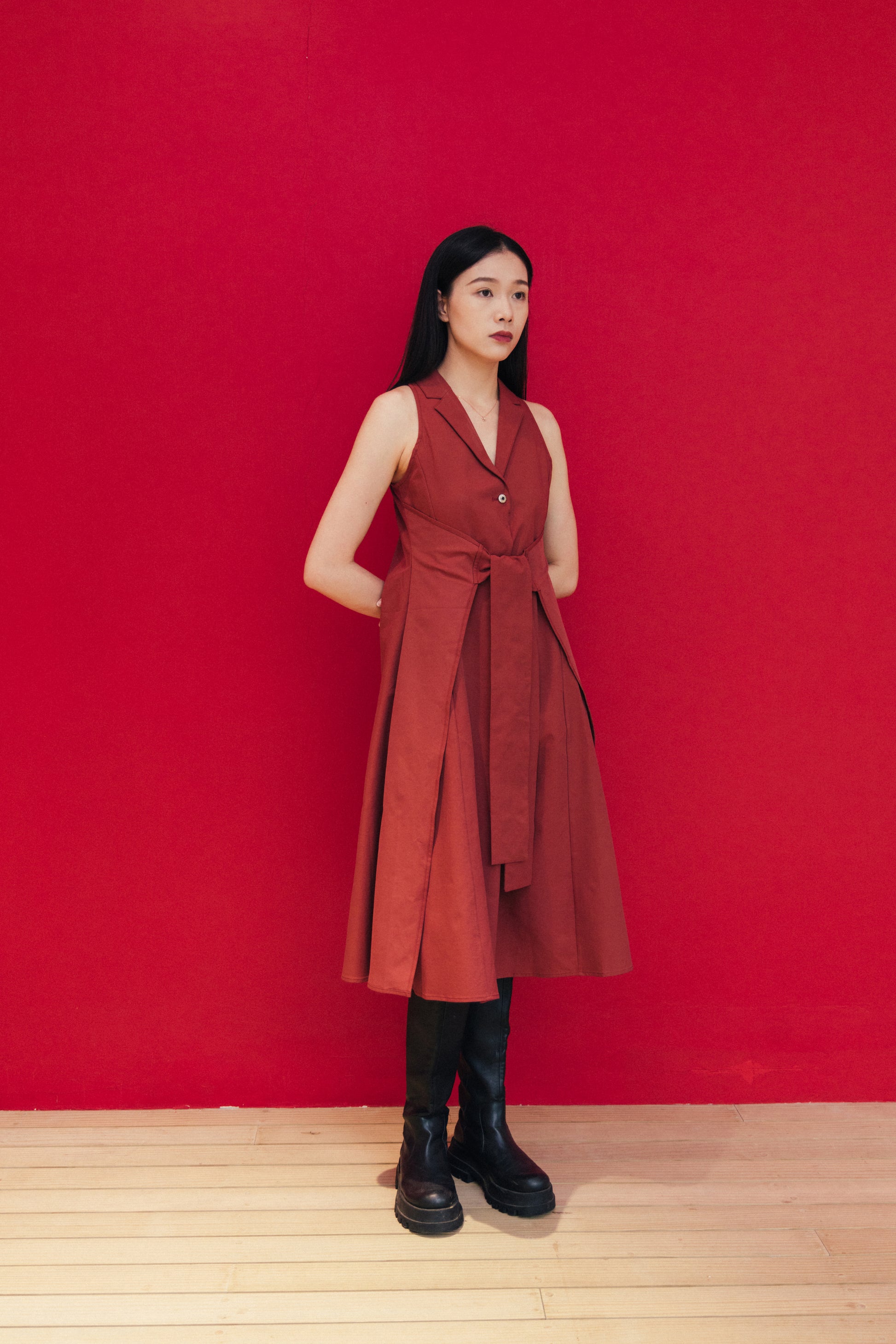 Red Sleeveless Dress With Back Detail