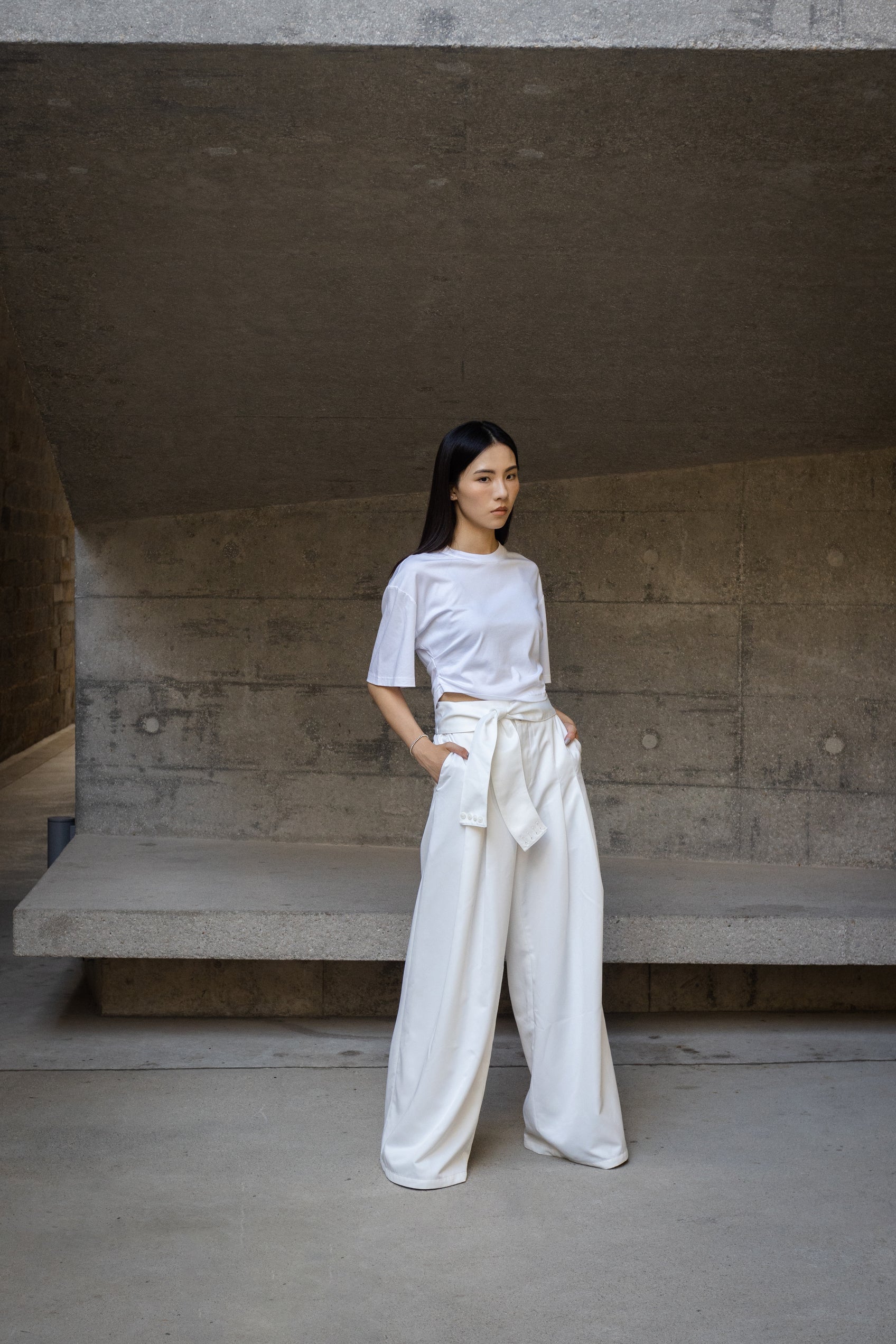 wide leg pants with belts are a stylish and versatile clothing item with a unique belt design that can be used in two different ways. The material used to make these pants has many benefits, including durability, flexibility, and wrinkle resistance, and its smooth texture and lustrous finish provide a luxurious feel. The loose, relaxed fit of the pantsoffers a comfortable and effortless wearing experience, while the wide leg cut creates a pleasing silhouette that accentuates the.