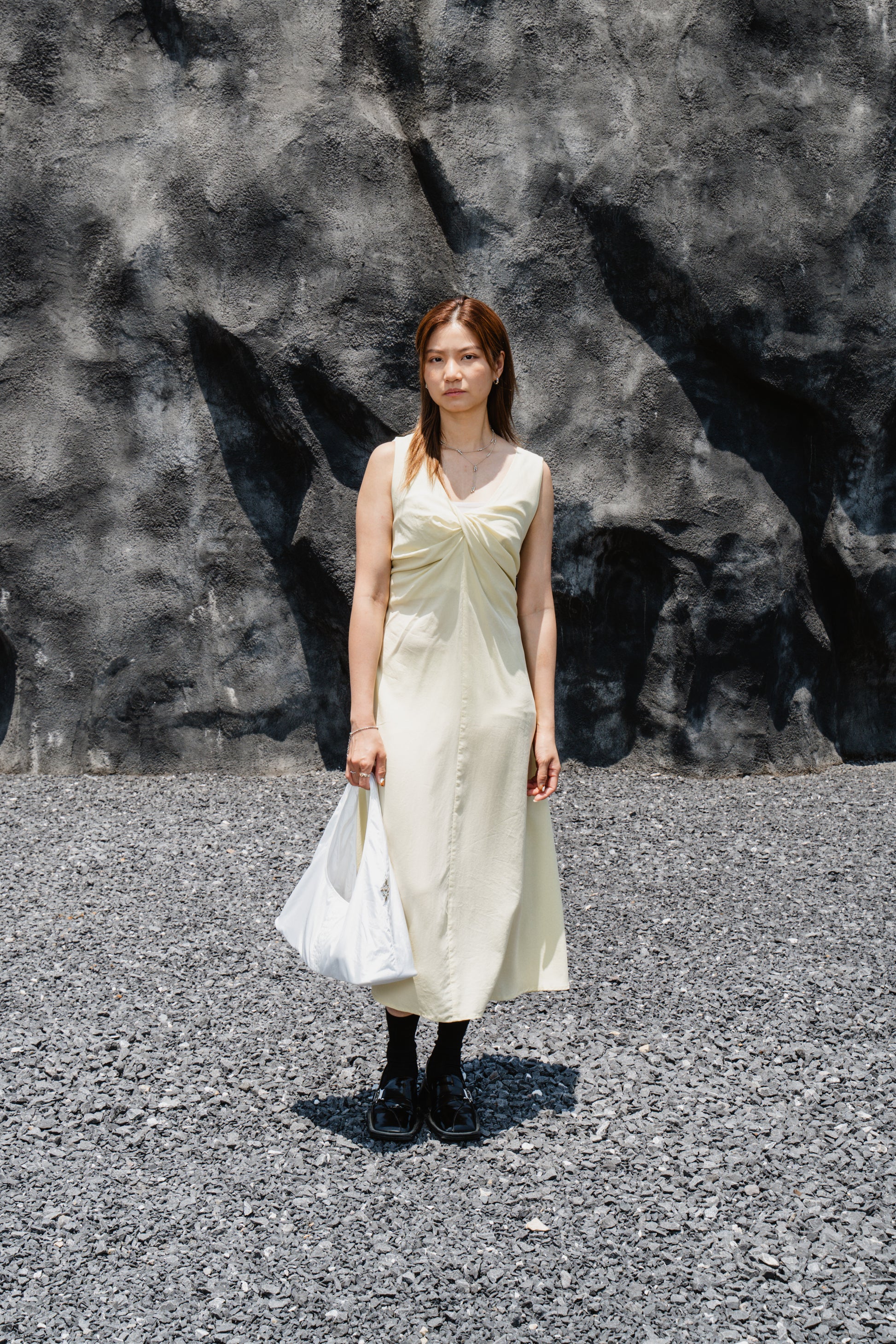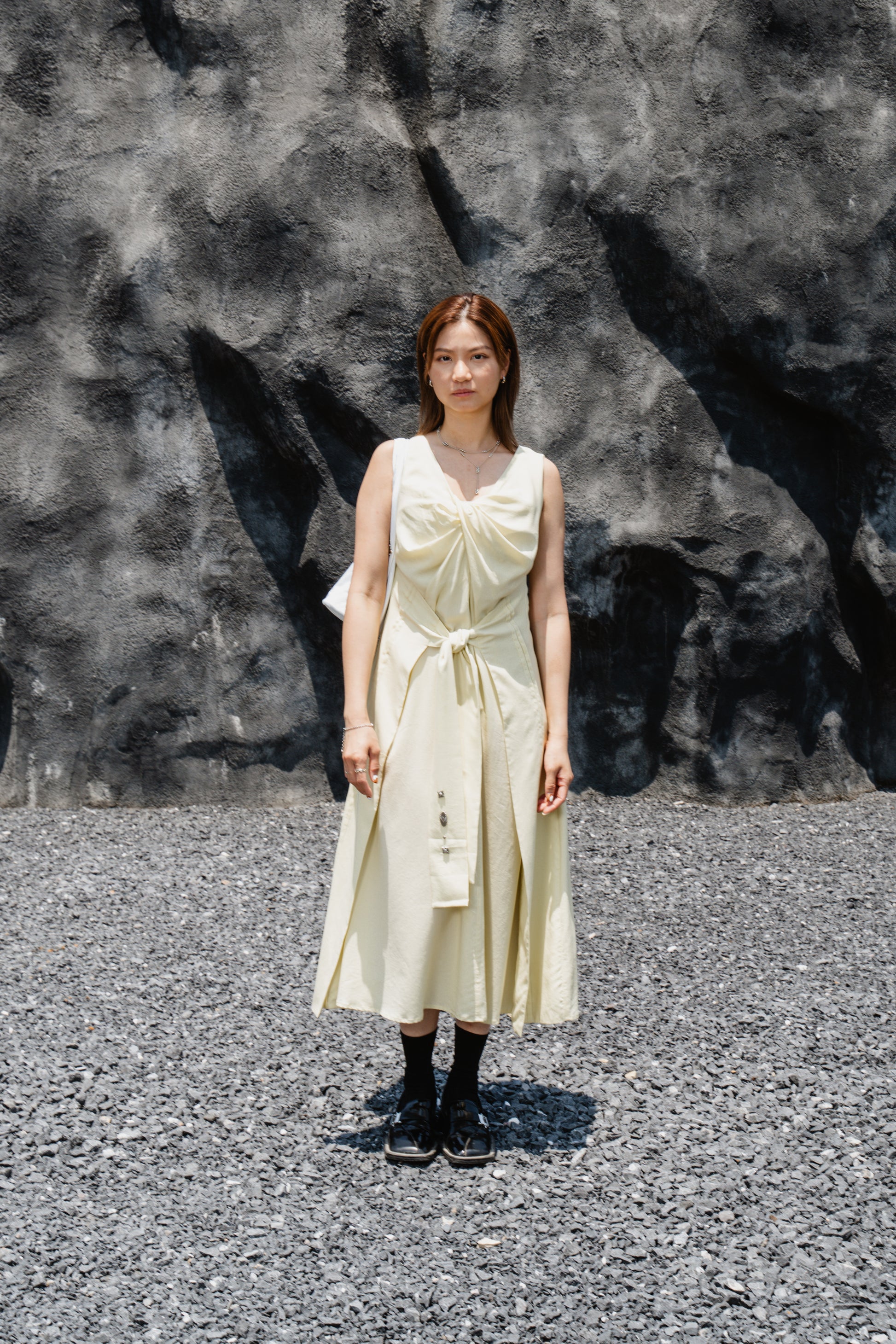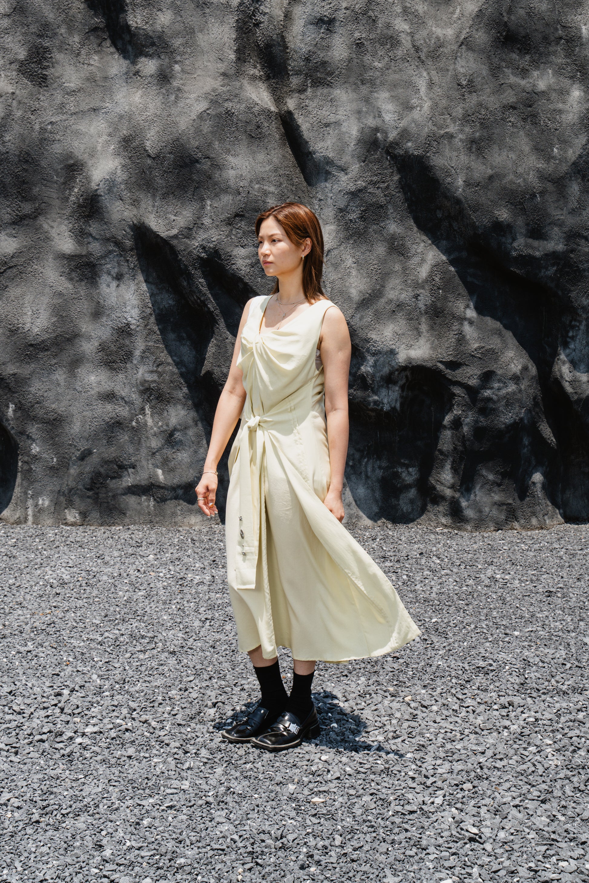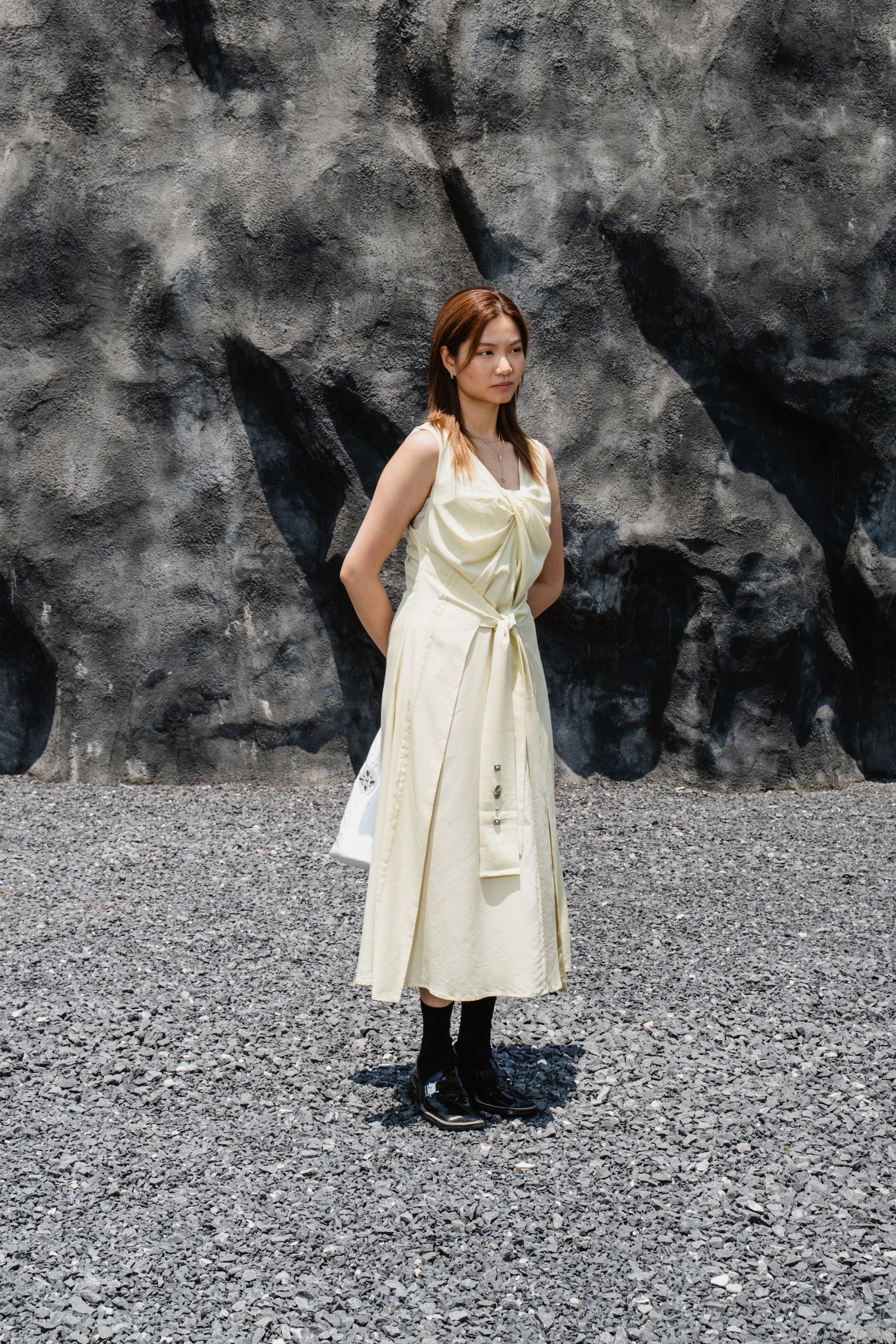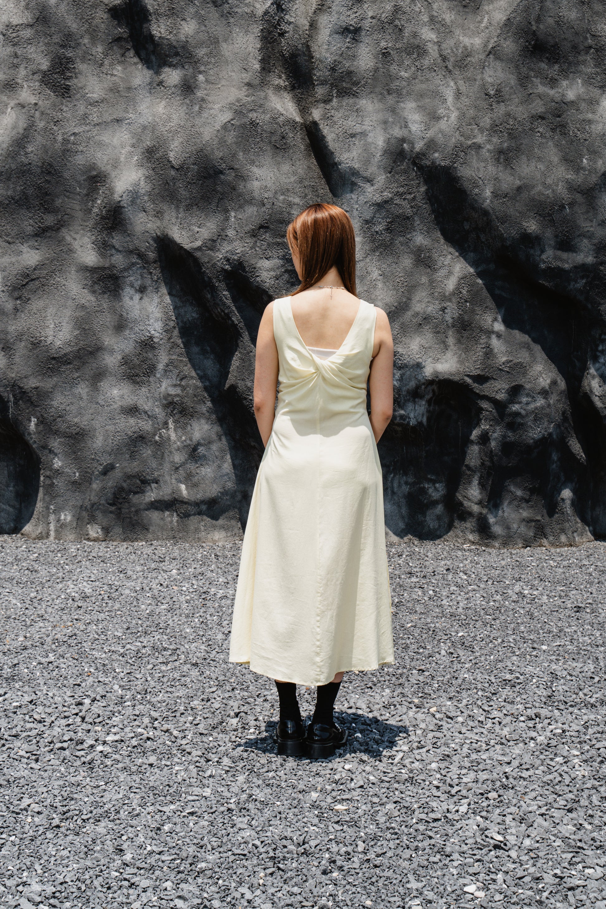 Yellow Sleeveless Twist-Front Dress With Back Detail