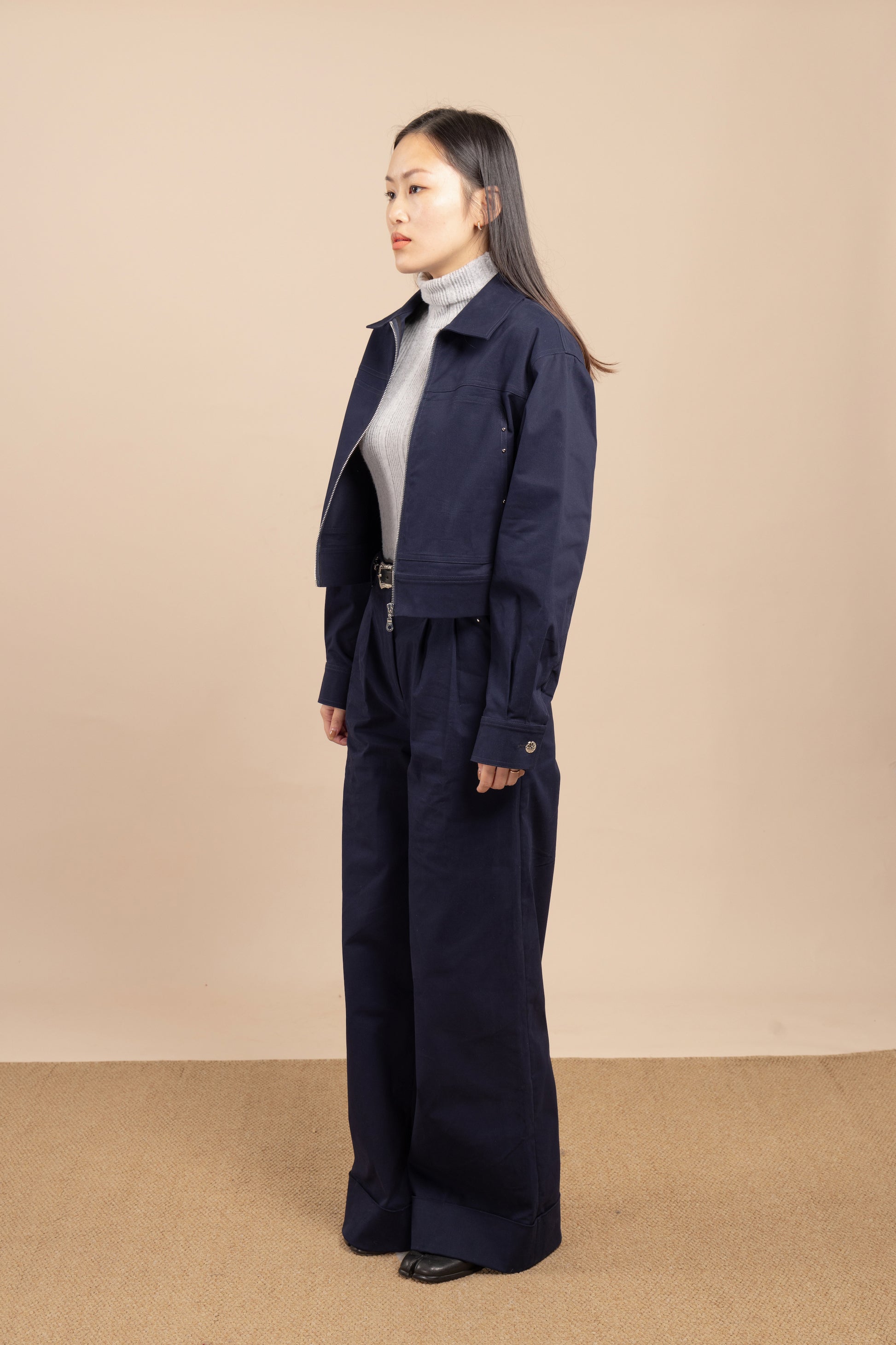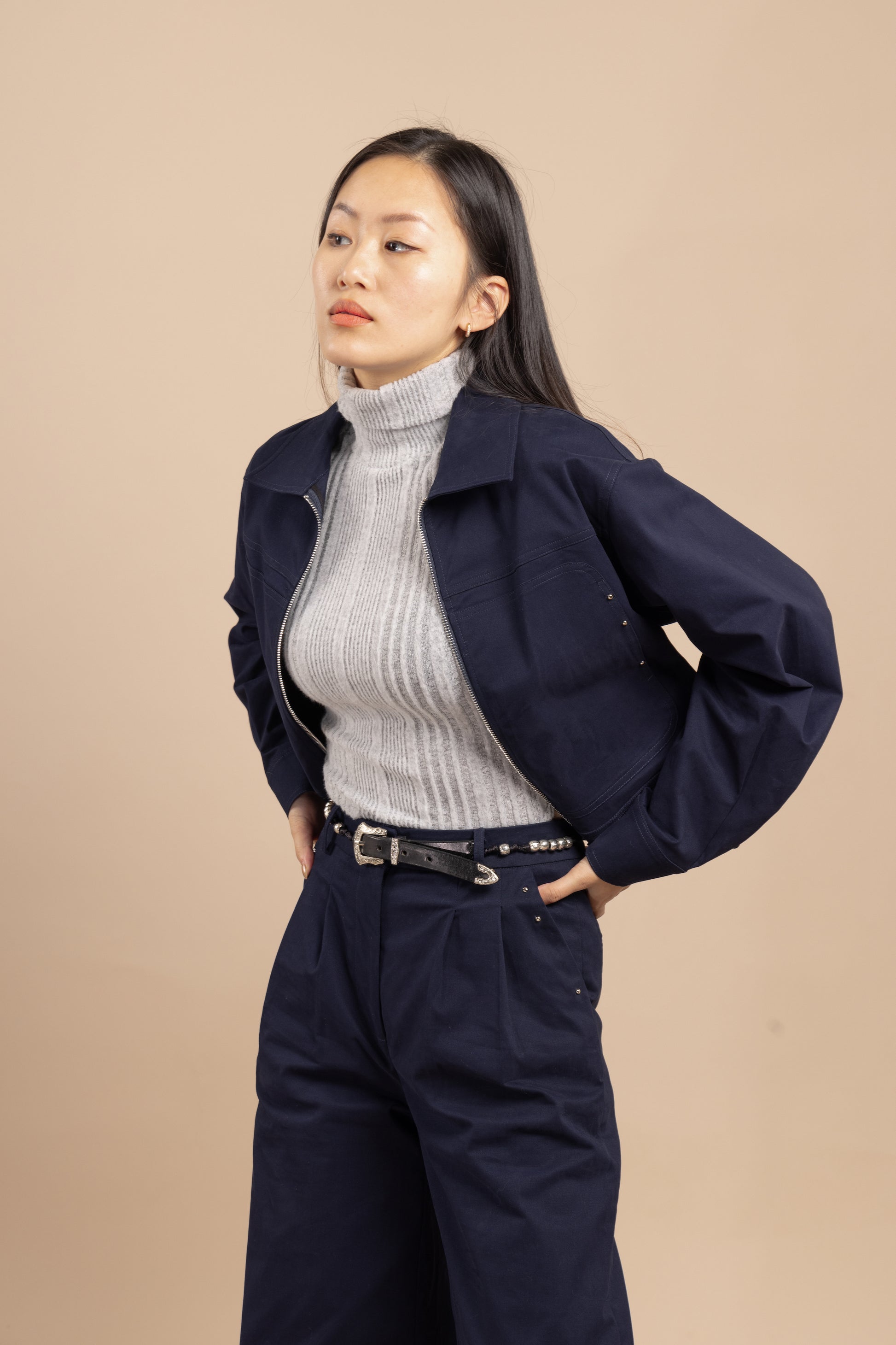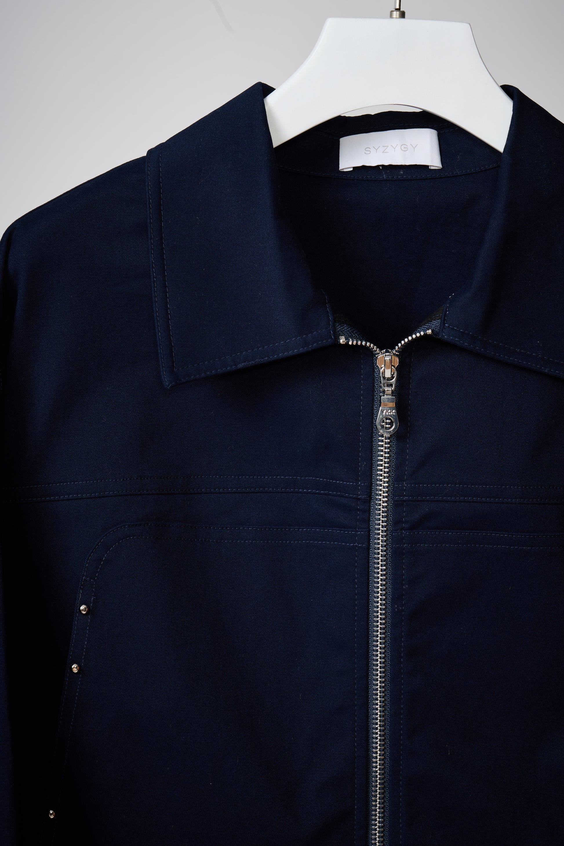 Navy Zip-up cotton windbreaker mix and match suggestion