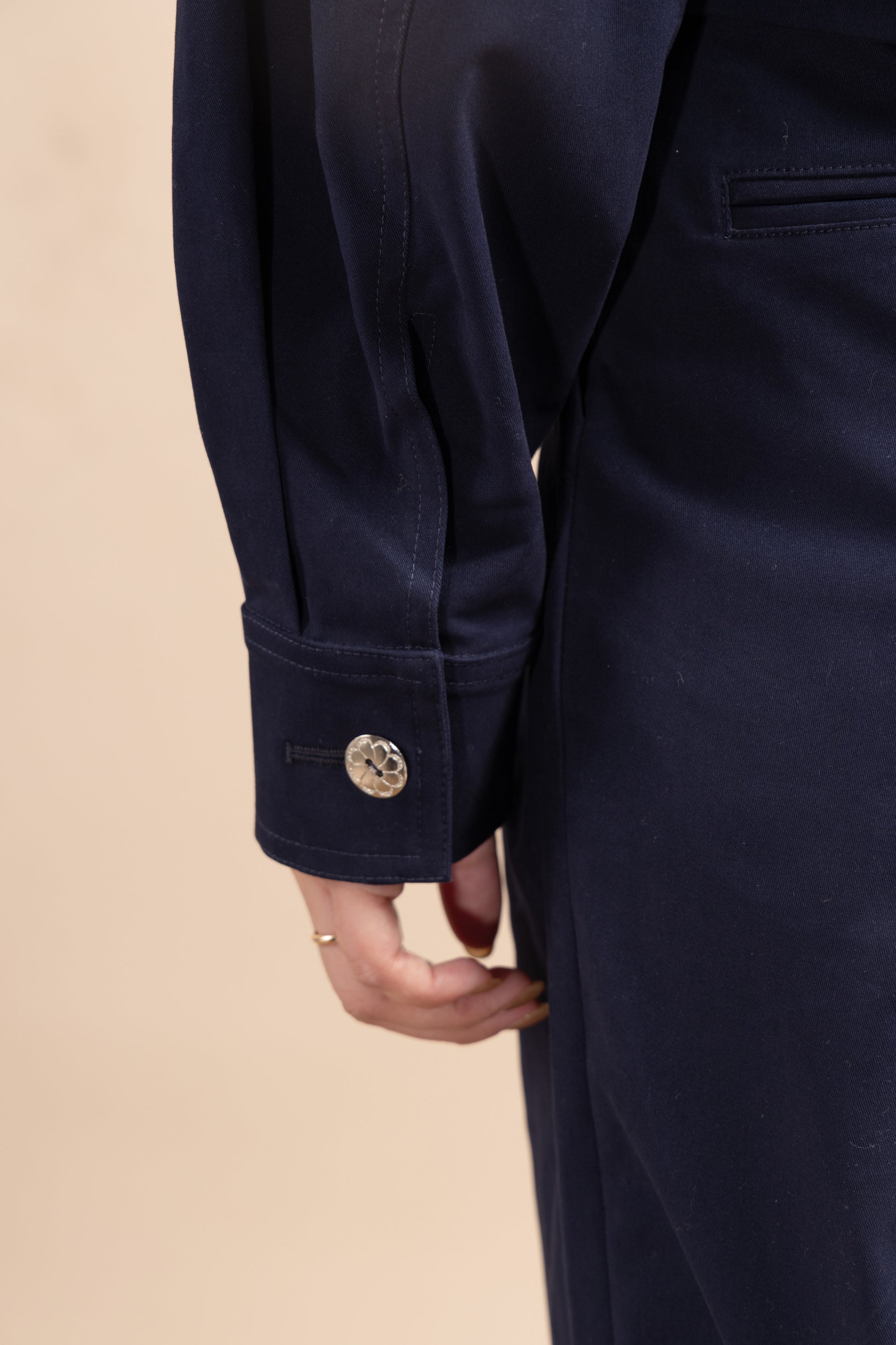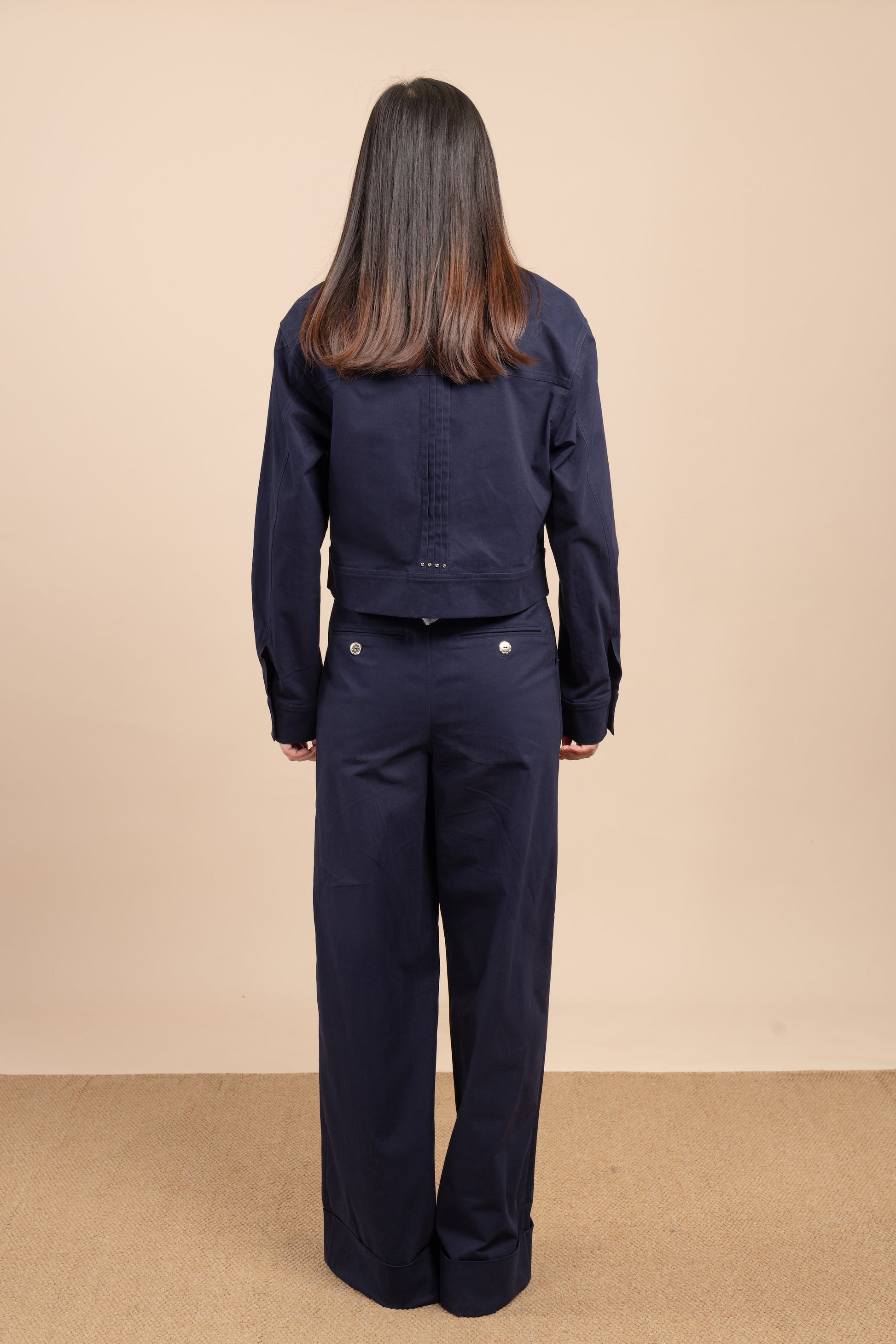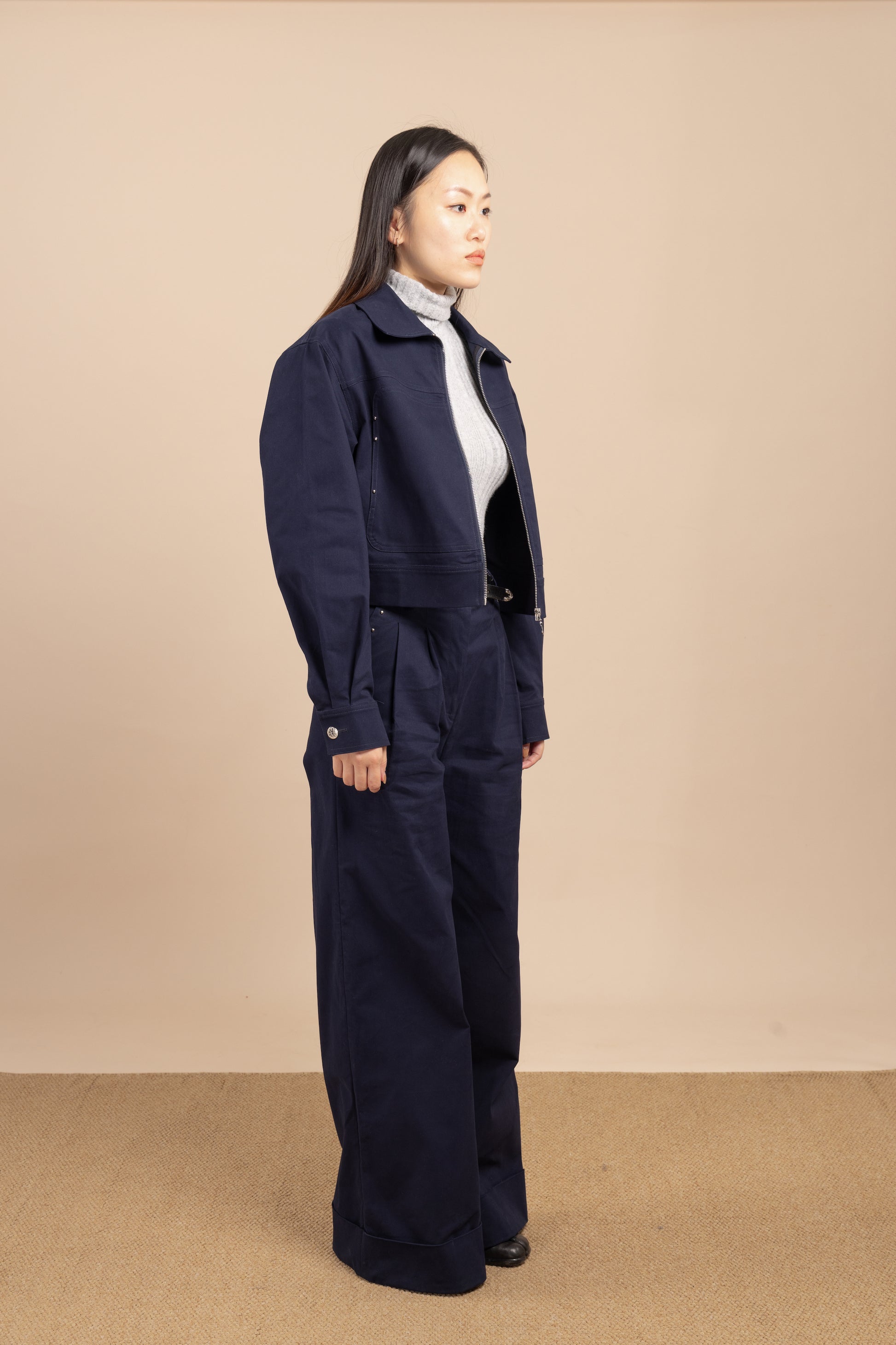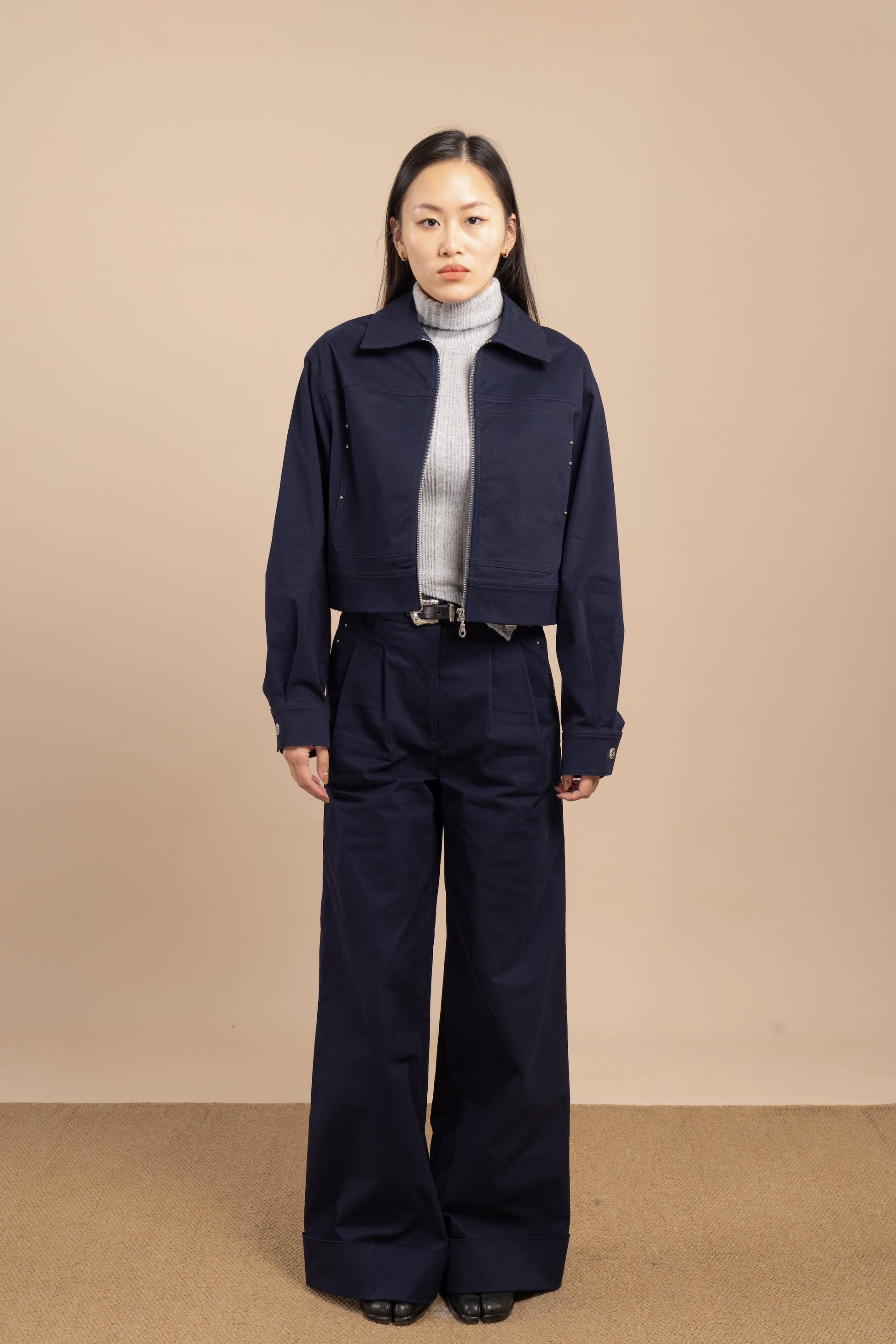 Navy Zip-up cotton windbreaker mix and match suggestion